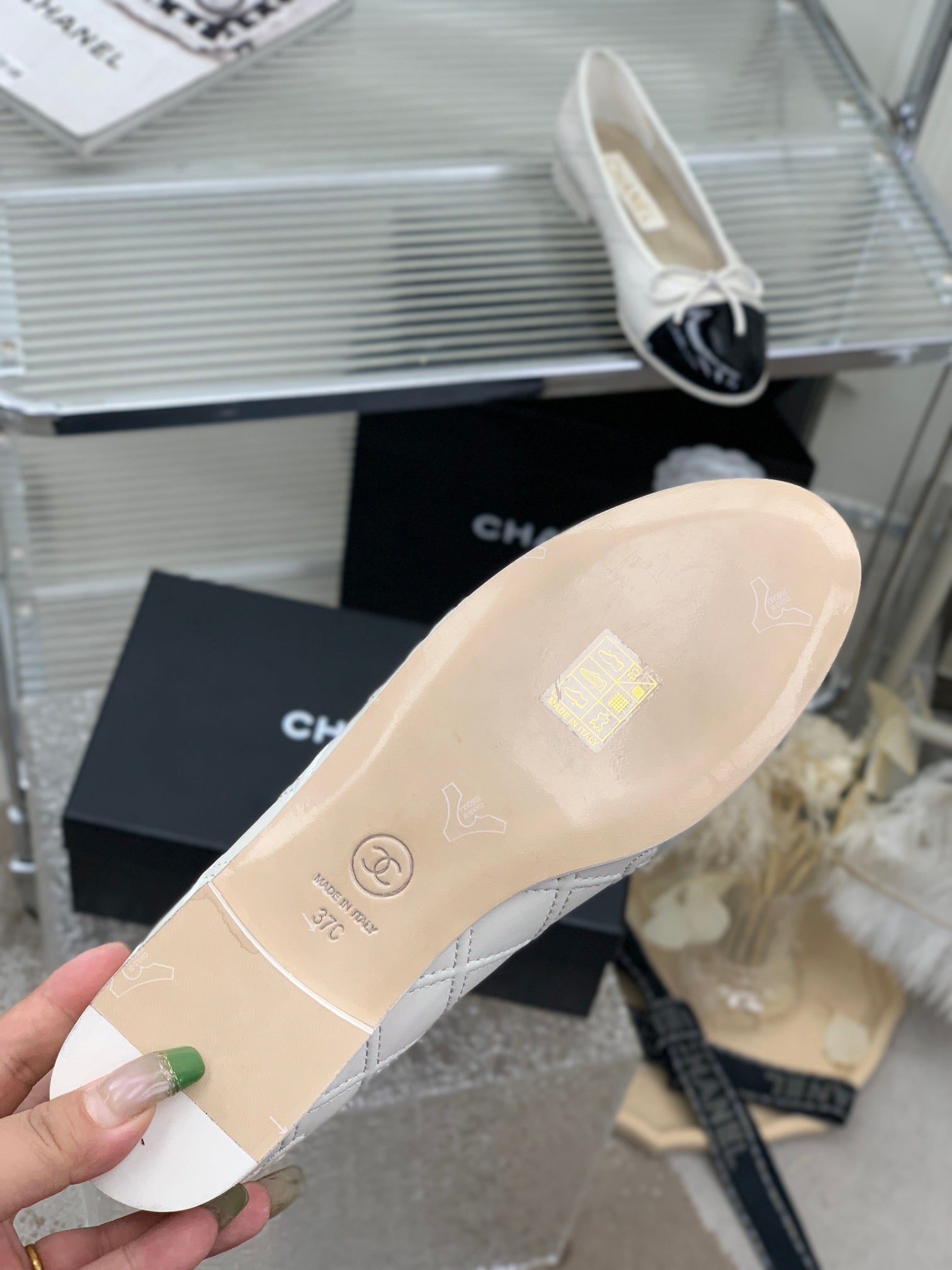 BALLET FLAT GLOSSY BLACK MIX IVORY LAMBSKIN