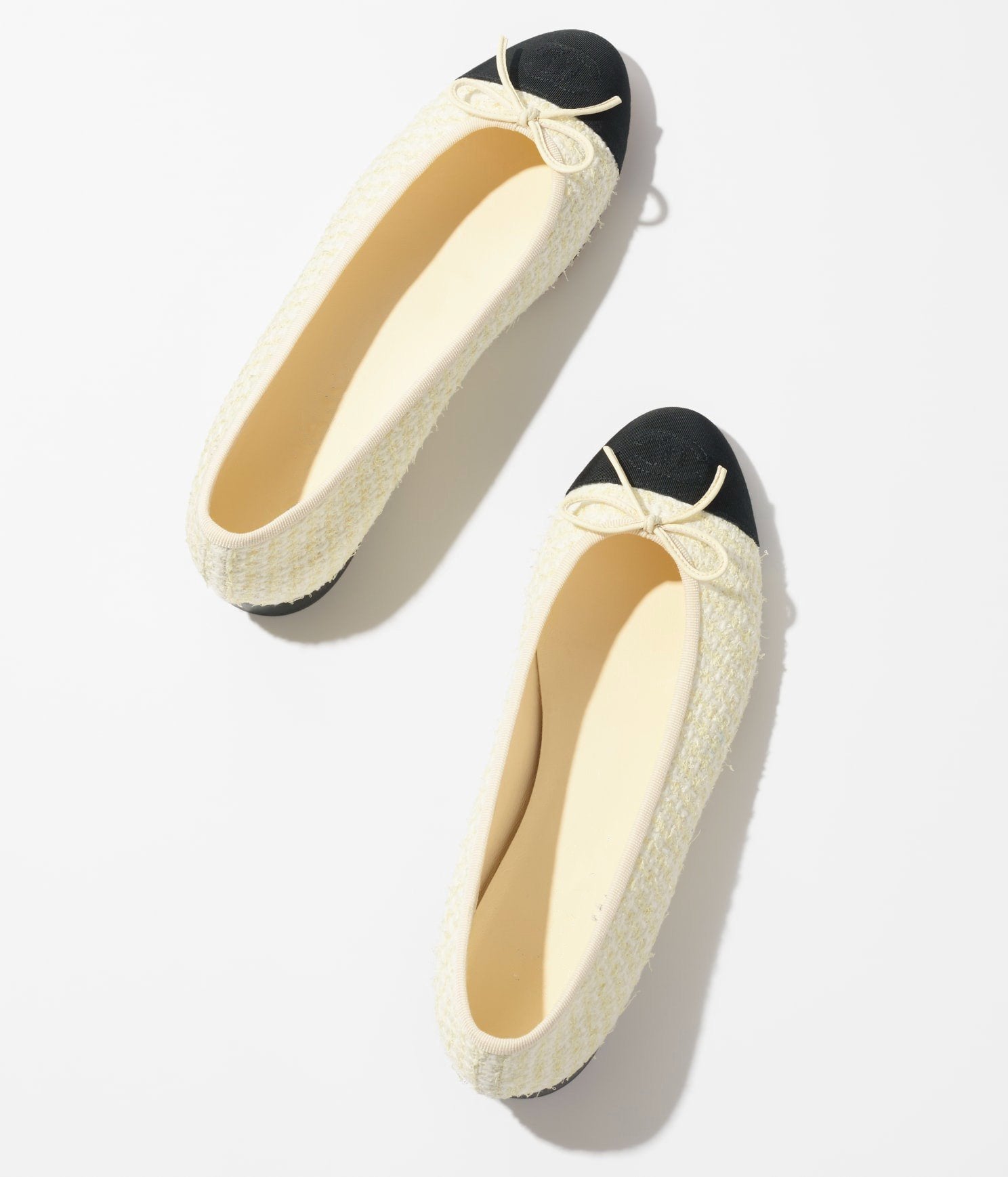 BALLET FLATS LIGHT YELLOW BLACK TWEED