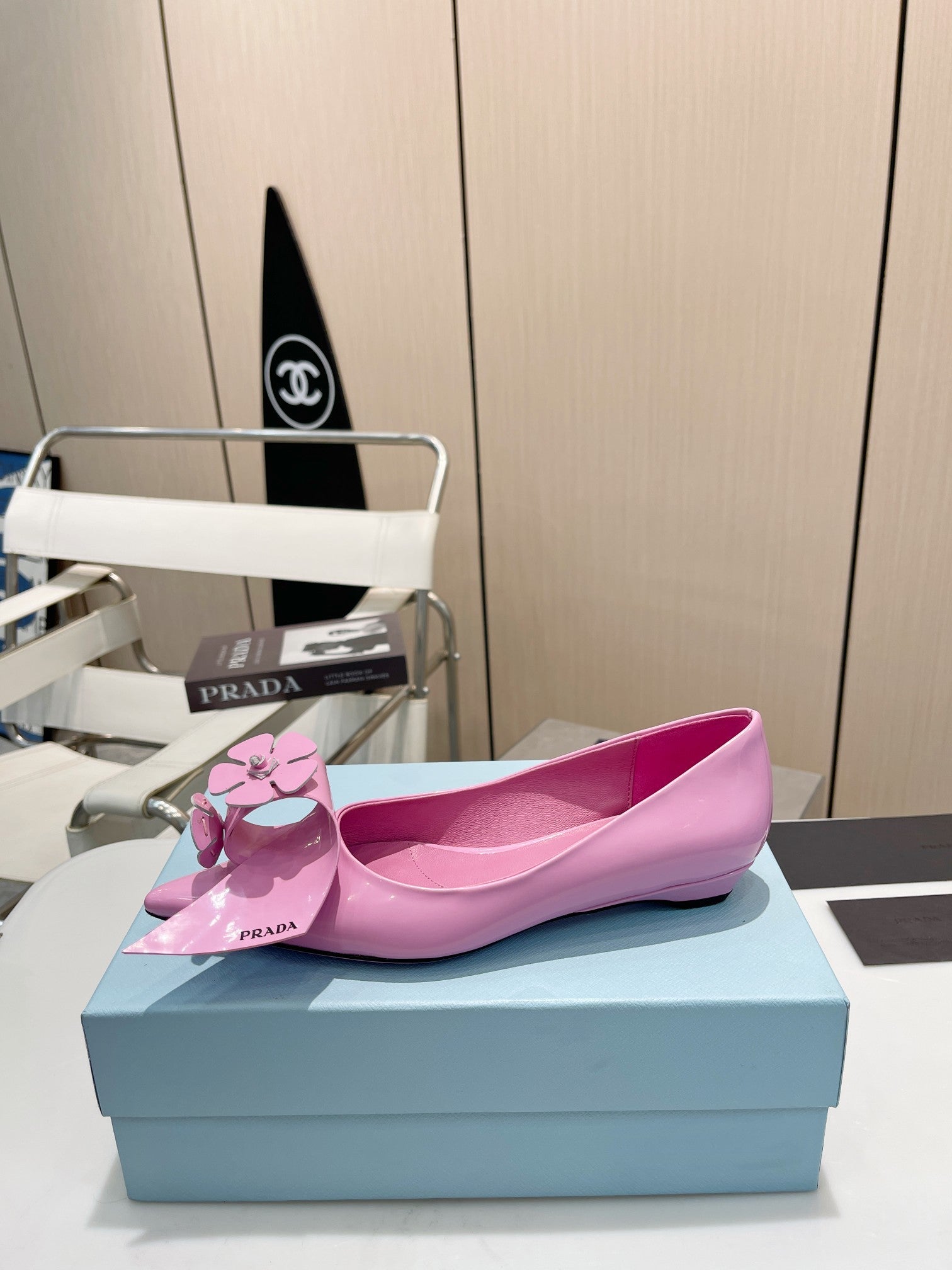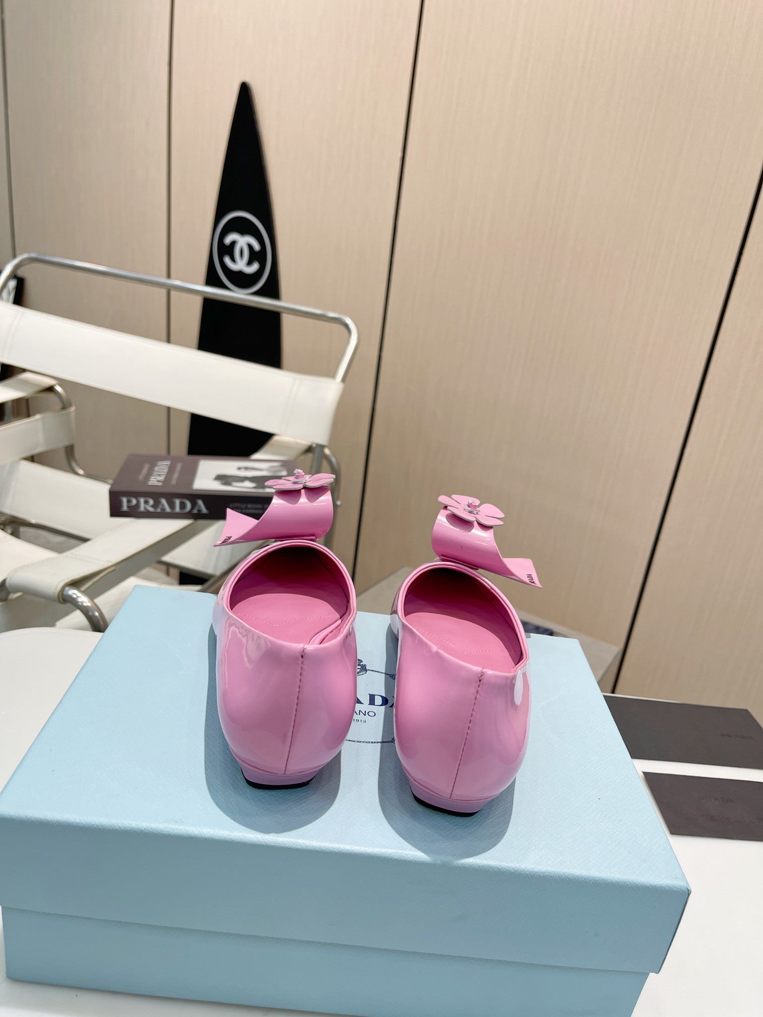 BALLET FLATS POINTED TOE IN PINK SHINY CALFSKIN ATTACHED FLOWERS