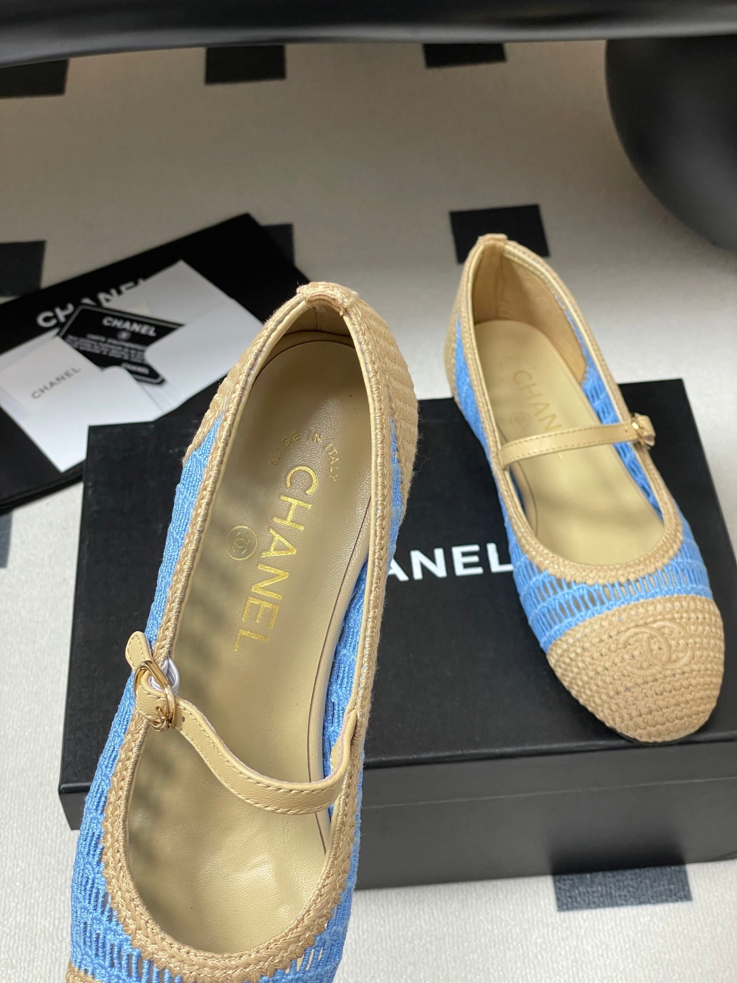 BALLET MARY JANE 10MM IN NATURAL BEIGE AND BLUE RAFFIA