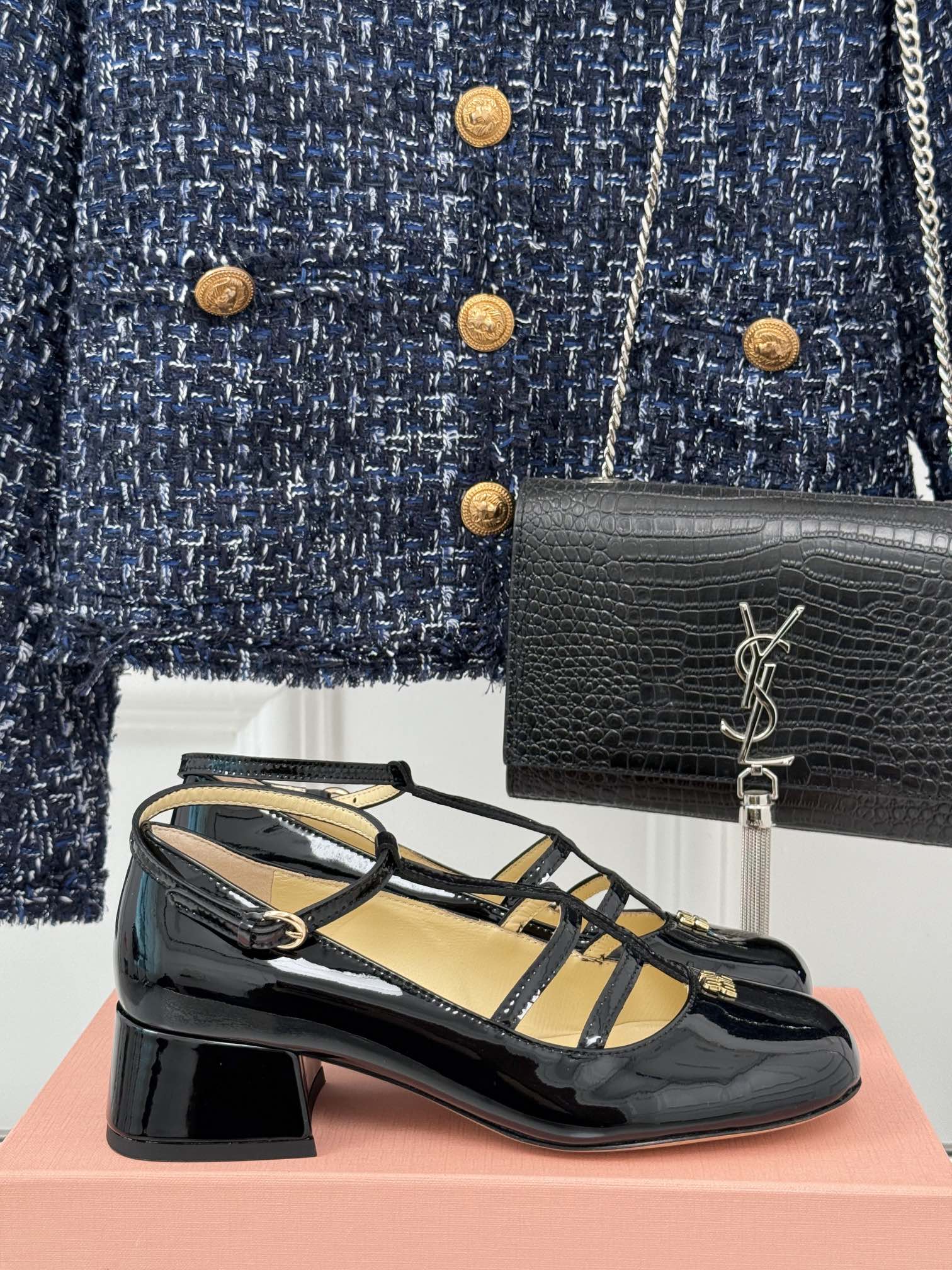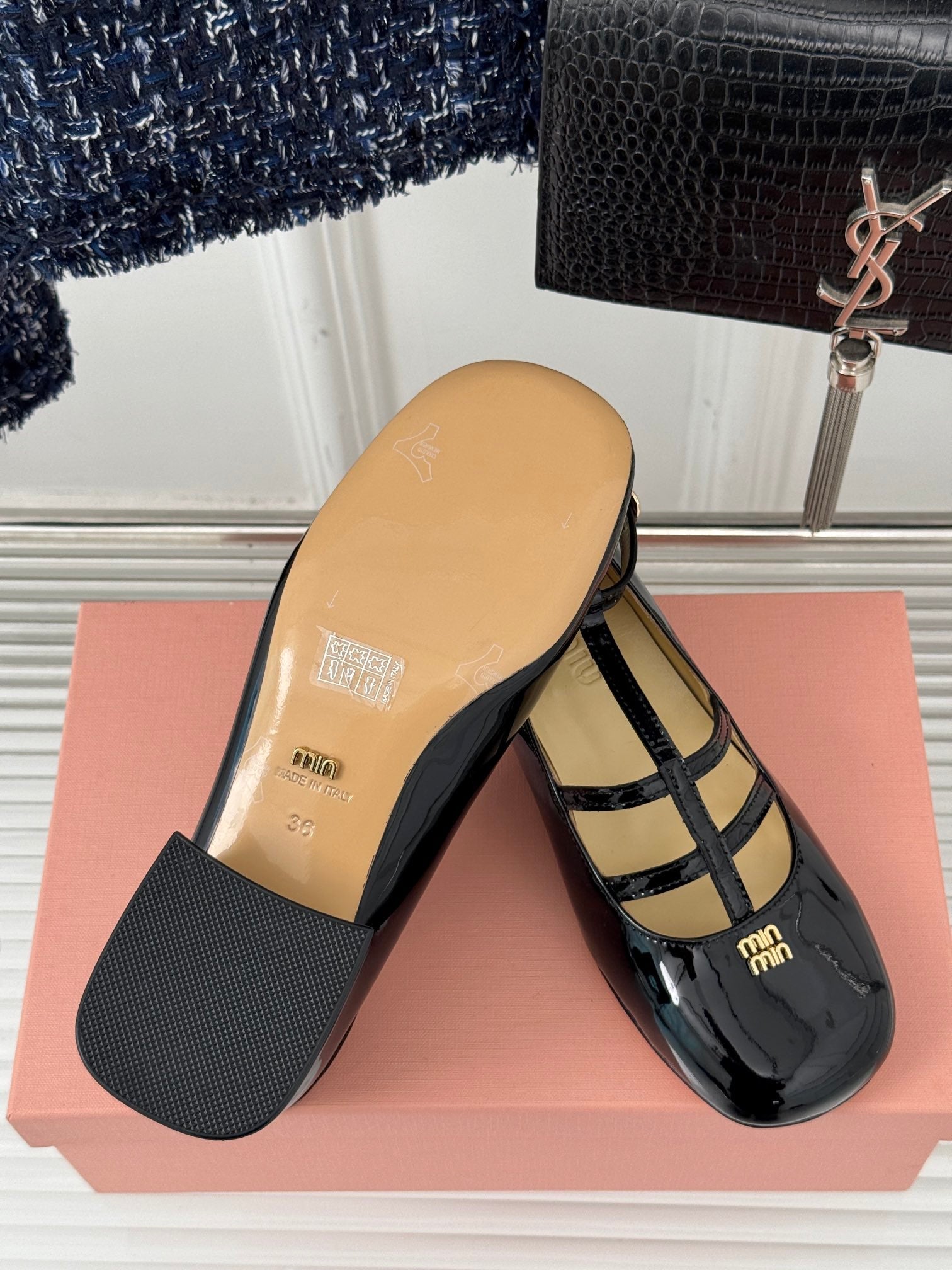 BALLET PUMPS WITH STRAP IN BLACK GLOSSY LAMBSKIN