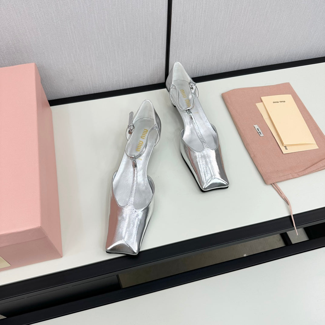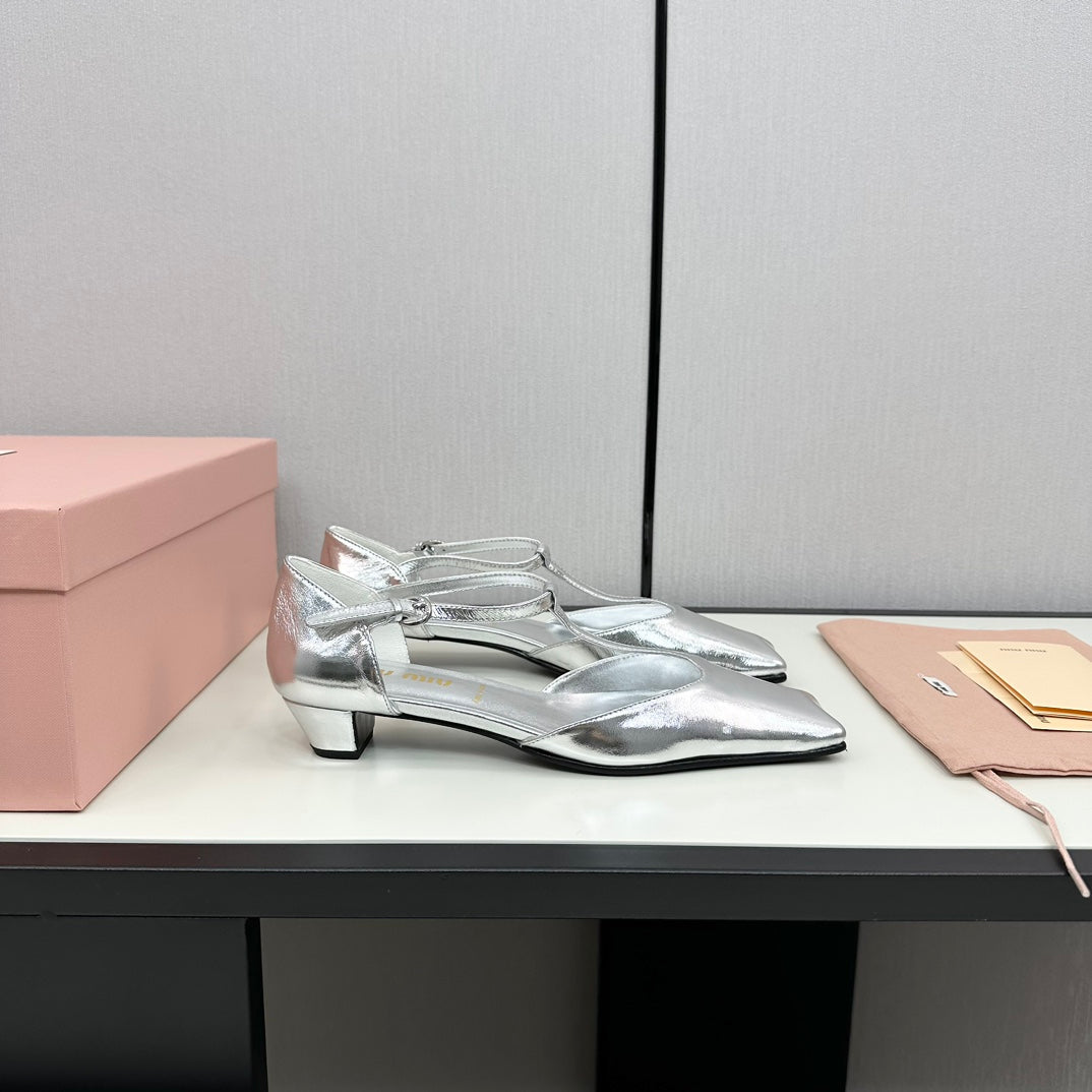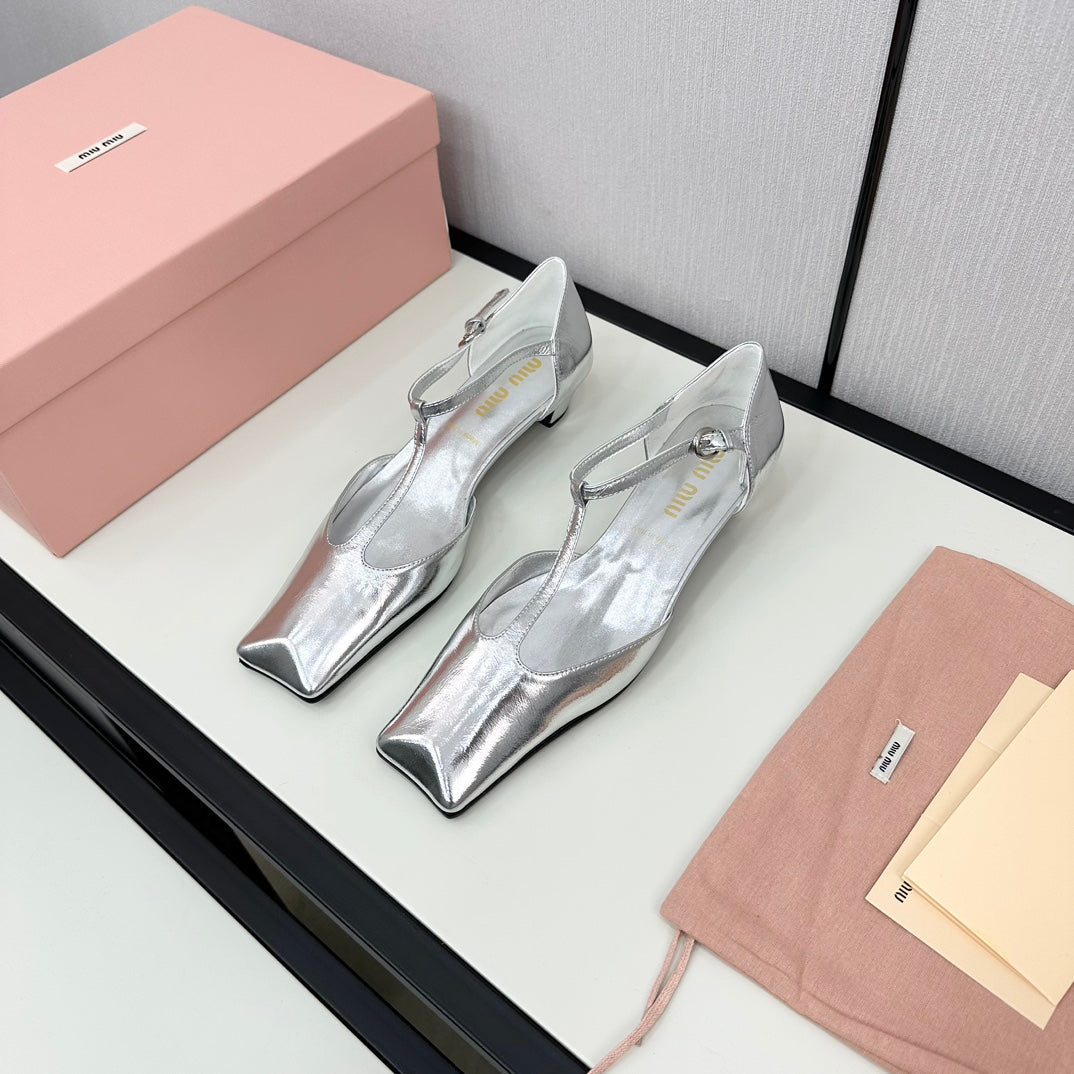 BALLET SANDAL SILVER LAMBSKIN WITH T-STRAP