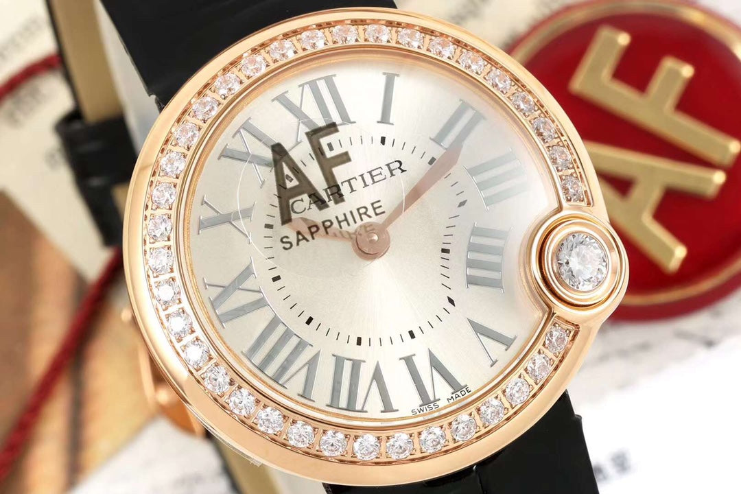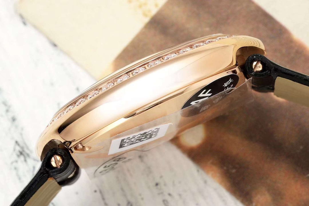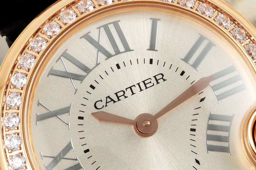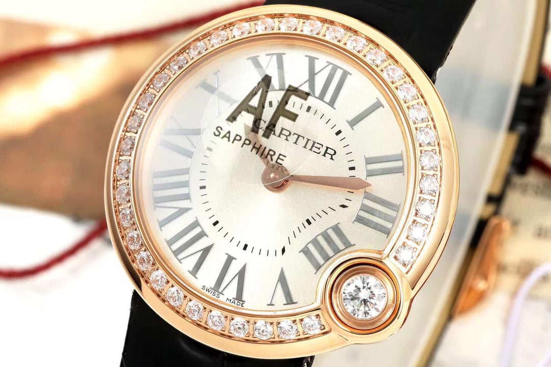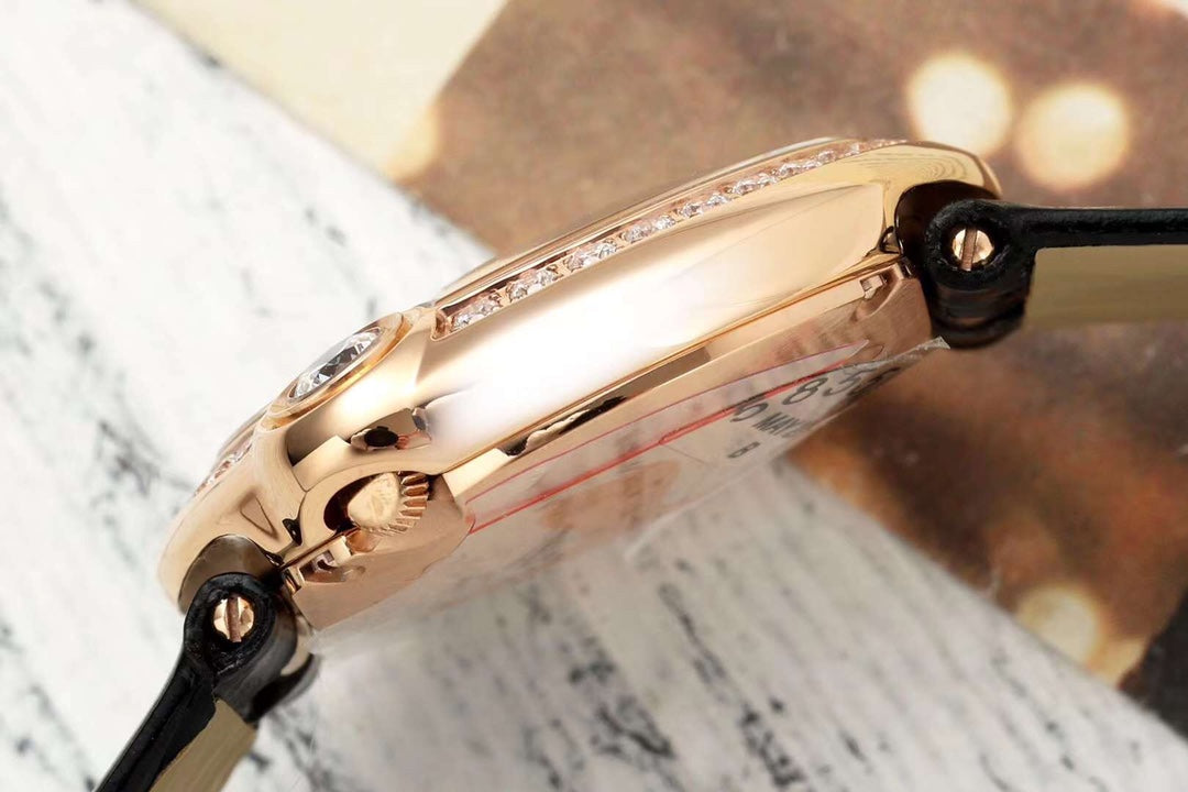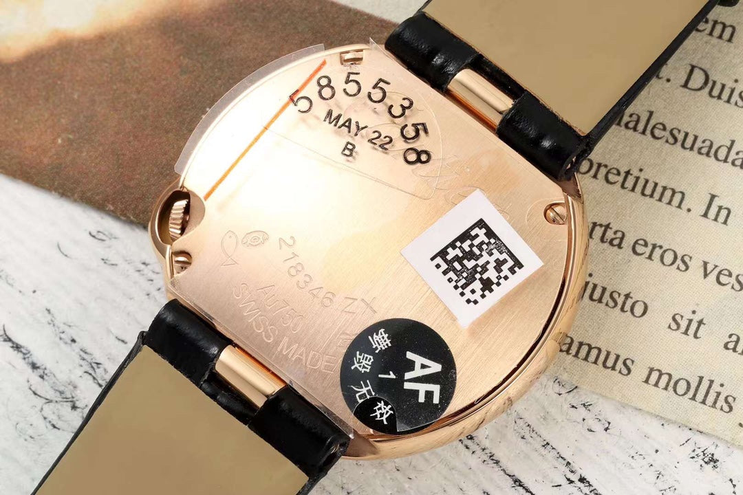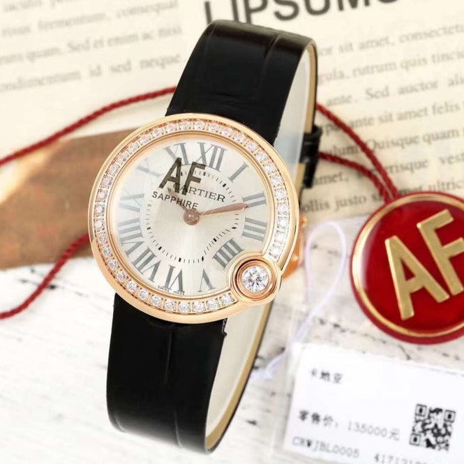 BALLON BLANC DE CARTIER WATCH GOLD CASE AND BLACK CALFSKIN WITH CRYSTALS