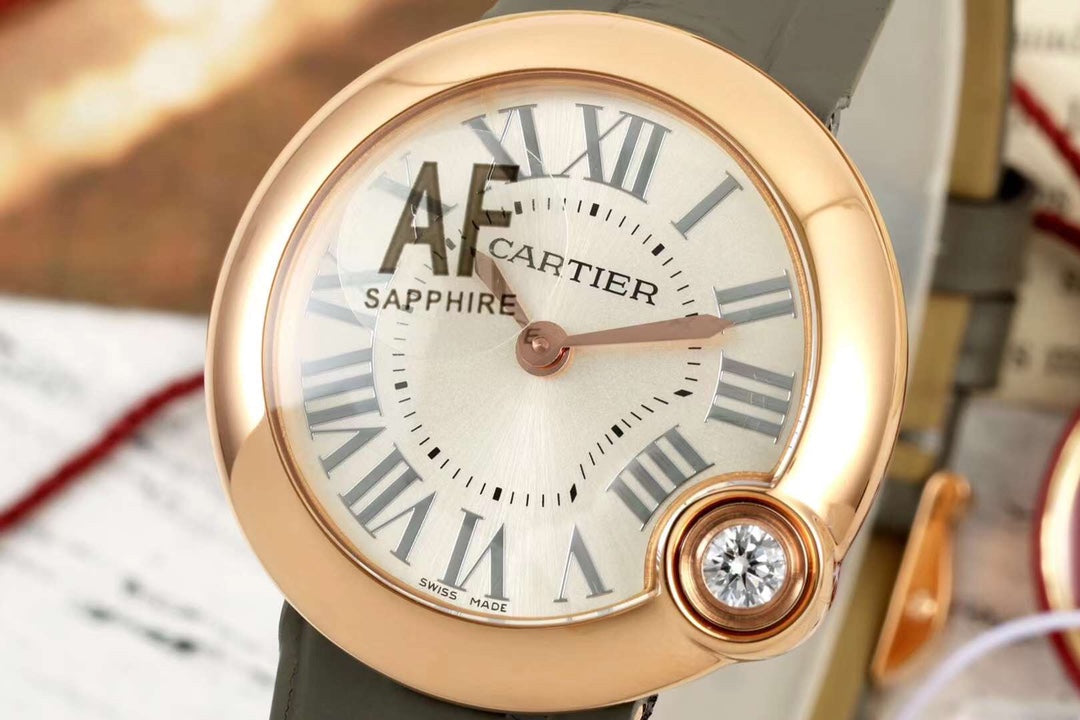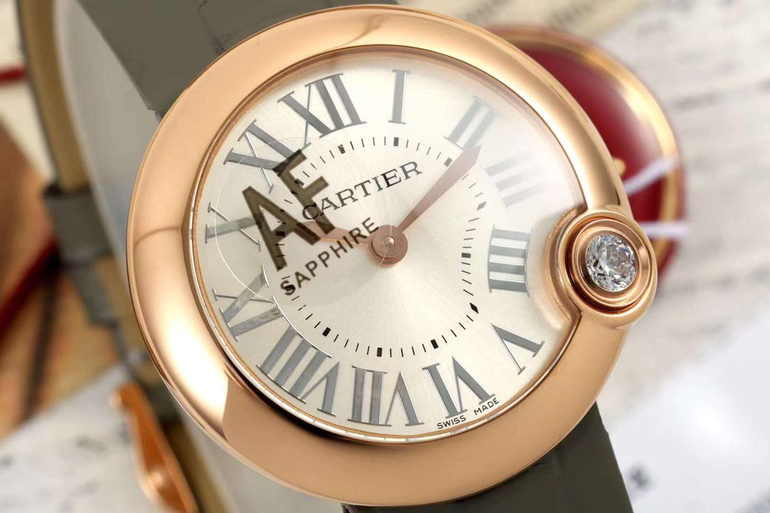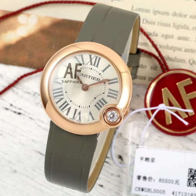 BALLON BLANC DE CARTIER WATCH GOLD CASE WITH WARM GRAY CALFSKIN