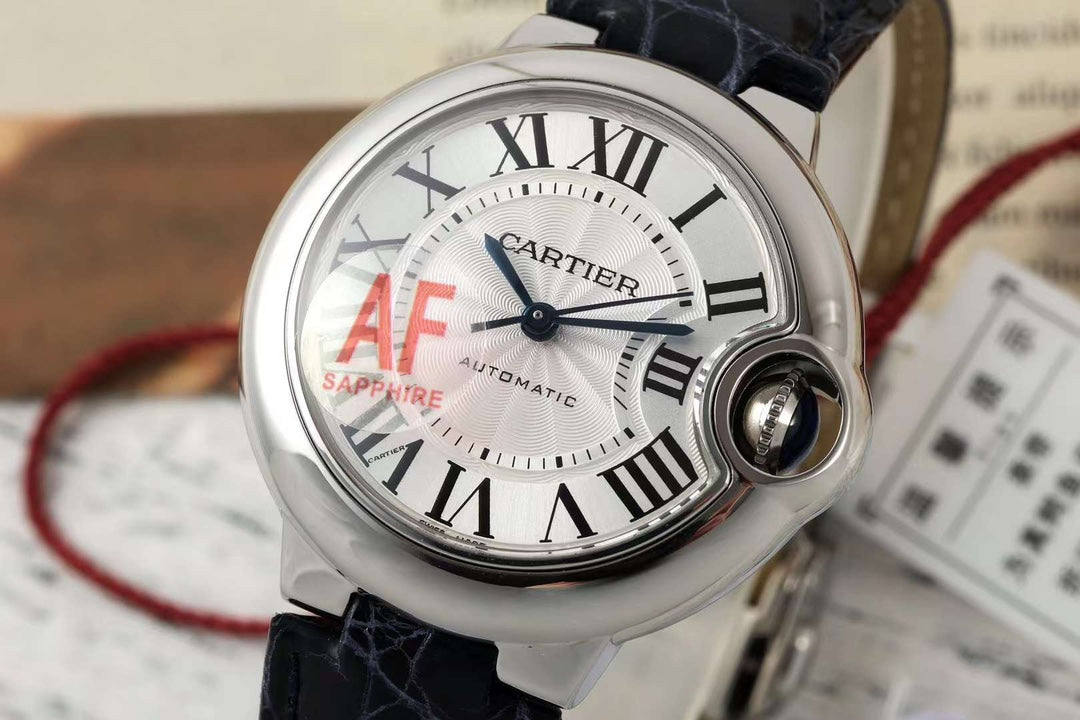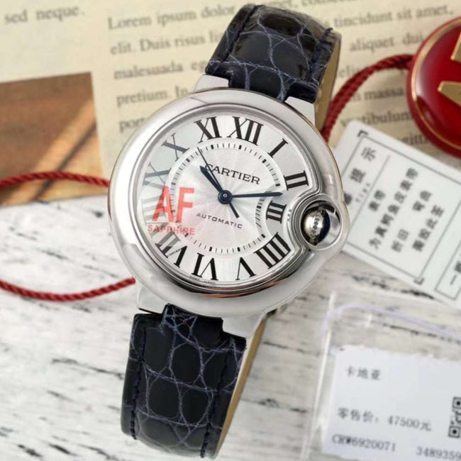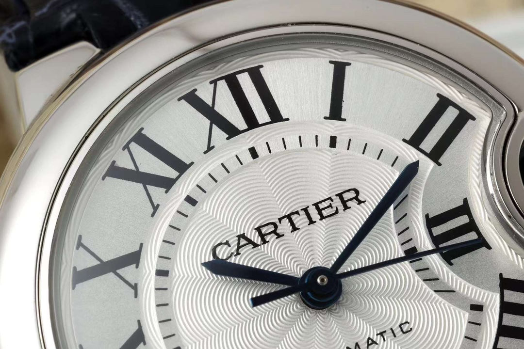 BALLON BLEU DE CARTIER 33 MM WATCH SILVER CASE WITH BLACK LEATHER STRAP