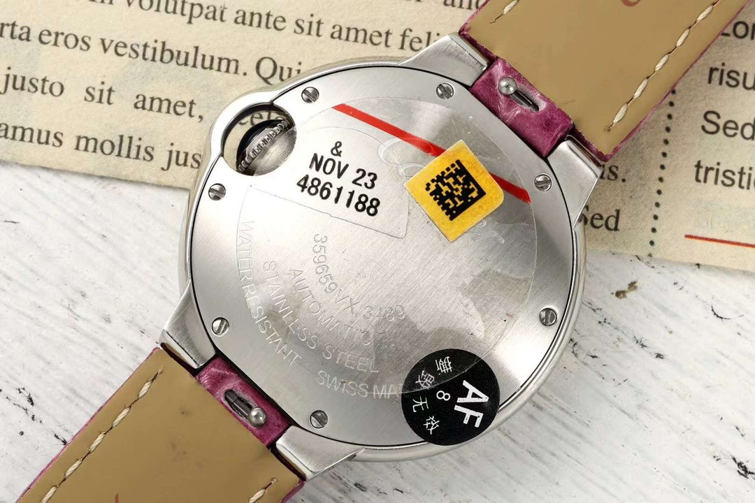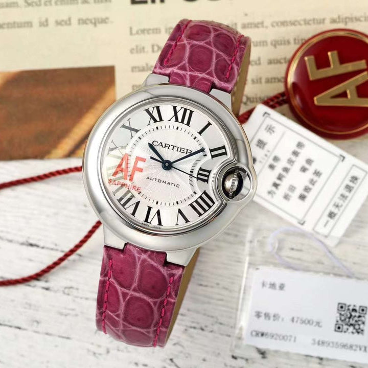 BALLON BLEU DE CARTIER 33 MM WATCH SILVER CASE WITH BRIGHT PINK LEATHER STRAP