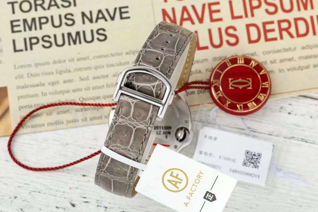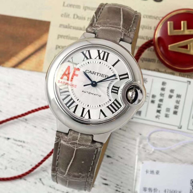 BALLON BLEU DE CARTIER 33 MM WATCH SILVER CASE WITH CEDAR BROWN LEATHER STRAP