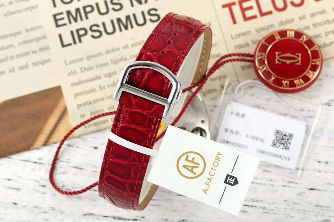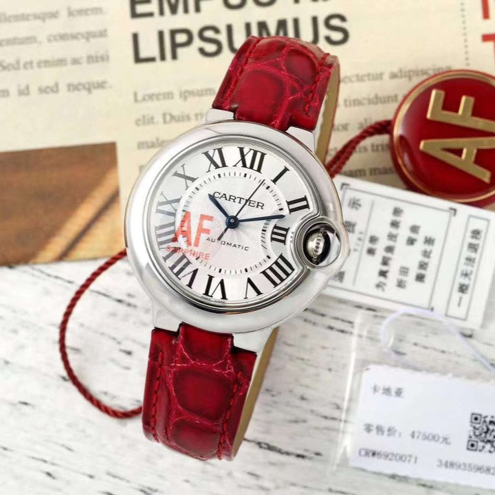 BALLON BLEU DE CARTIER 33 MM WATCH SILVER CASE WITH CHERRY RED LEATHER STRAP