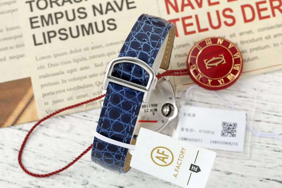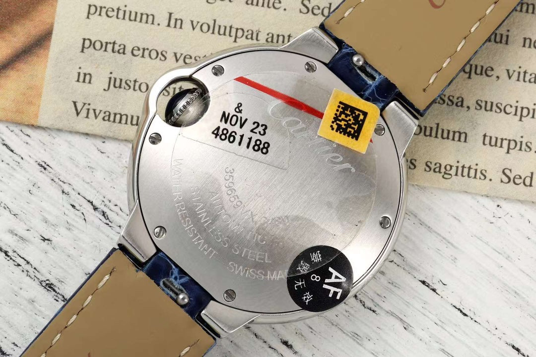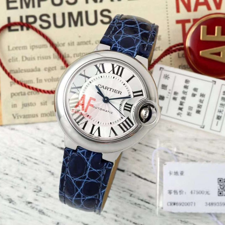 BALLON BLEU DE CARTIER 33 MM WATCH SILVER CASE WITH COBALT BLUE LEATHER STRAP