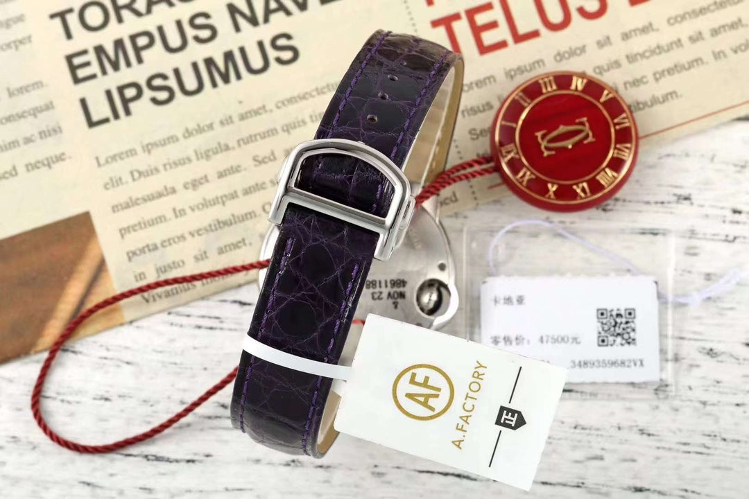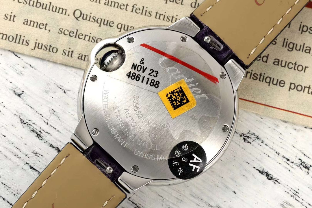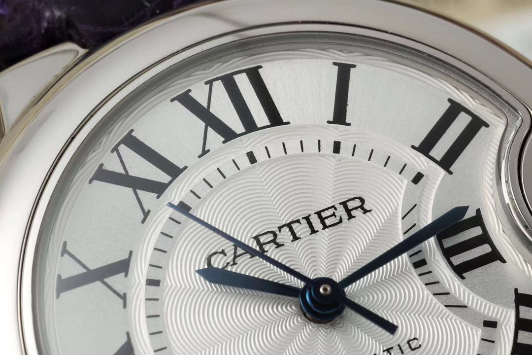 BALLON BLEU DE CARTIER 33 MM WATCH SILVER CASE WITH MIDNIGHT PURPLE LEATHER STRAP