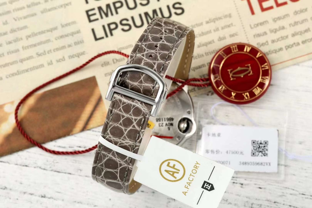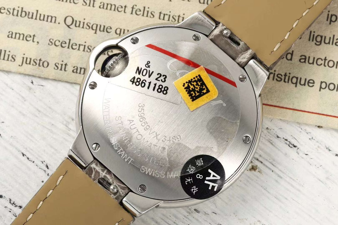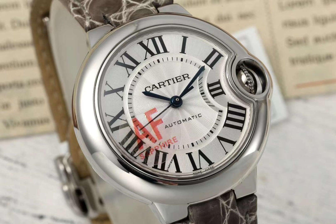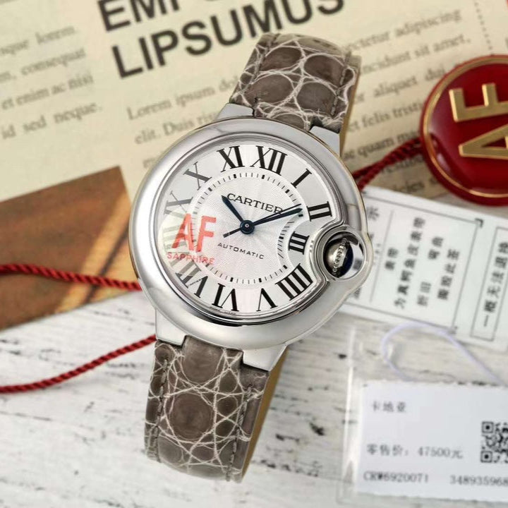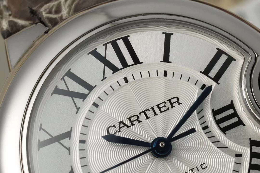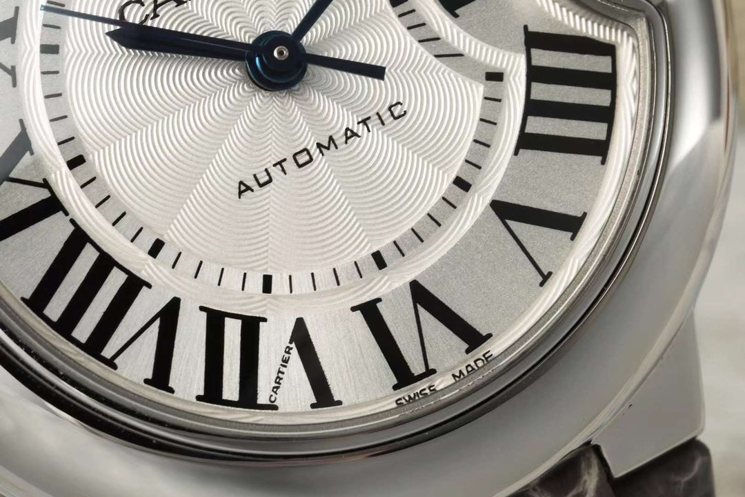 BALLON BLEU DE CARTIER 33 MM WATCH SILVER CASE WITH WENGE BROWN LEATHER STRAP