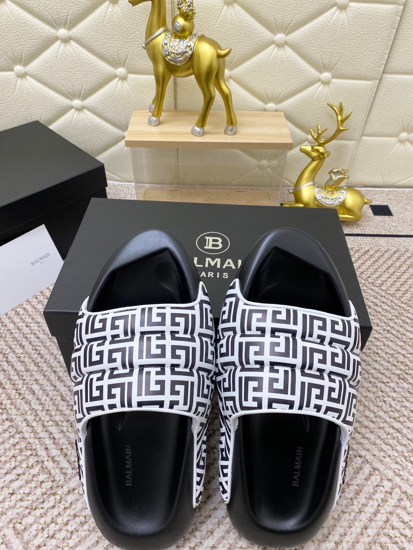 BALMAIN 25S BALMAIN MULES IN BLACK AND WHITE CALFSKIN