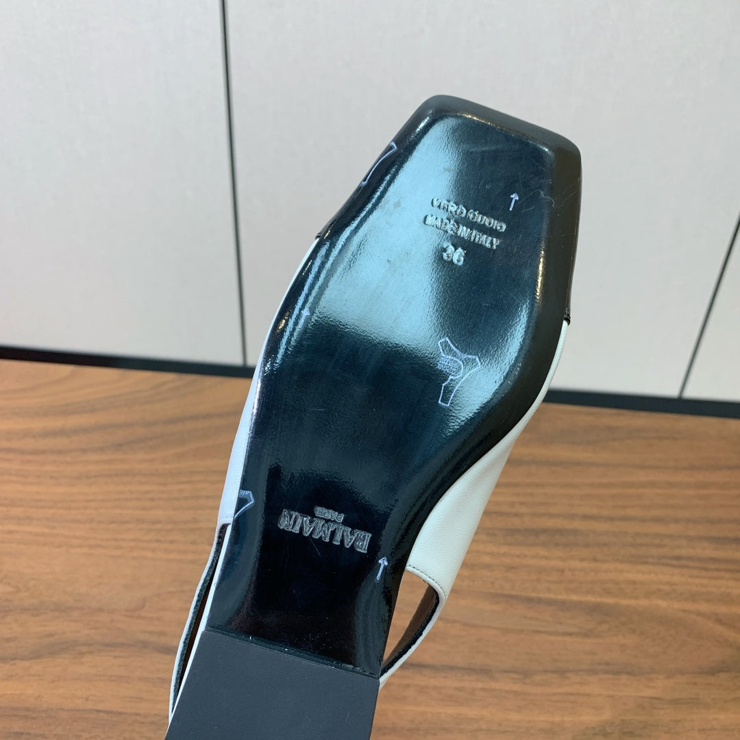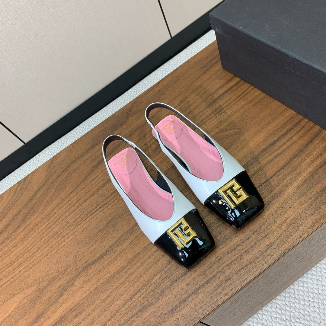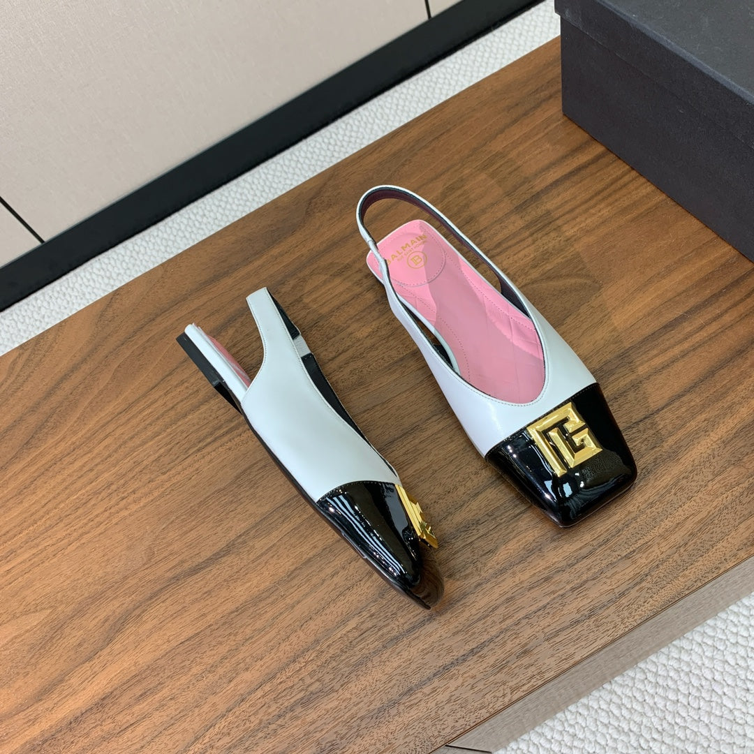 BALMAIN 25S FLAT EDEN SLINGBACKS IN BLACK AND WHITE CALFSKIN