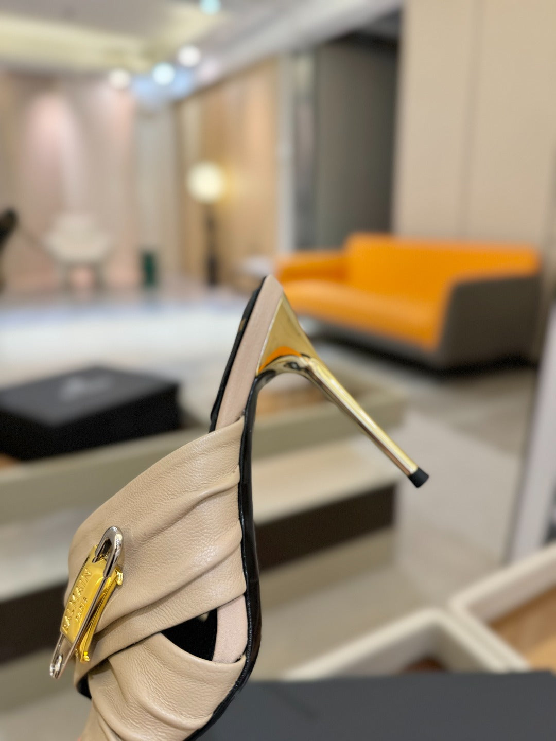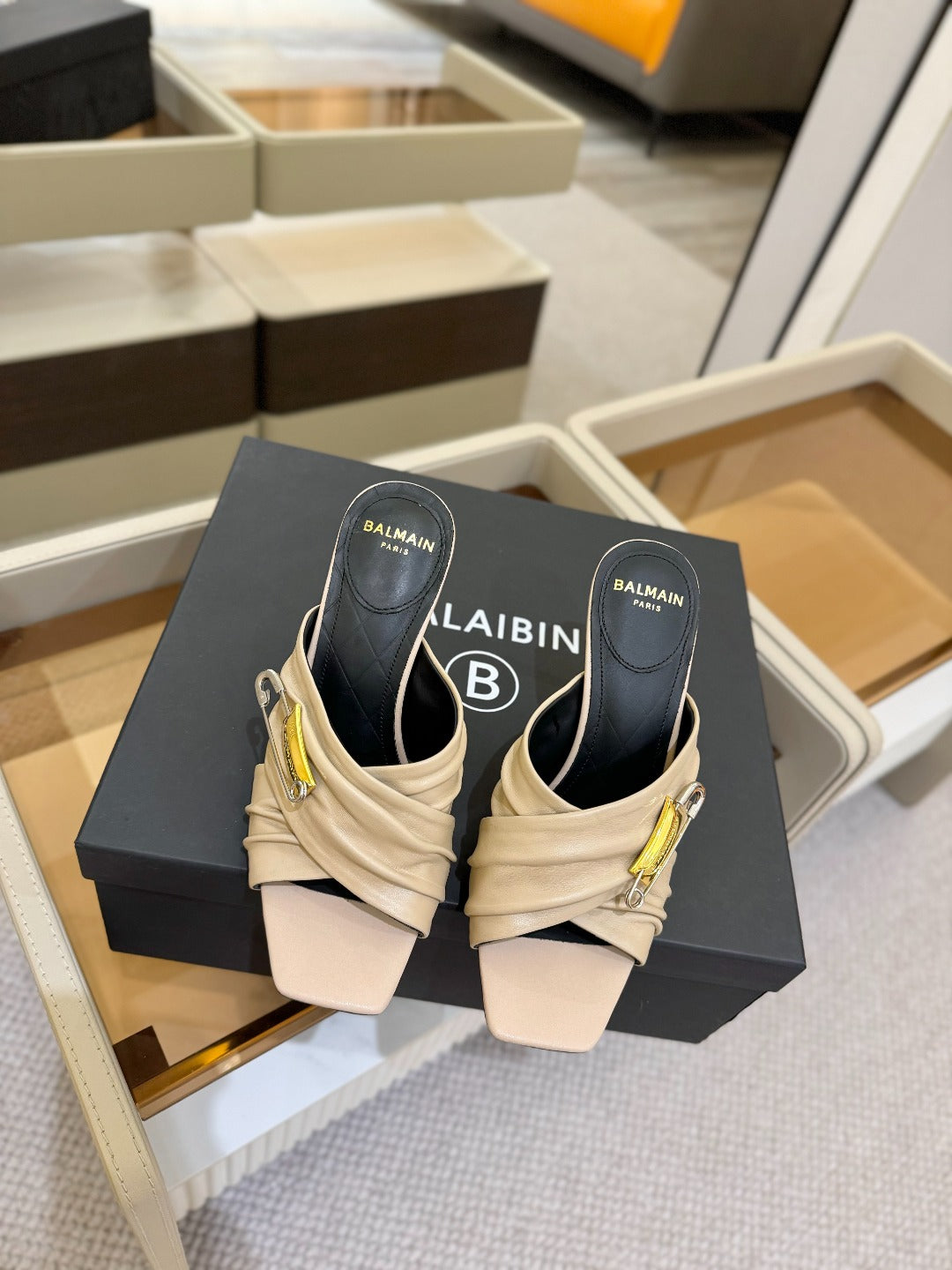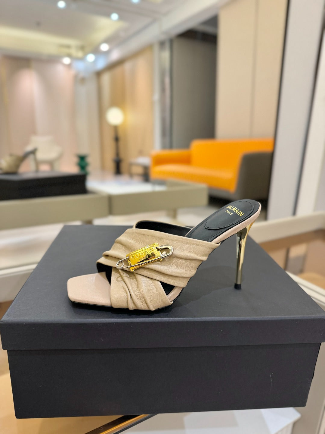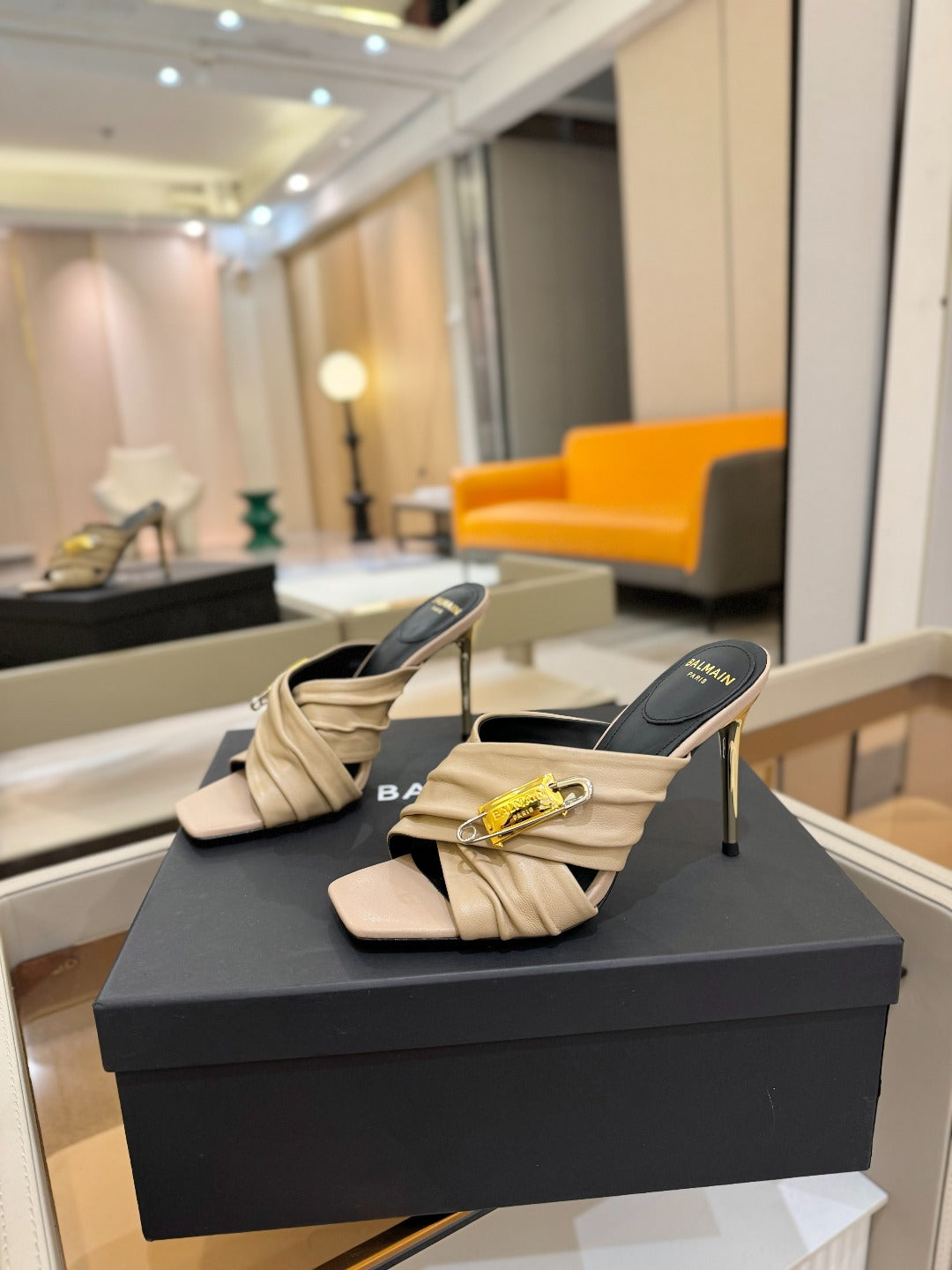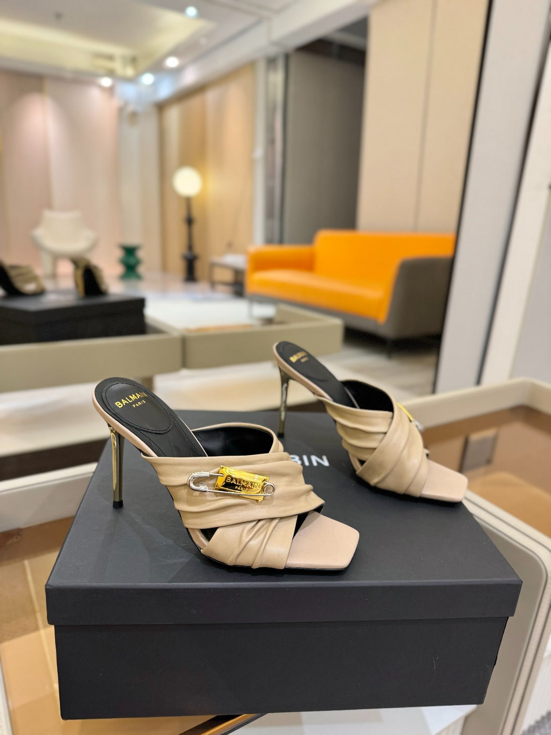 BALMAIN 25S HIGH HEEL SANDALS 95MM IN BEIGE CALFSKIN