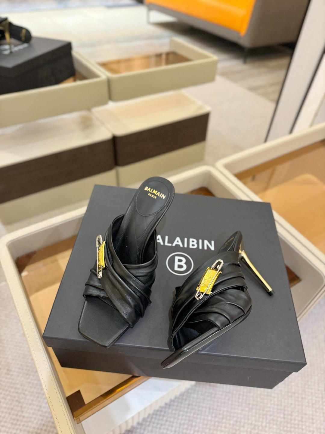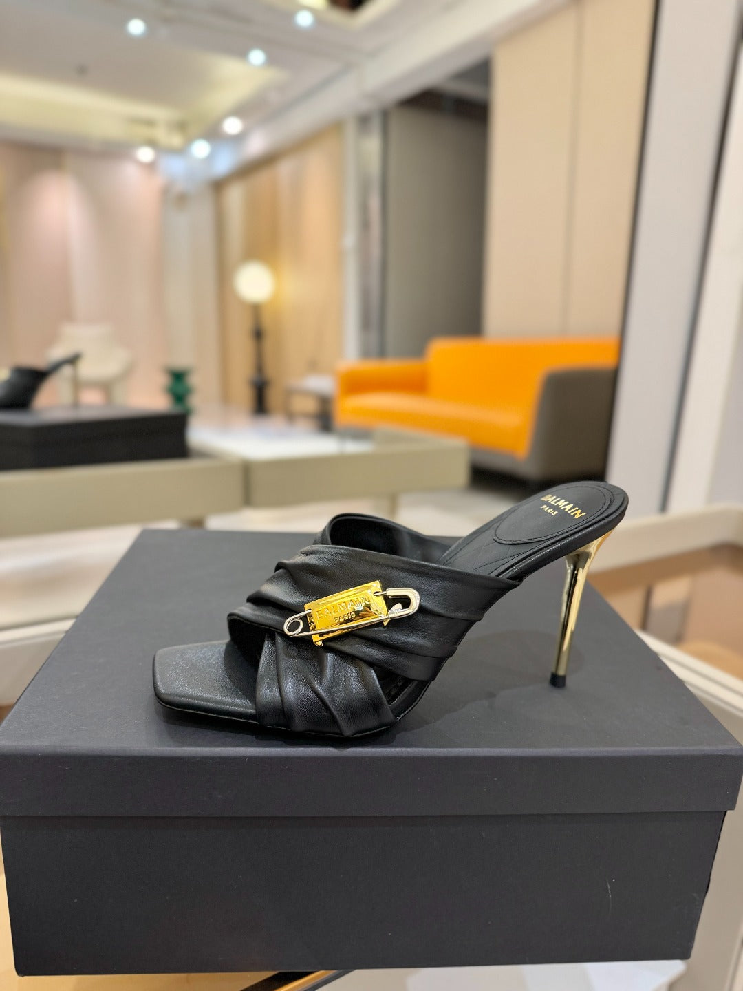 BALMAIN 25S HIGH HEEL SANDALS 95MM IN BLACK CALFSKIN