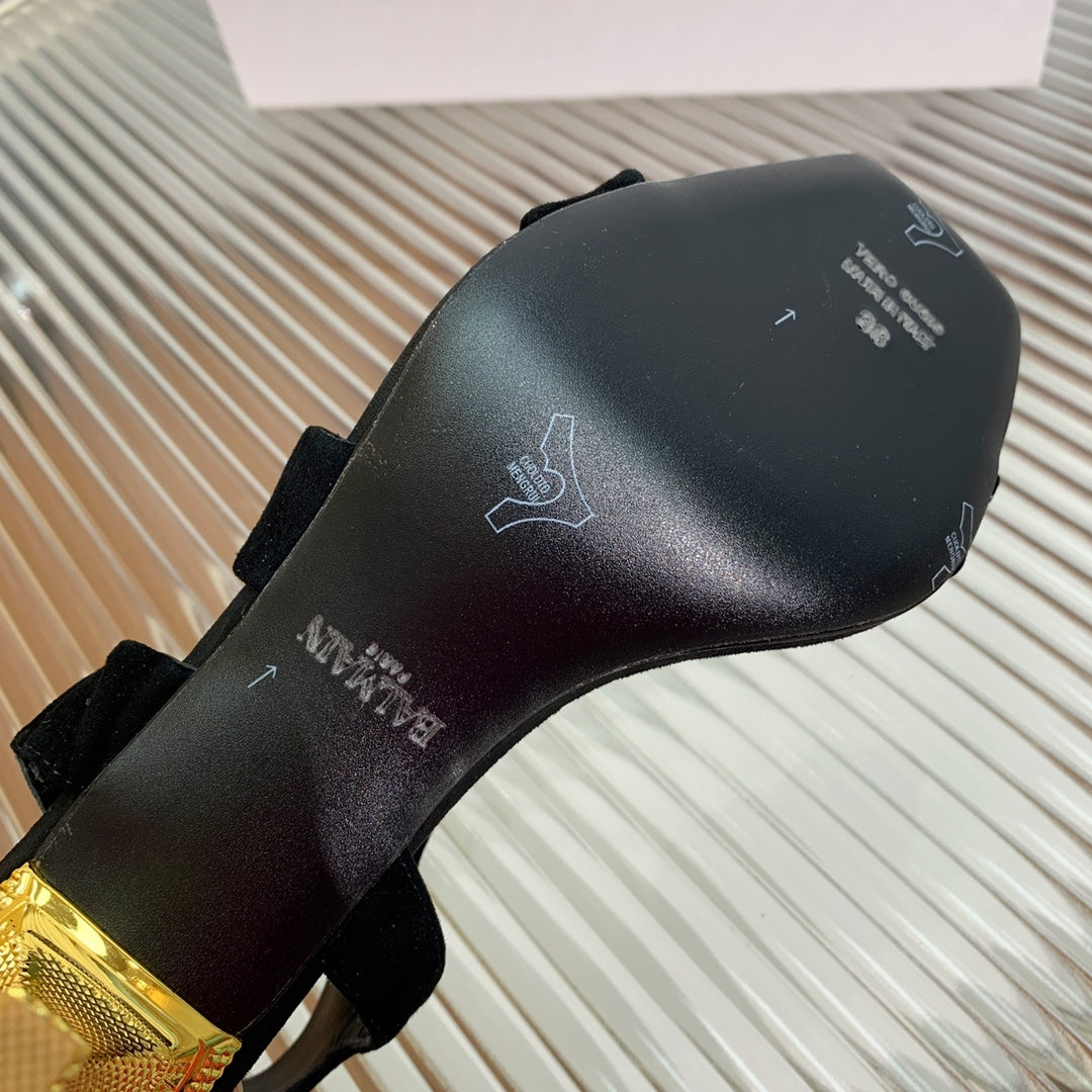 BALMAIN 25S HIGH HEEL SANDALS 95MM IN BLACK SUEDE