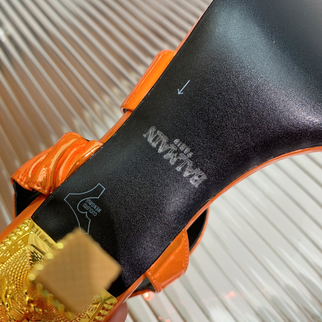 BALMAIN 25S HIGH HEEL SANDALS 95MM IN BURNT ORANGE GLOSSY CALFSKIN