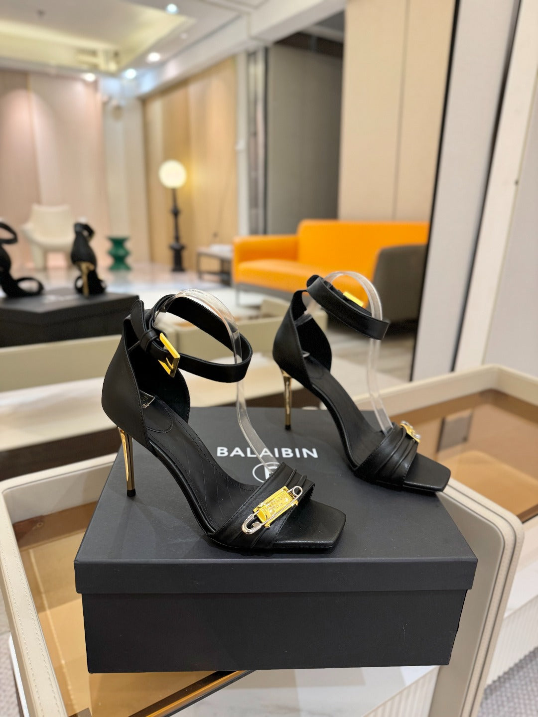 BALMAIN 25S HIGH HEELS 95MM IN BLACK CALFSKIN