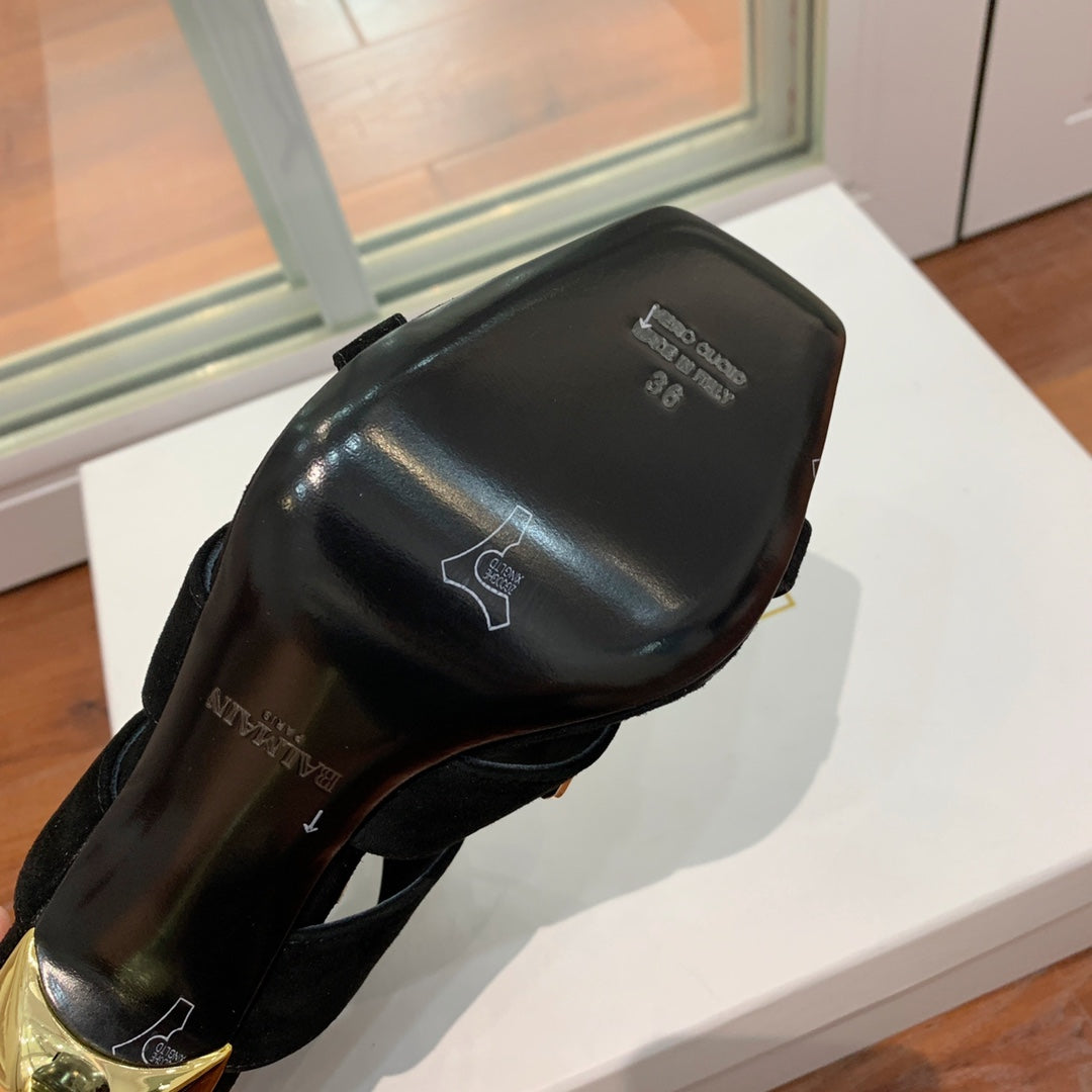 BALMAIN 25S HIGH HEELS 95MM IN BLACK SUEDE WITH PEARL
