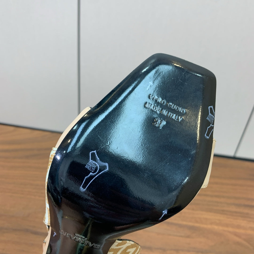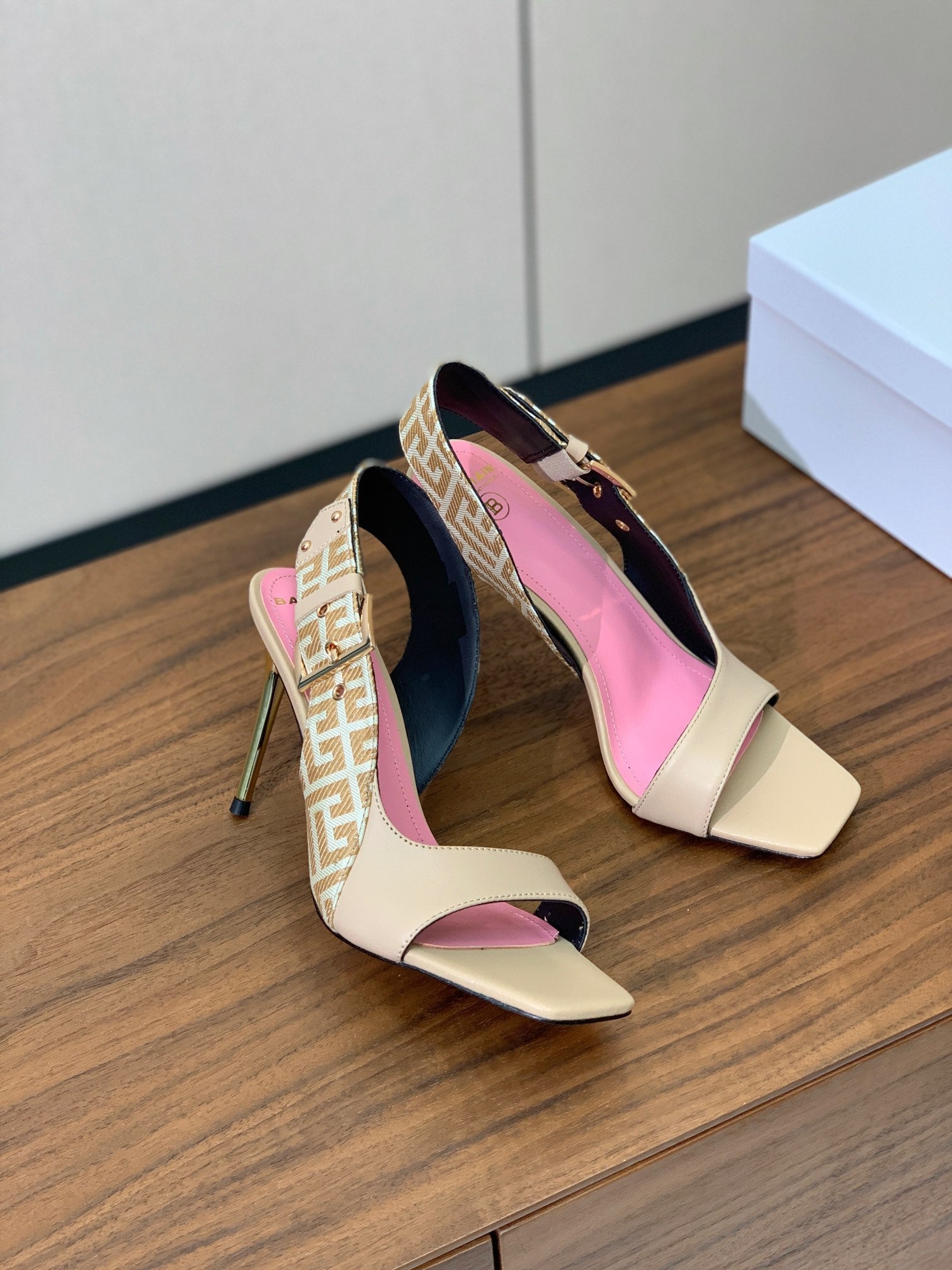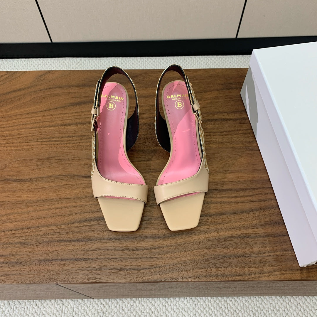 BALMAIN 25S JACQUARD KNIT SLINGBACK PUMPS 95MM IN BEIGE GRAY AND PINK CALFSKIN