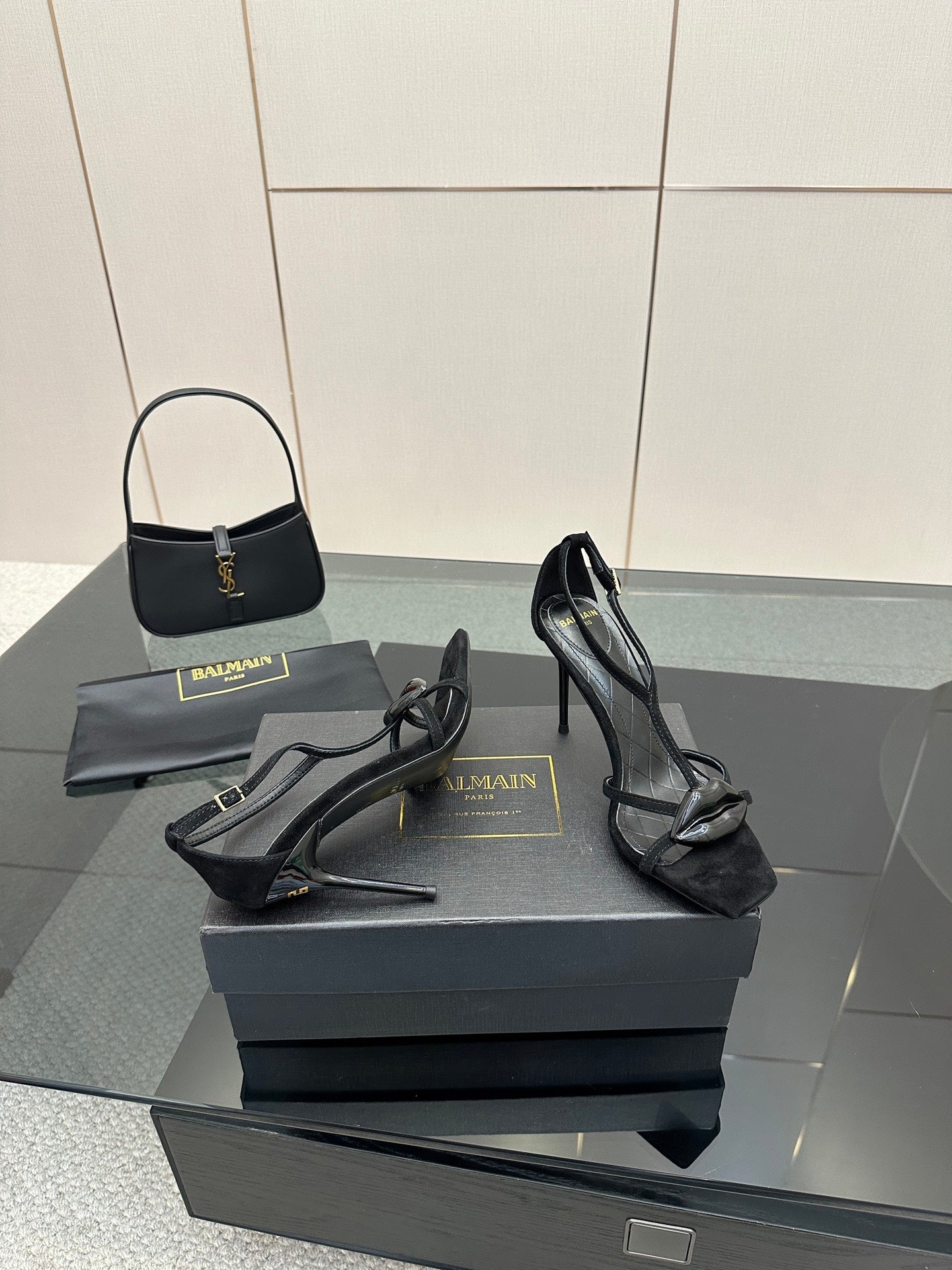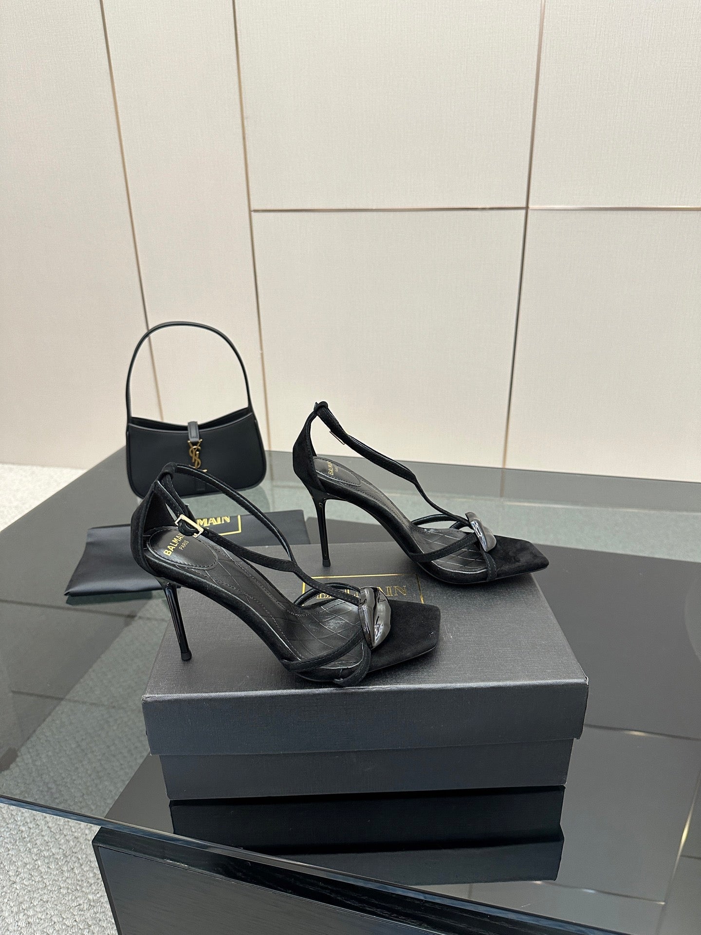 BALMAIN 25S LIPS SANDALS 10 IN BLACK SUEDE