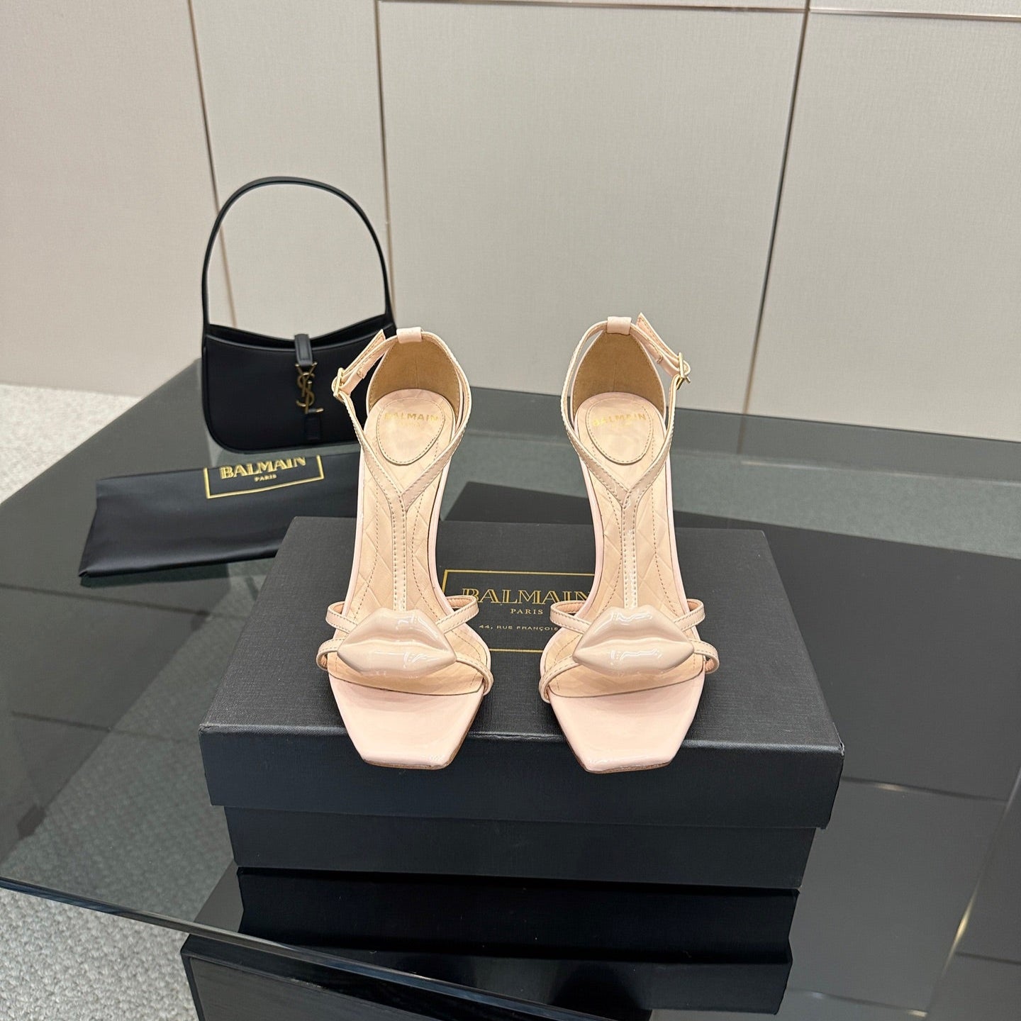 BALMAIN 25S LIPS SANDALS 10 IN BLUSH BEIGE CALFSKIN