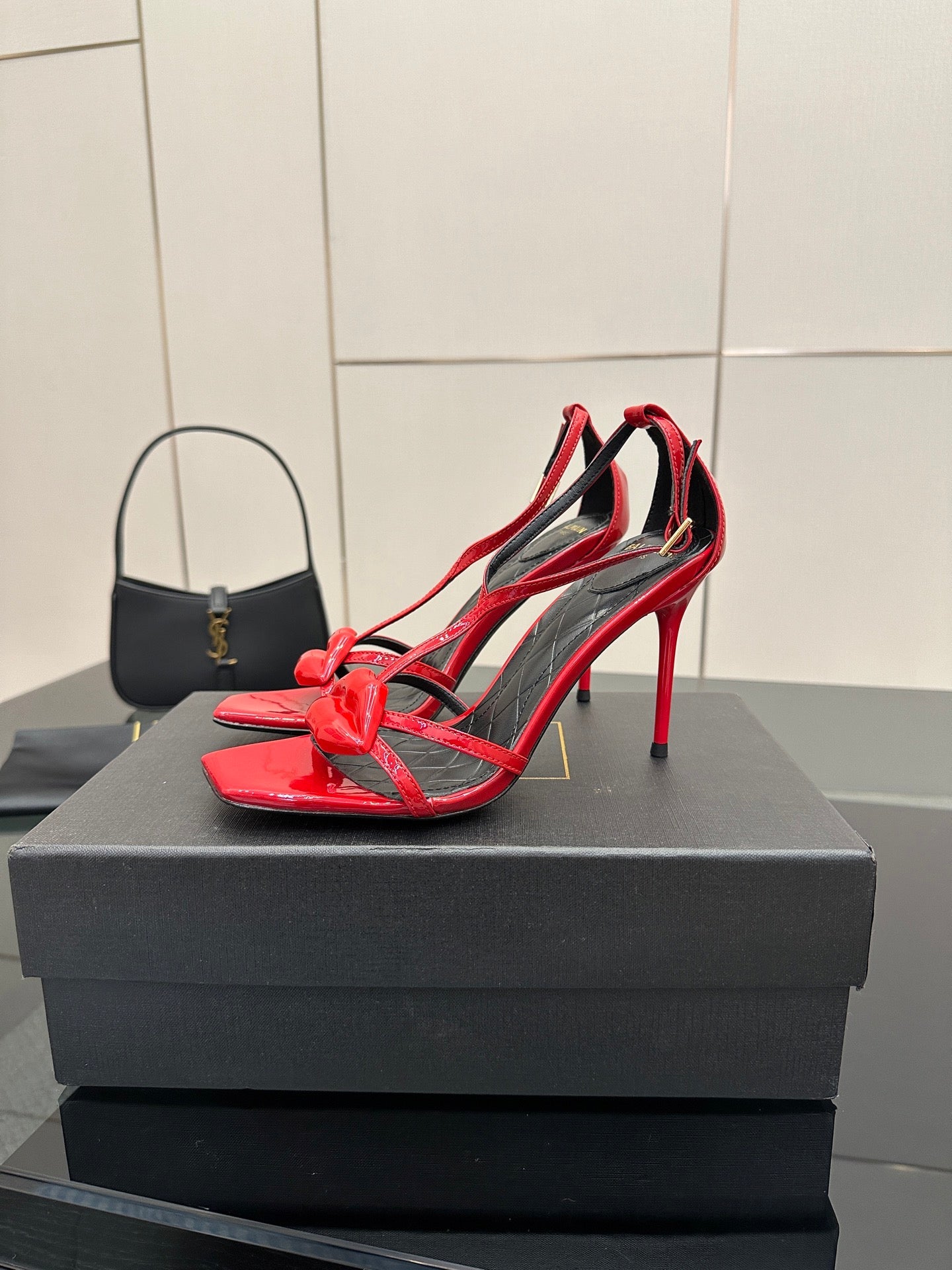 BALMAIN 25S LIPS SANDALS 10 IN CRIMSON RED CALFSKIN