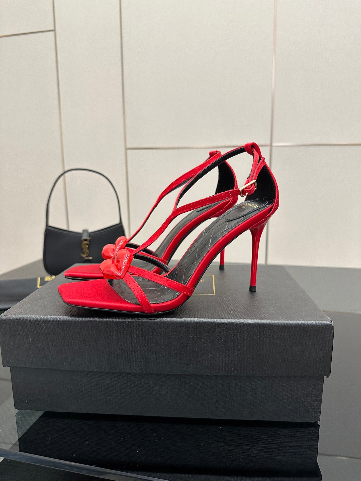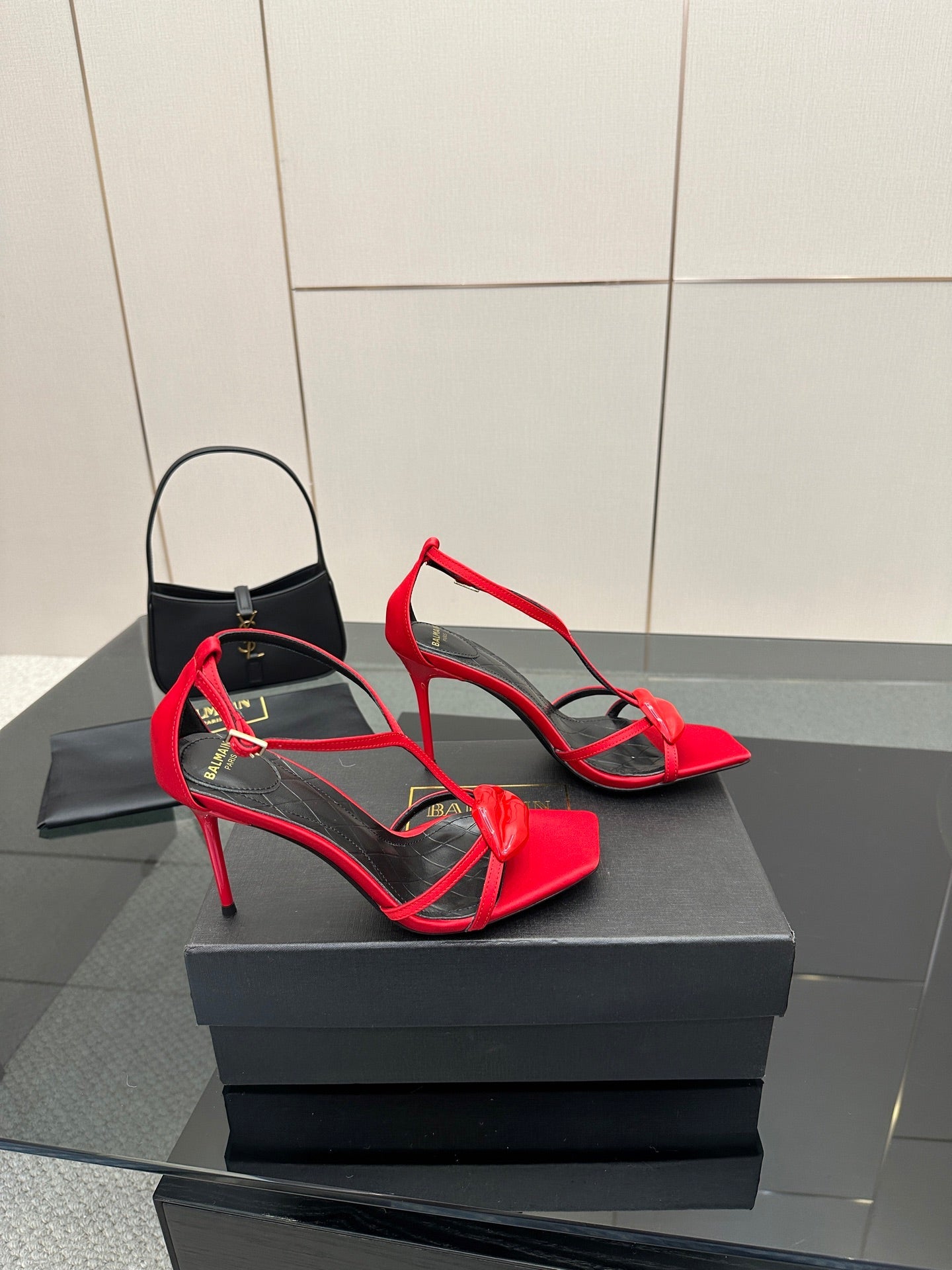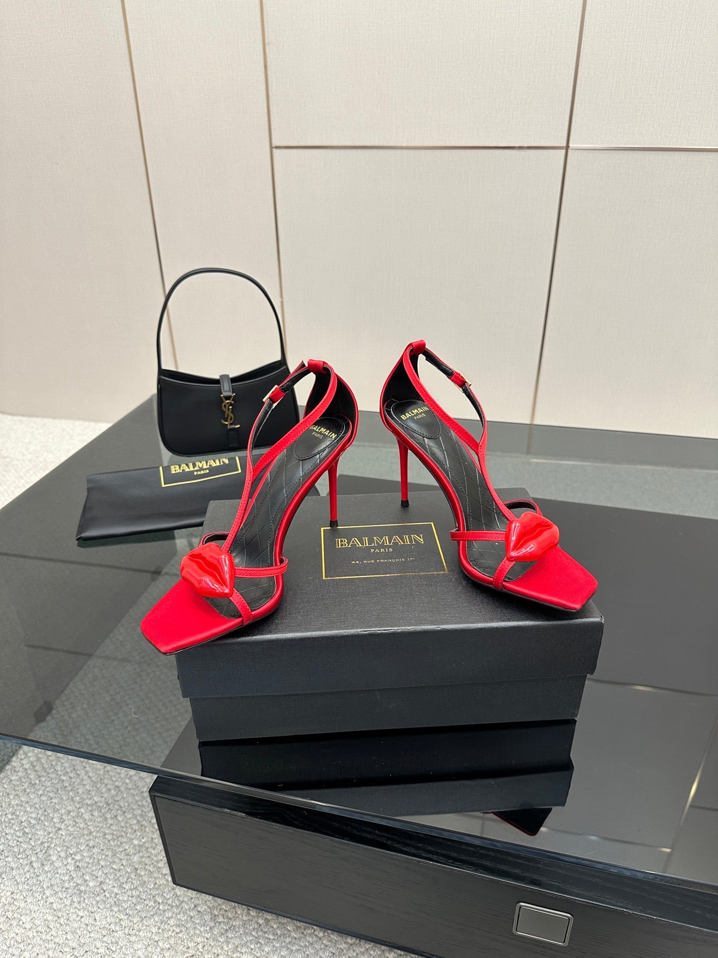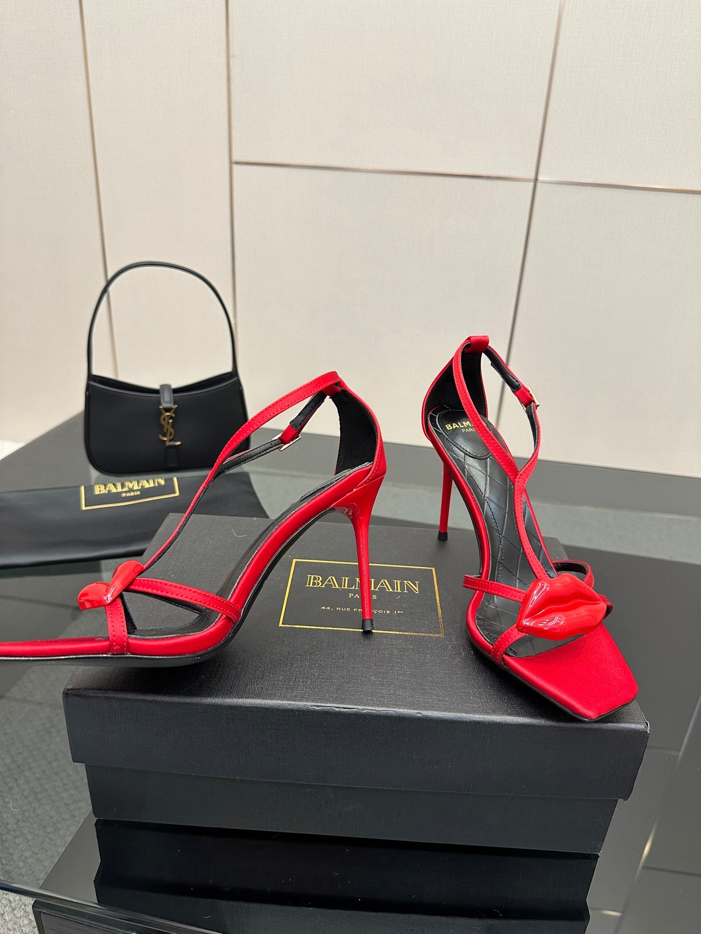 BALMAIN 25S LIPS SANDALS 10 IN CRIMSON RED SATIN