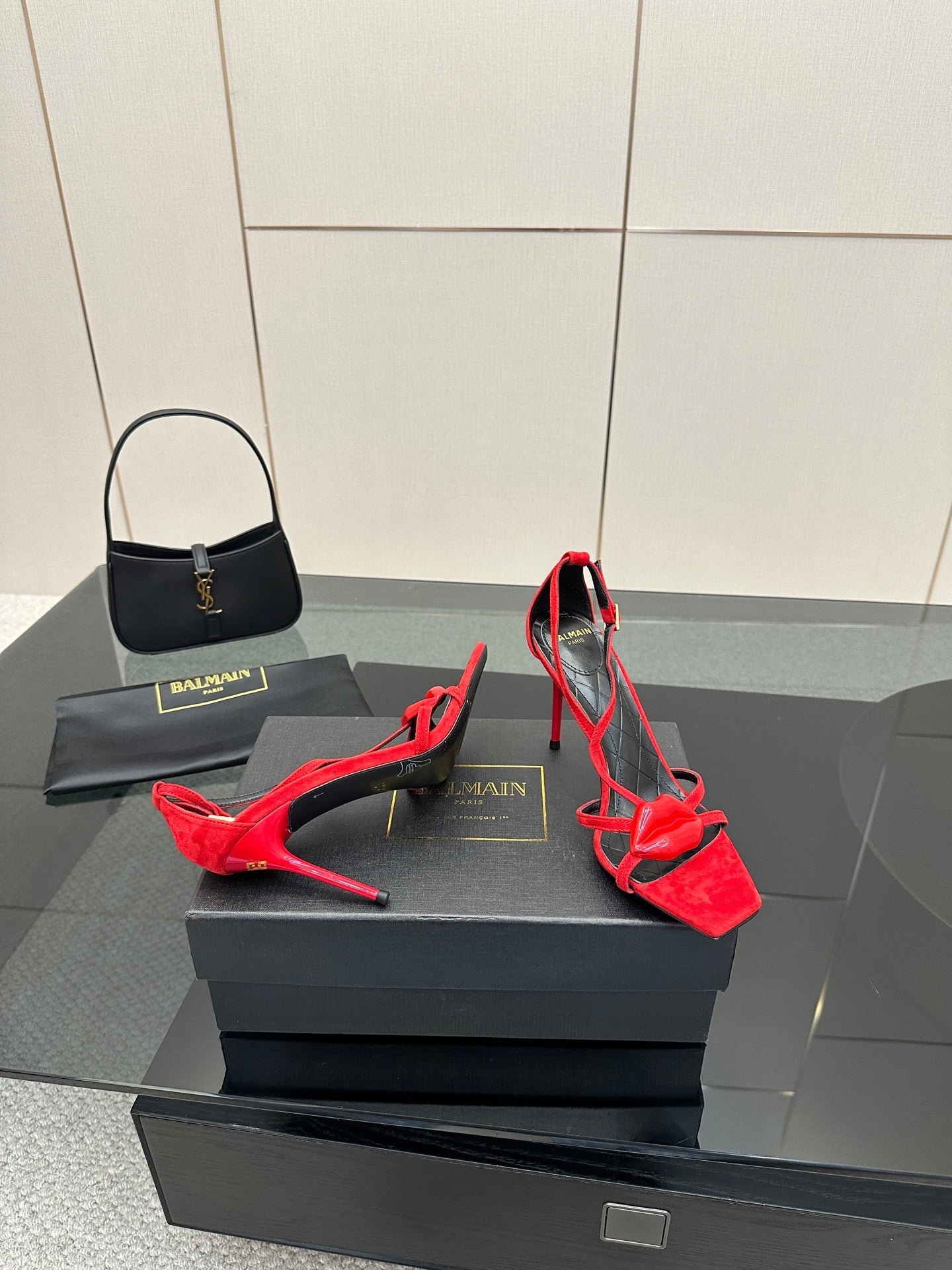 BALMAIN 25S LIPS SANDALS 10 IN CRIMSON RED SUEDE