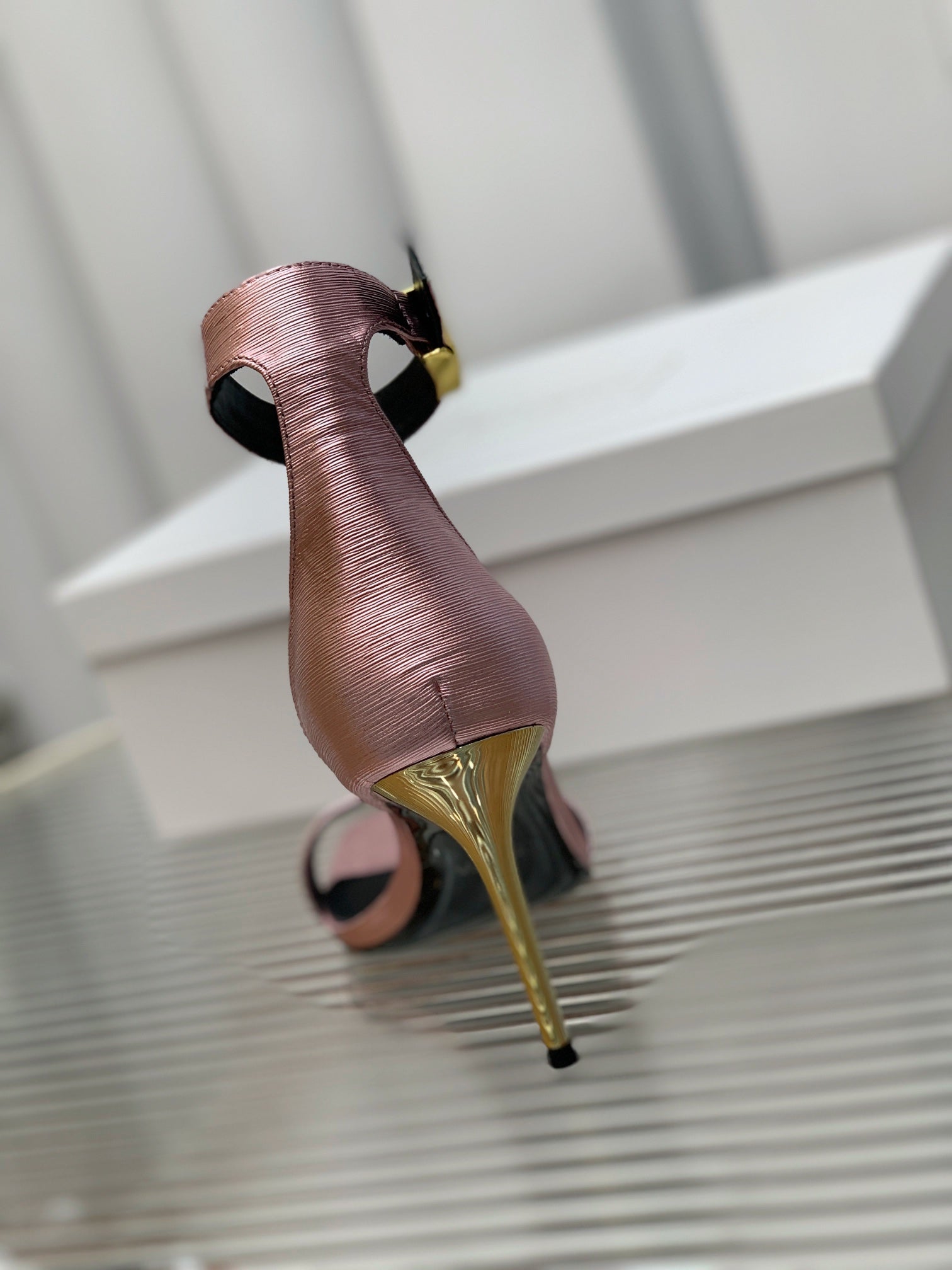 BALMAIN 25S METAL BUCKLE HIGH HEELS 95MM IN IRIDESCENT PURPLE CALFSKIN