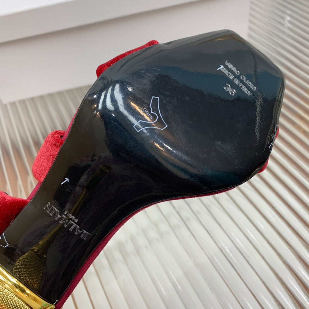BALMAIN 25S MONETA HEELED SANDALS 95MM IN DARK CRIMSON VELVET