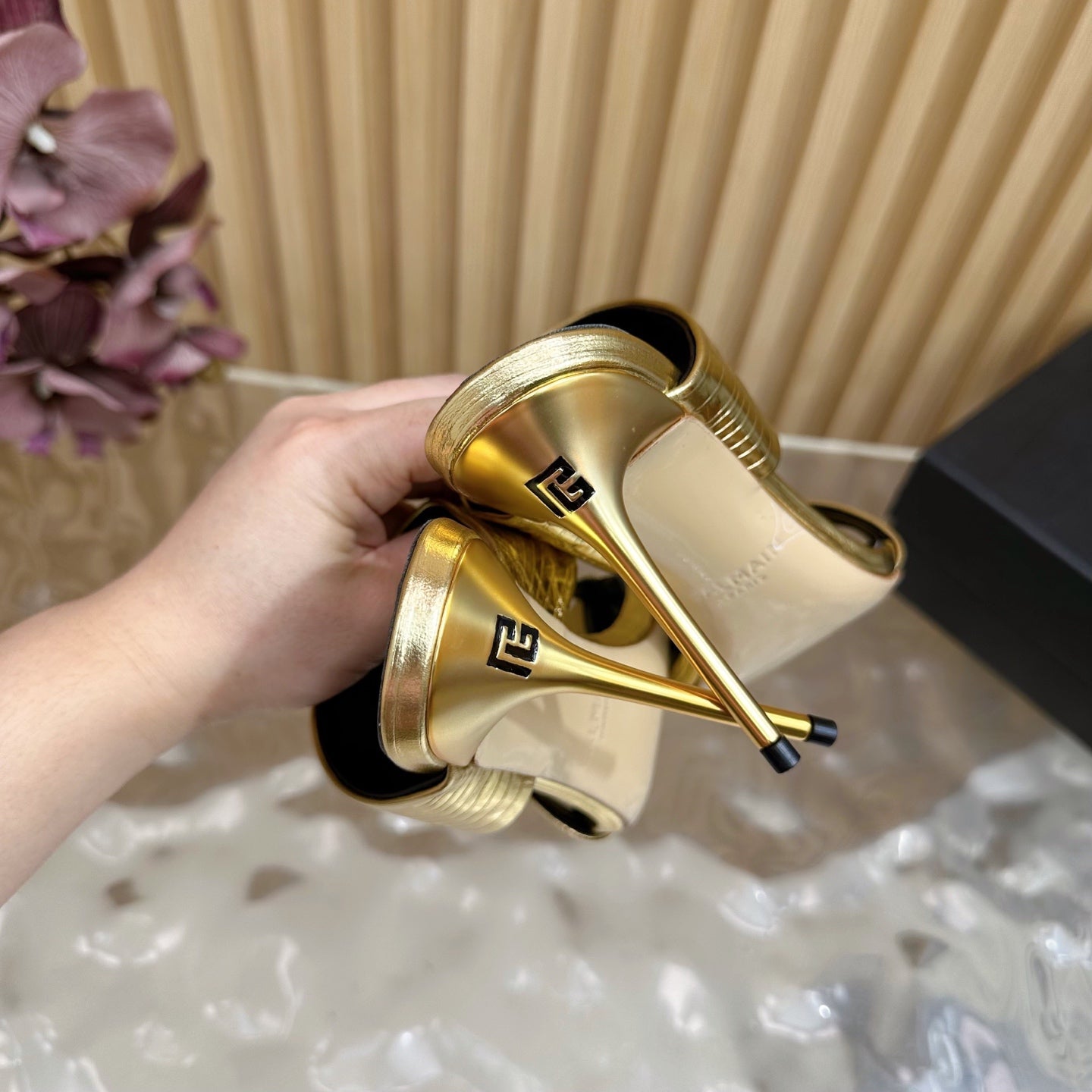 BALMAIN 25S MULES IN STRIPED LEATHER 95MM IN GOLD CALFSKIN