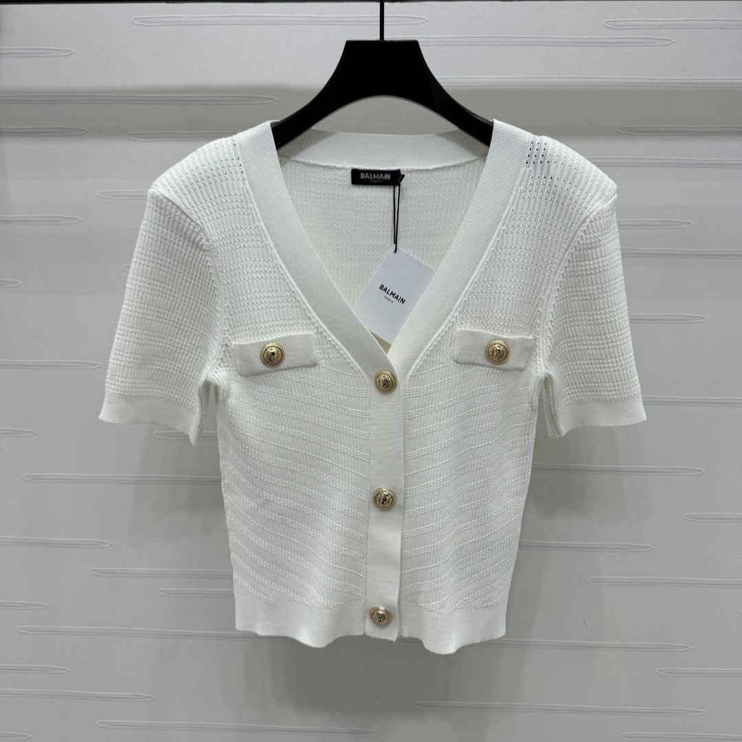 BALMAIN 25S V-NECK SHORT SLEEVE CARDIGAN 264245