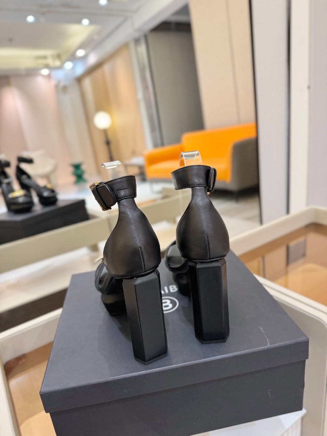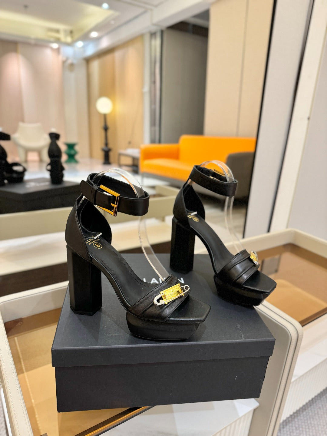 BALMAIN 25S WEDGE HEELS 100MM IN BLACK CALFSKIN