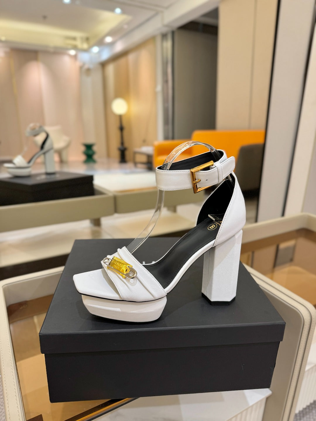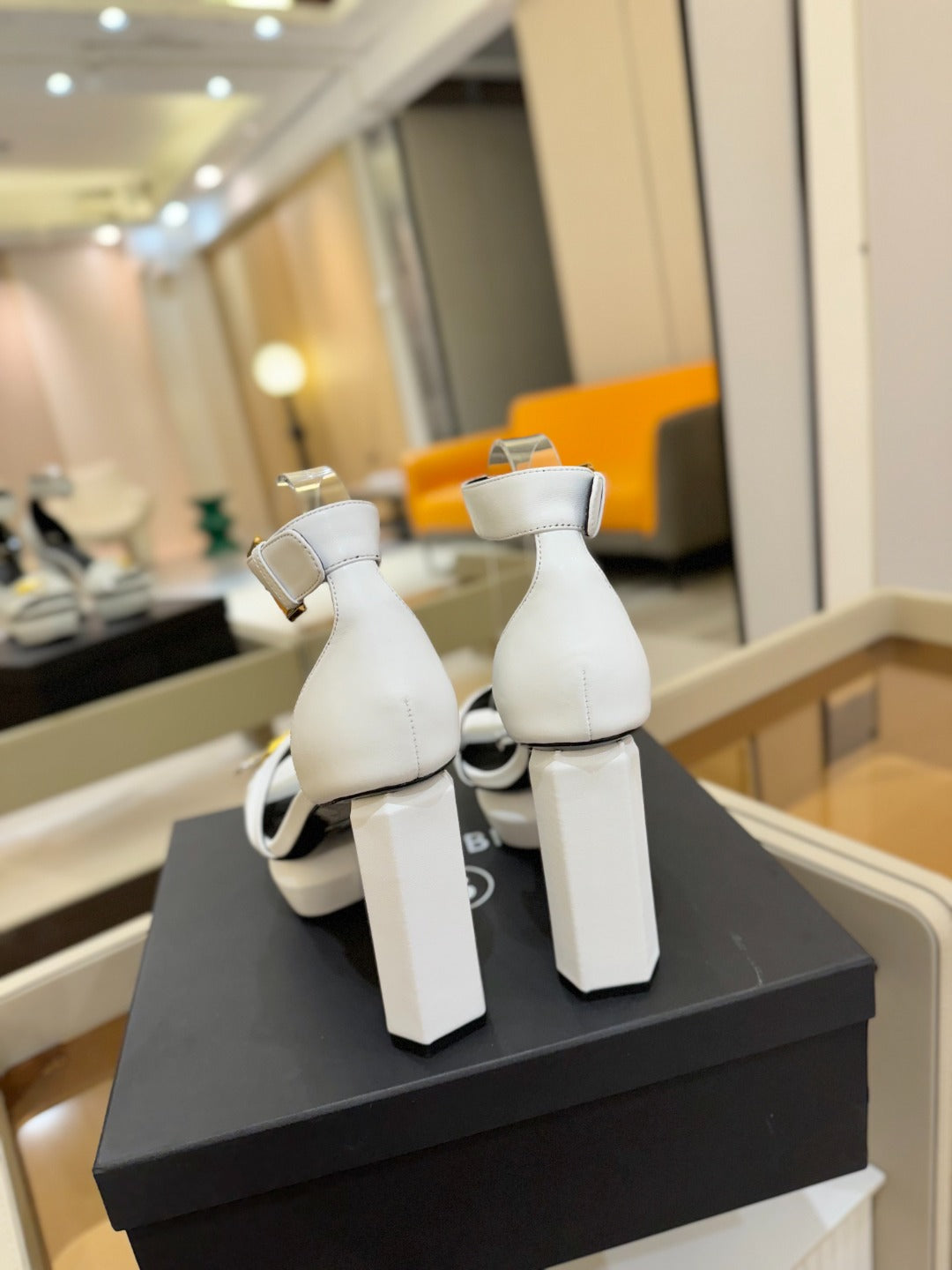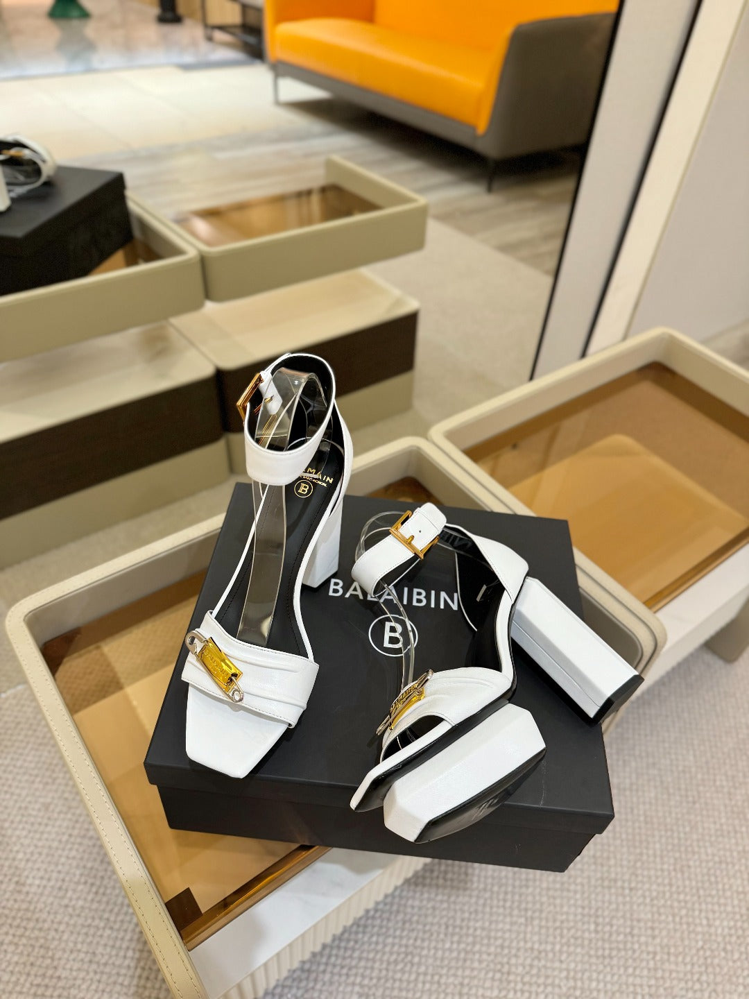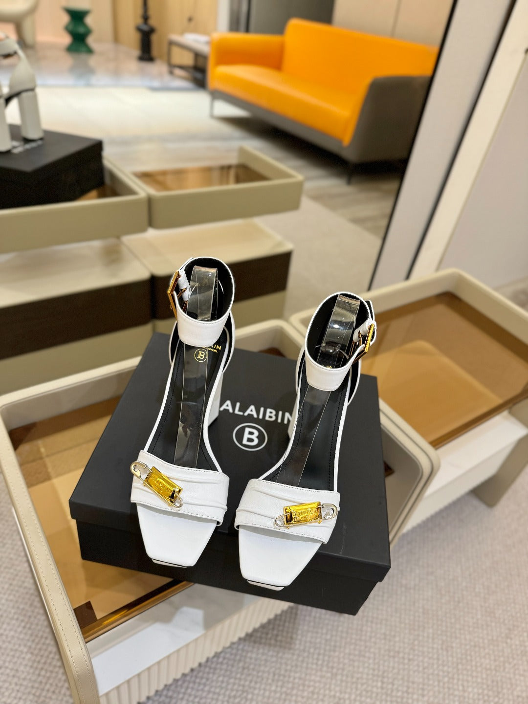 BALMAIN 25S WEDGE HEELS 100MM IN WHITE CALFSKIN