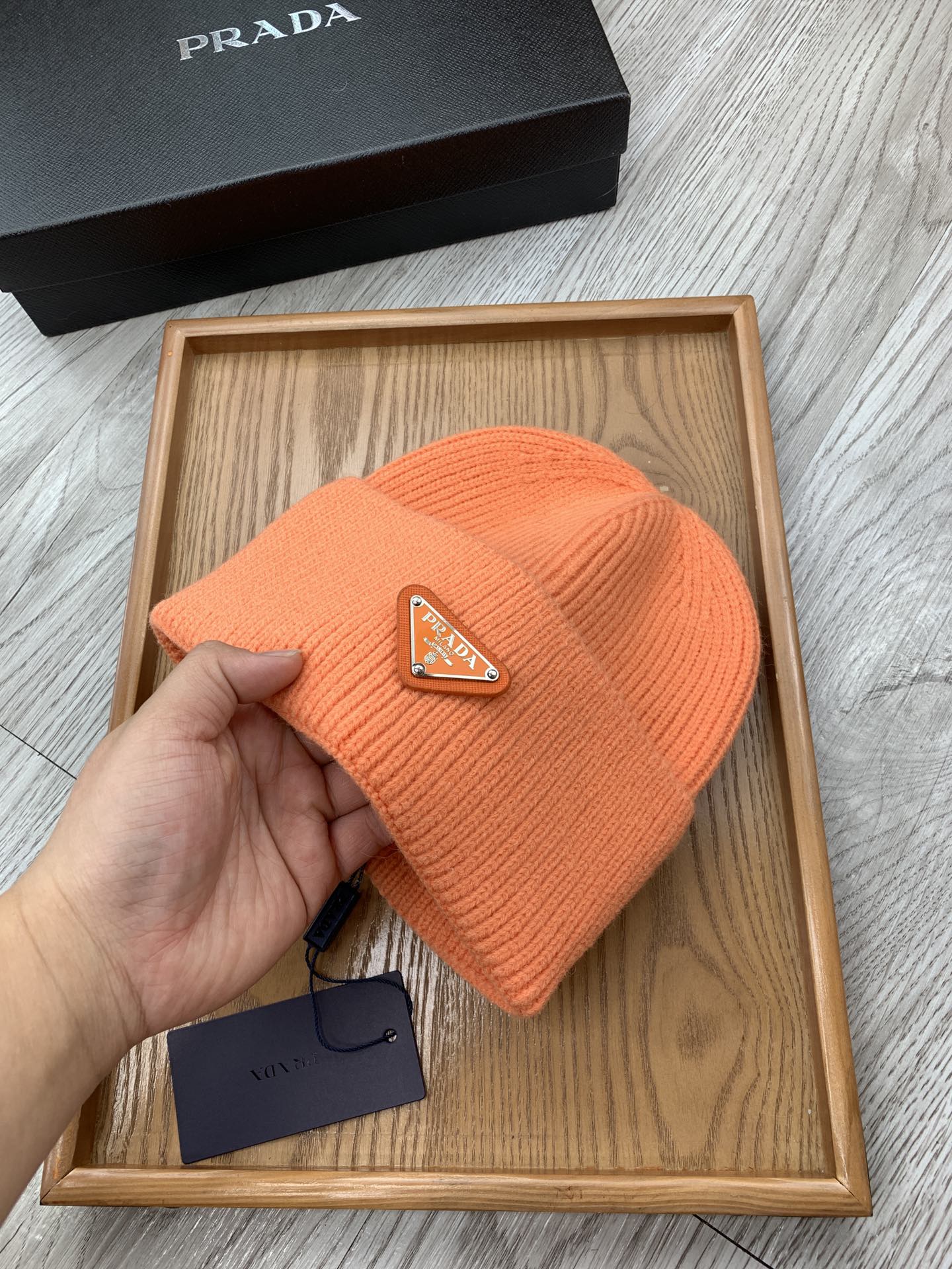 BEANIIE HAT IN CARROT ORANGE WOOL 335036