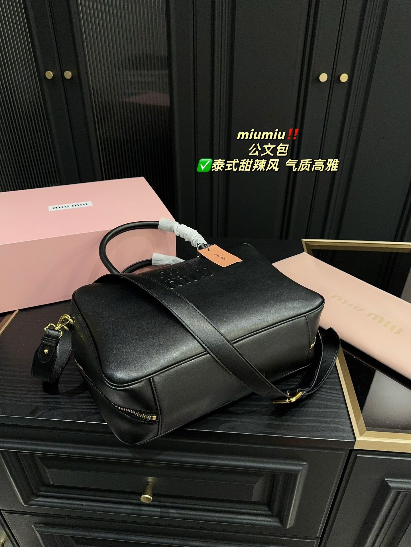 BEAU BAG 34 IN BLACK CALFSKIN
