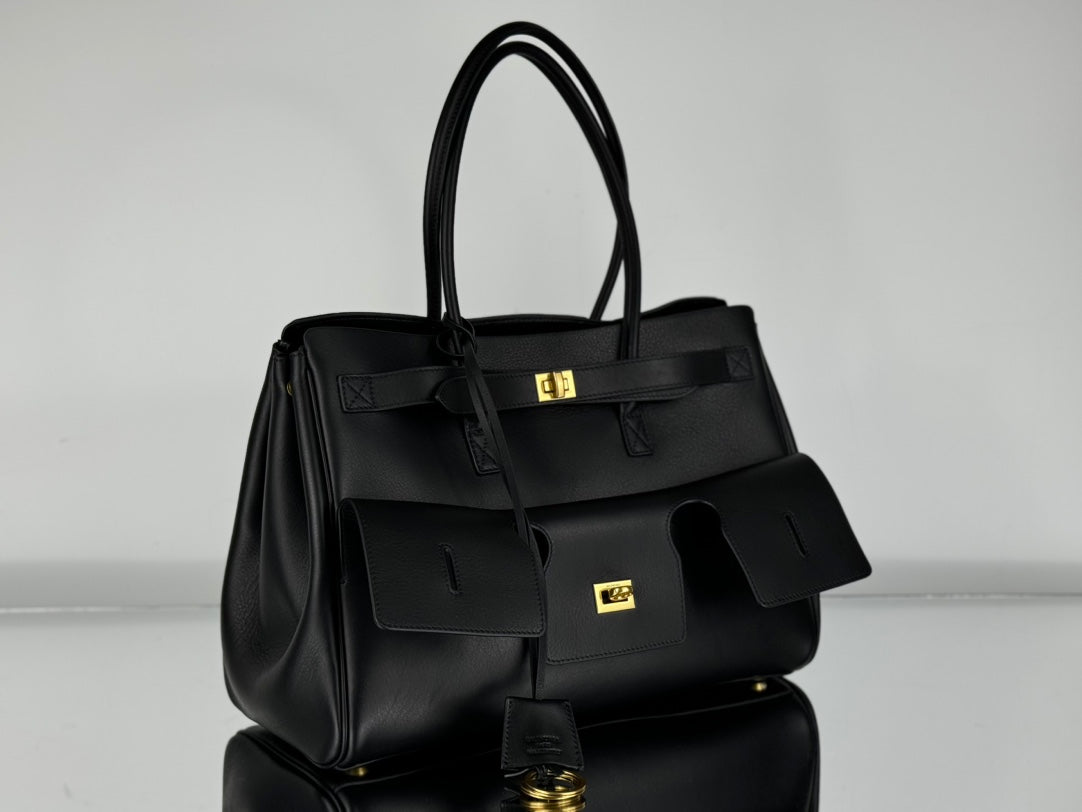 BEL AIR CARRY ALL BAG 29 IN BLACK NAPPA LAMBSKIN GOLD HARDWARE