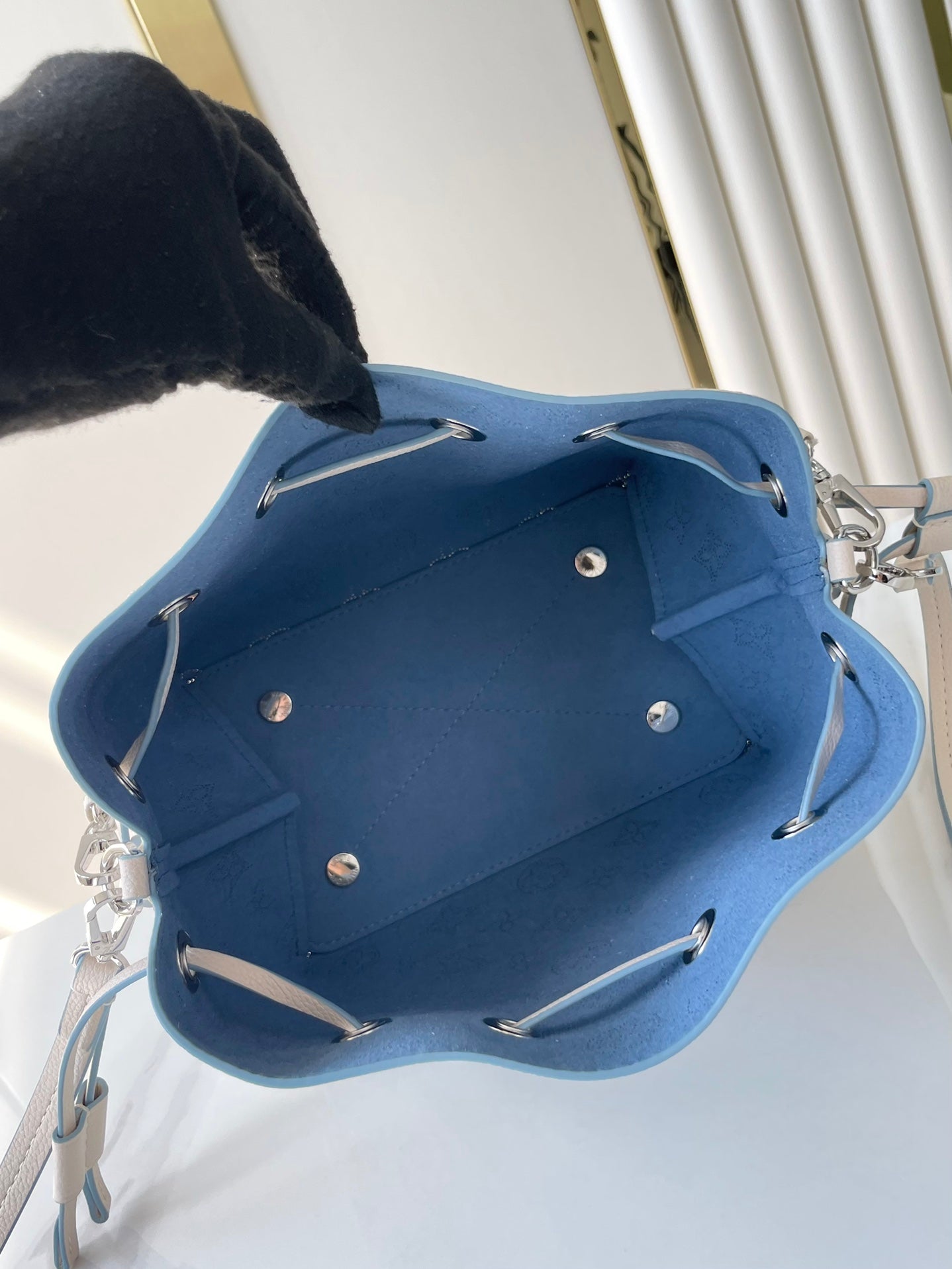 BELLA 22 IN WHITE PERFORATED CALFSKIN SILVER HARDWARE