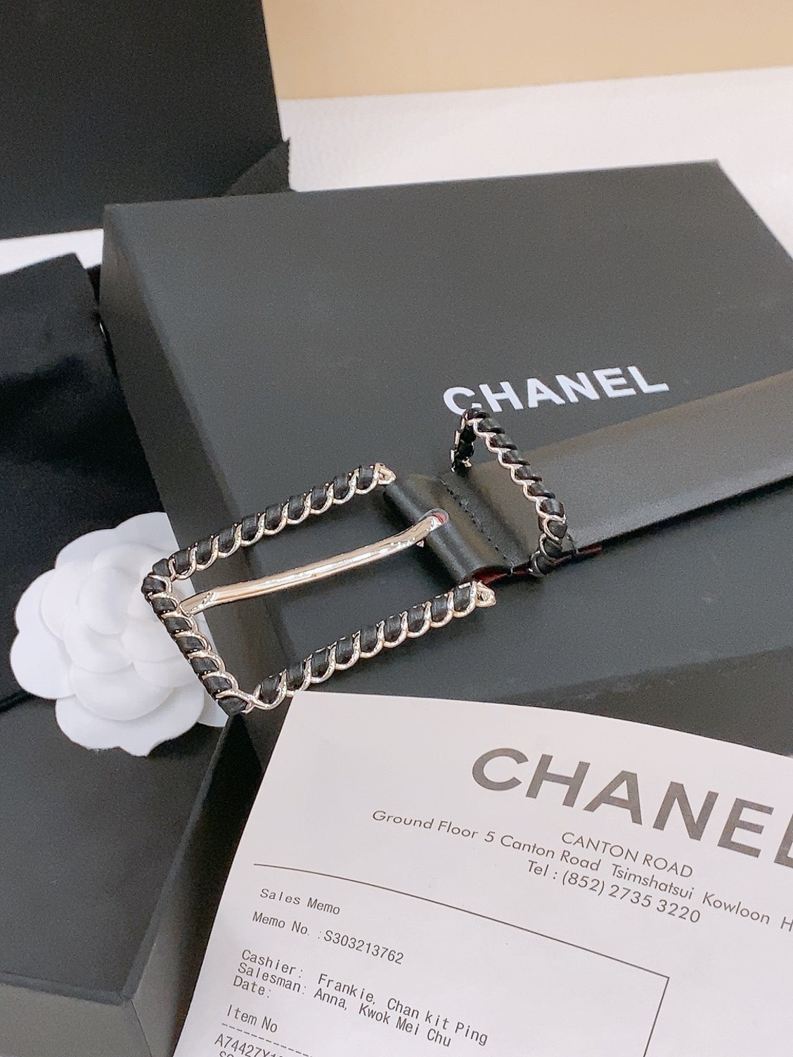 BELT 30MM IN BLACK AND RED CALFSKIN WITH INTERWOVEN SILVER CHAIN BUCKLE