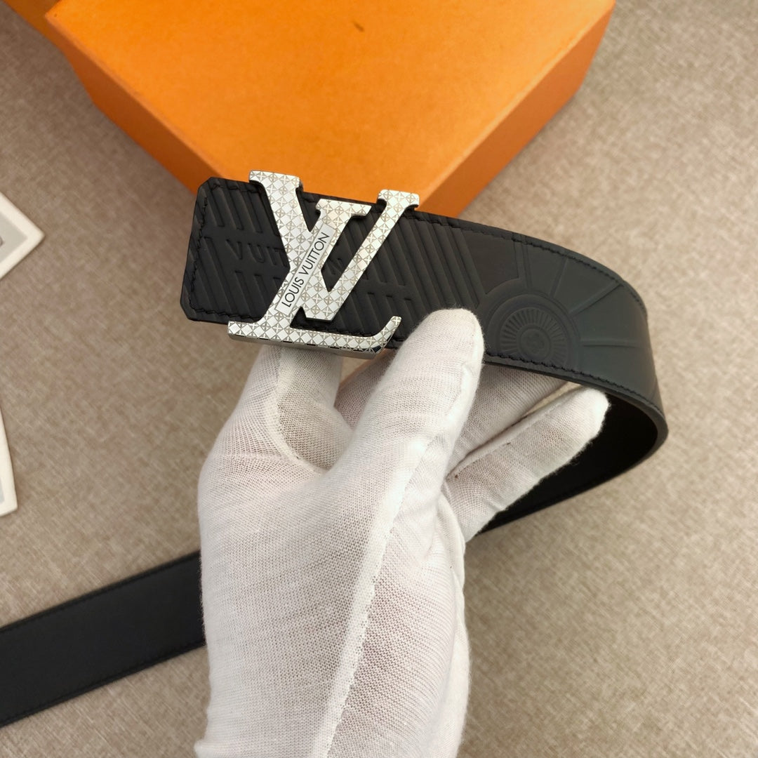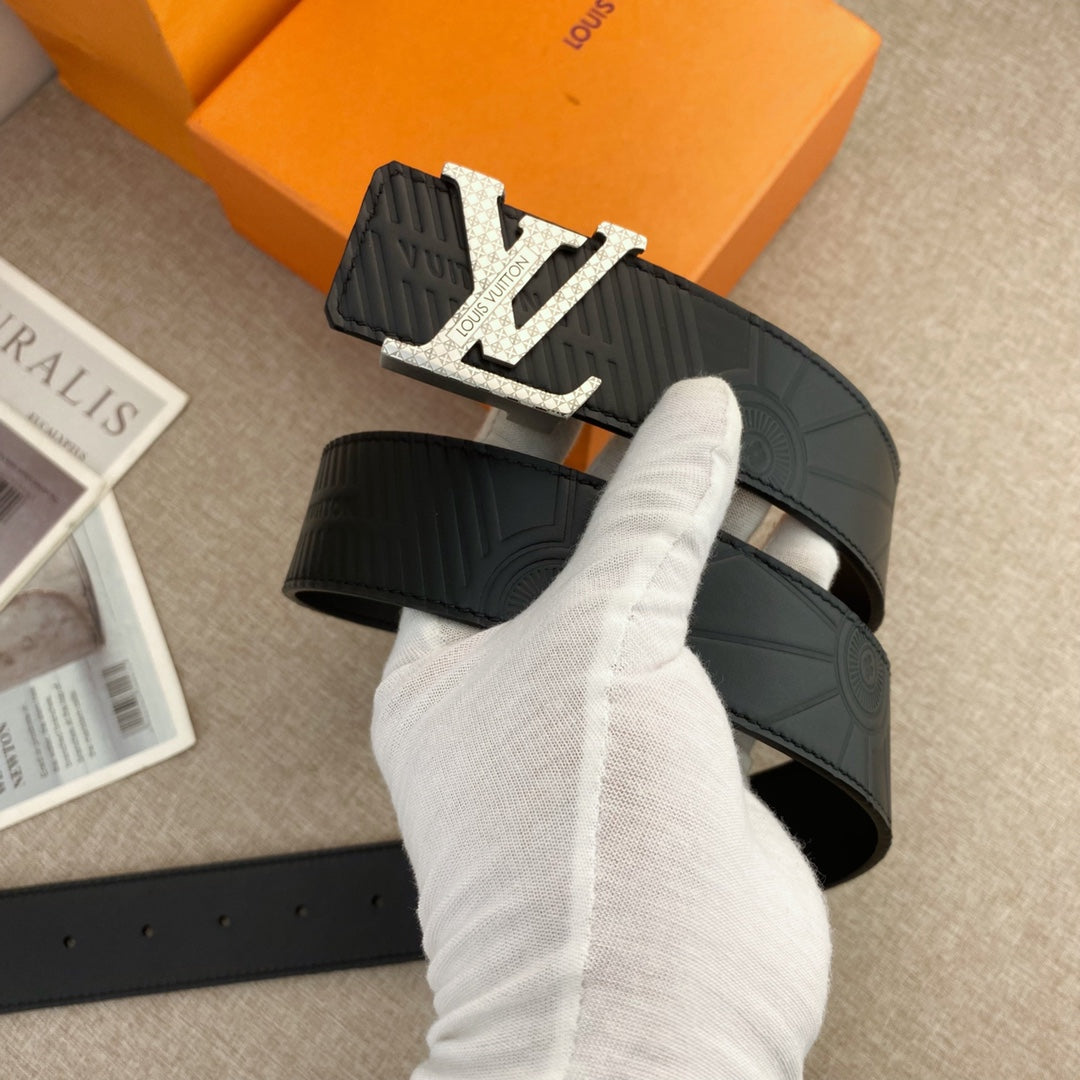 BELT 38MM IN BLACK SPECIAL TEXTURED LEATHER WITH SILVER STAINLESS STEEL BUCKLE