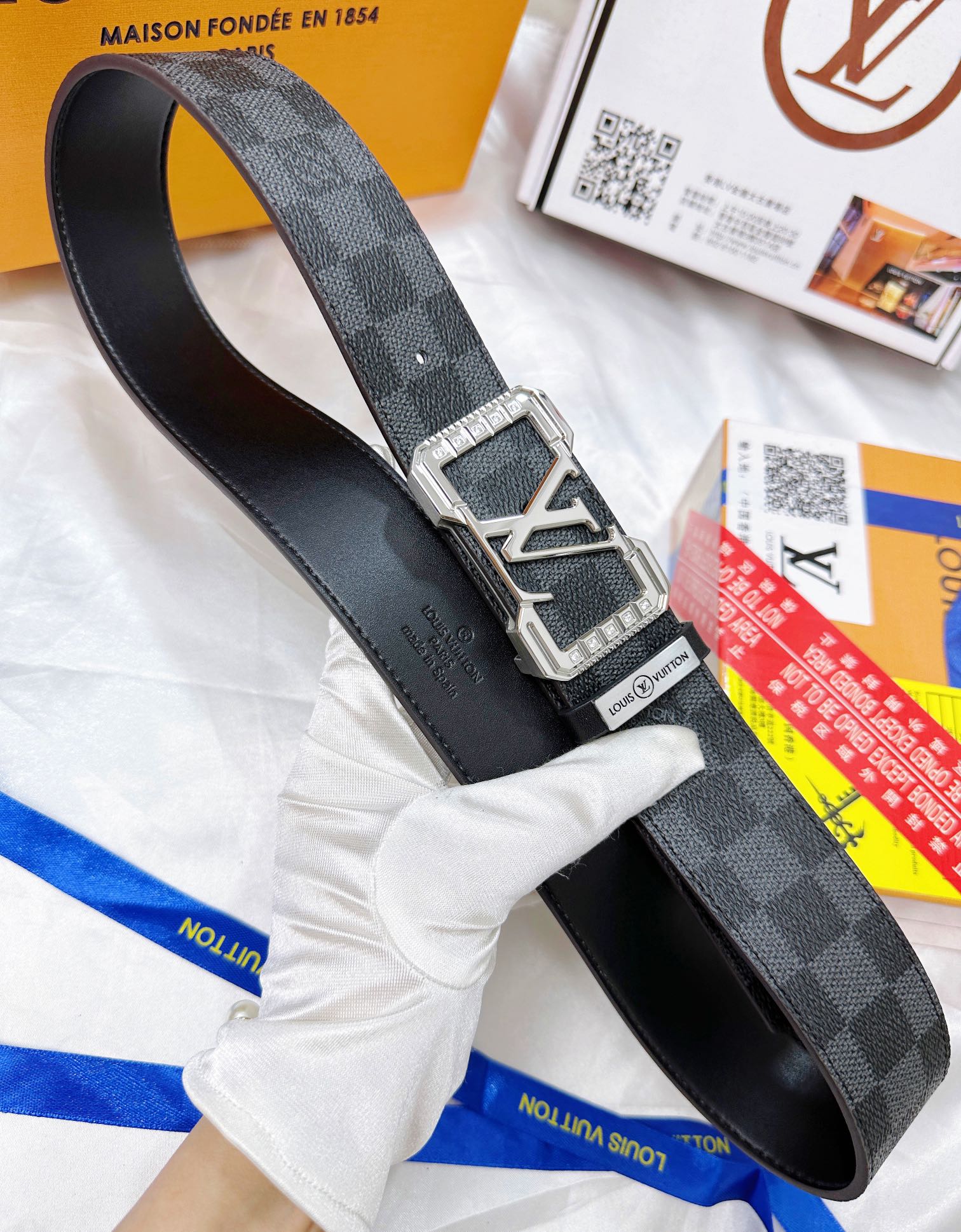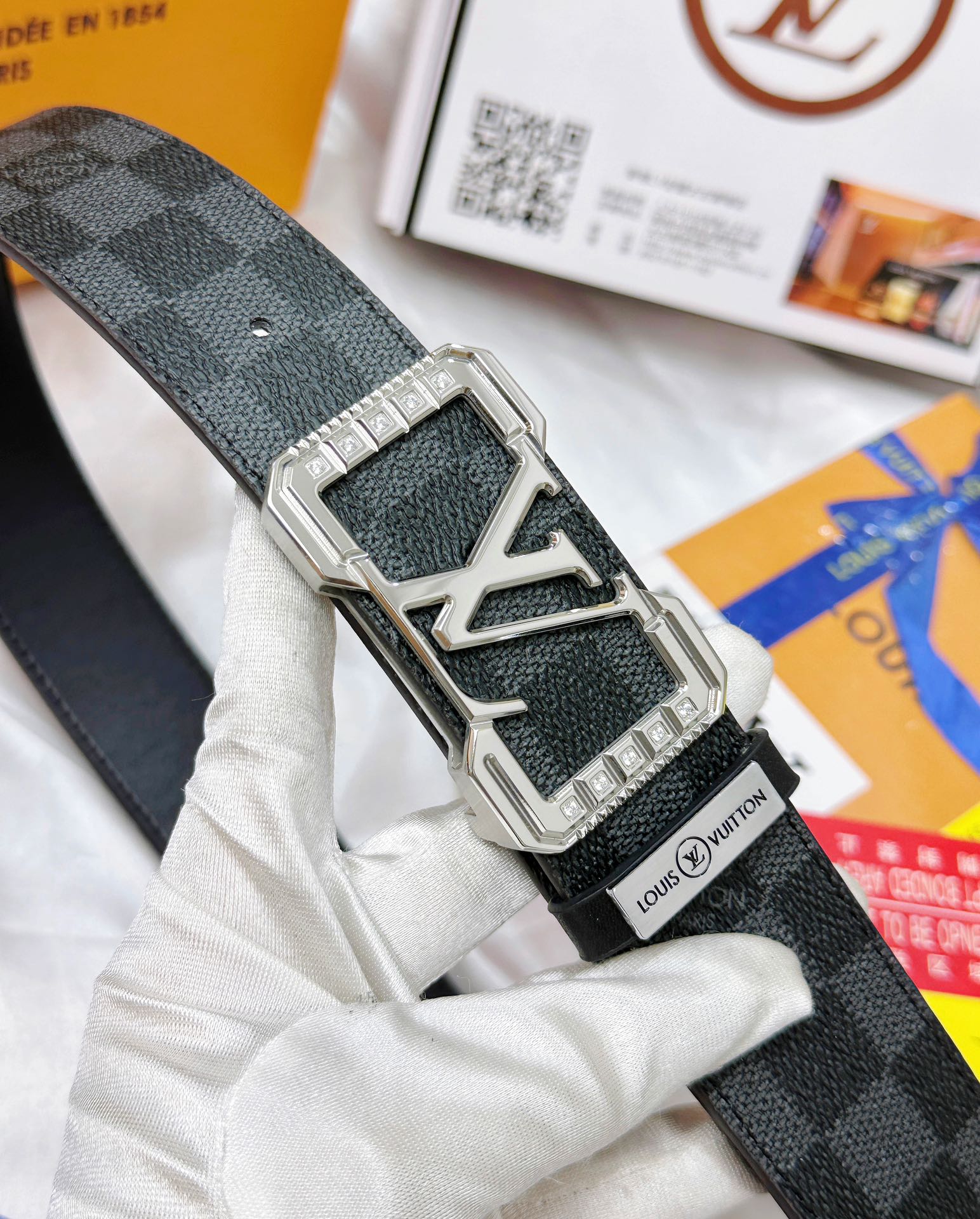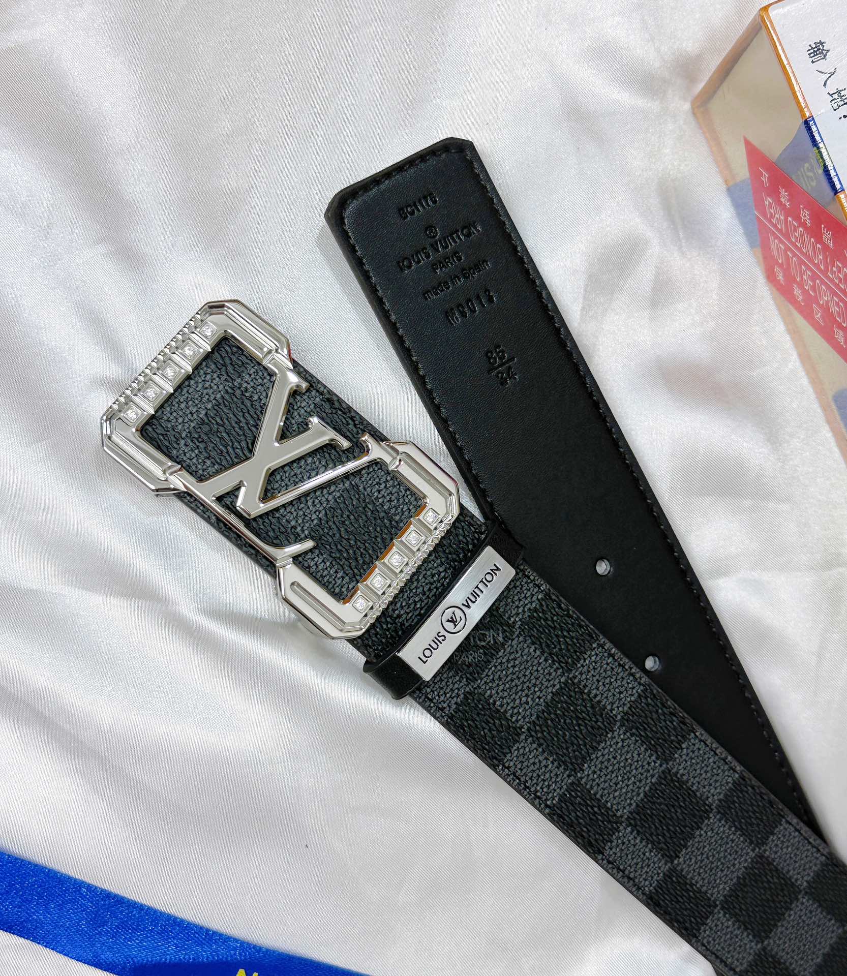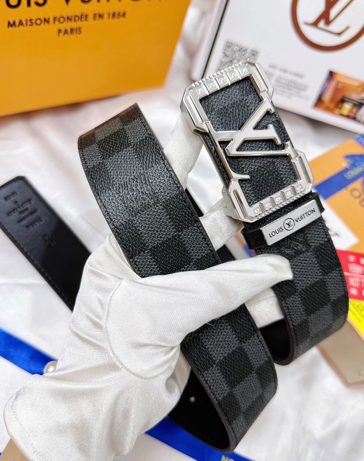 BELT 38MM REVERSIBLE IN BLACK AND GREY CHECKERED PATTERN WITH SILVER PAVE BUCKLE