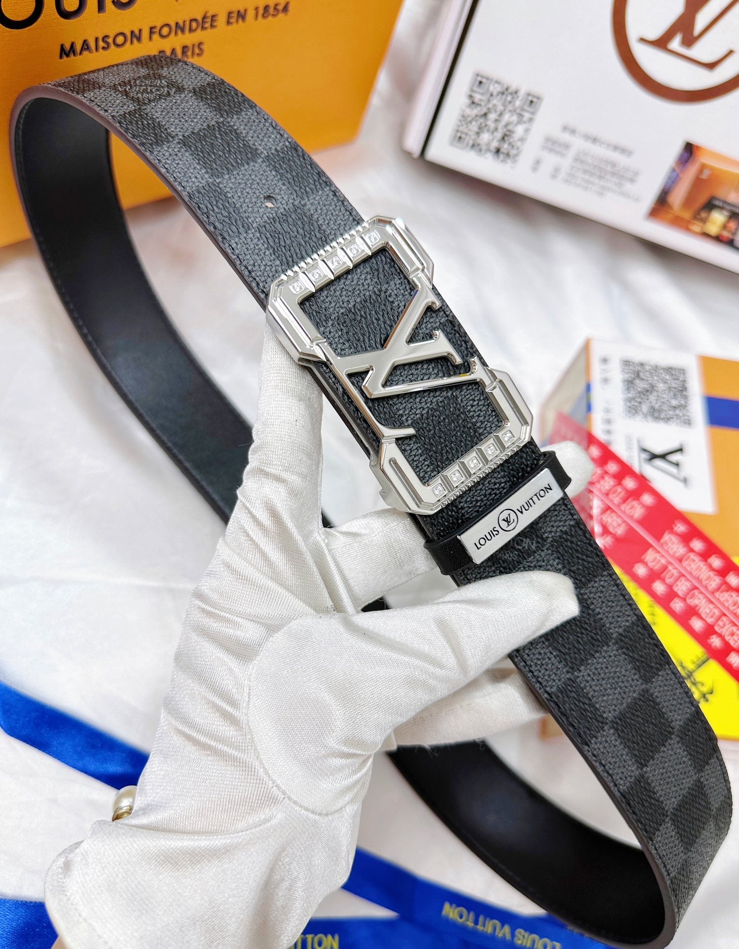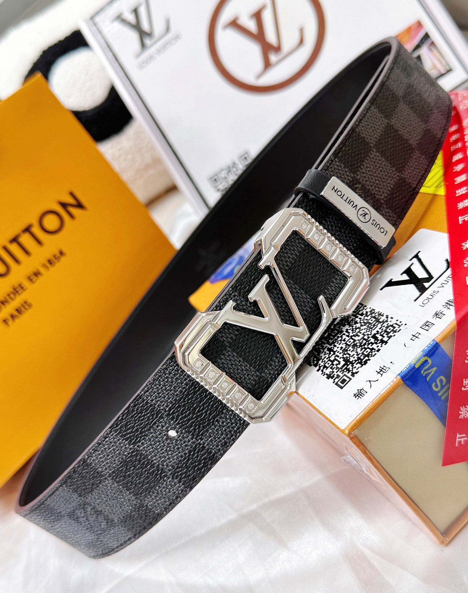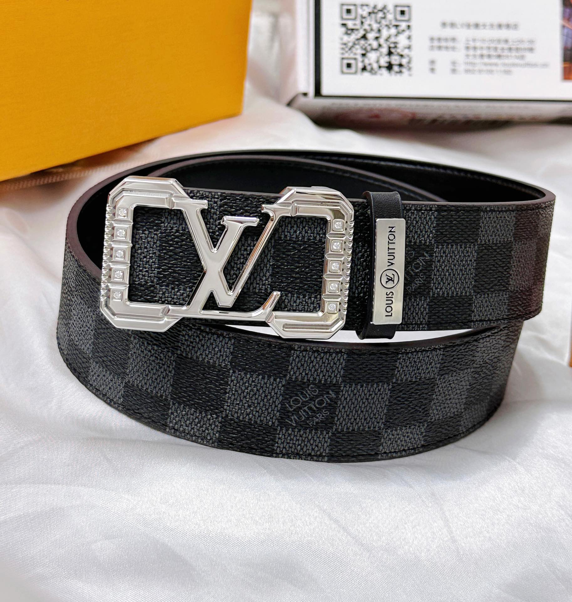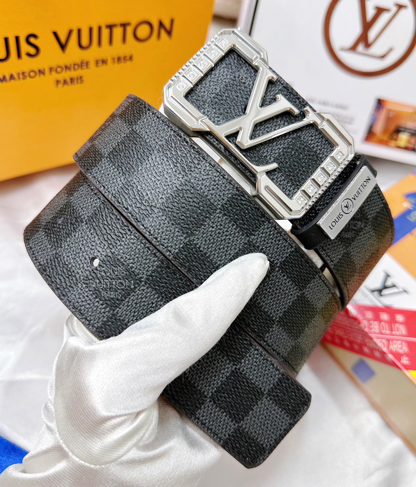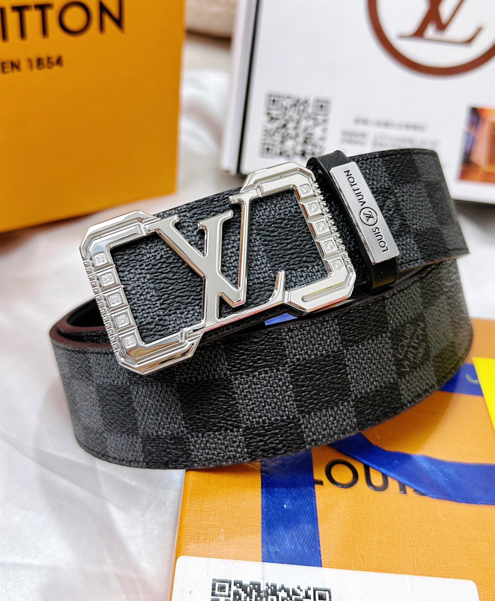 BELT 38MM REVERSIBLE IN BLACK AND GREY CHECKERED PATTERN WITH SILVER PAVE BUCKLE