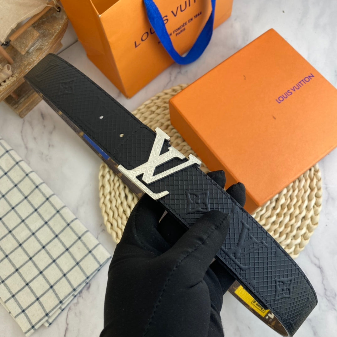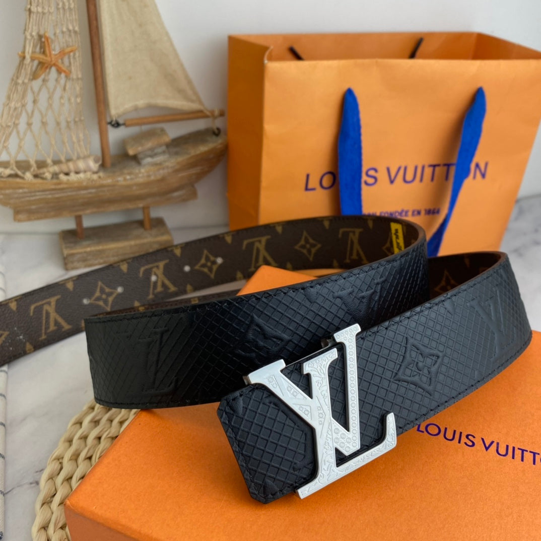 BELT 38MM REVERSIBLE IN BLACK BROWN MULTICOLOR MONOGRAM CALFSKIN WITH SILVER BUCKLE
