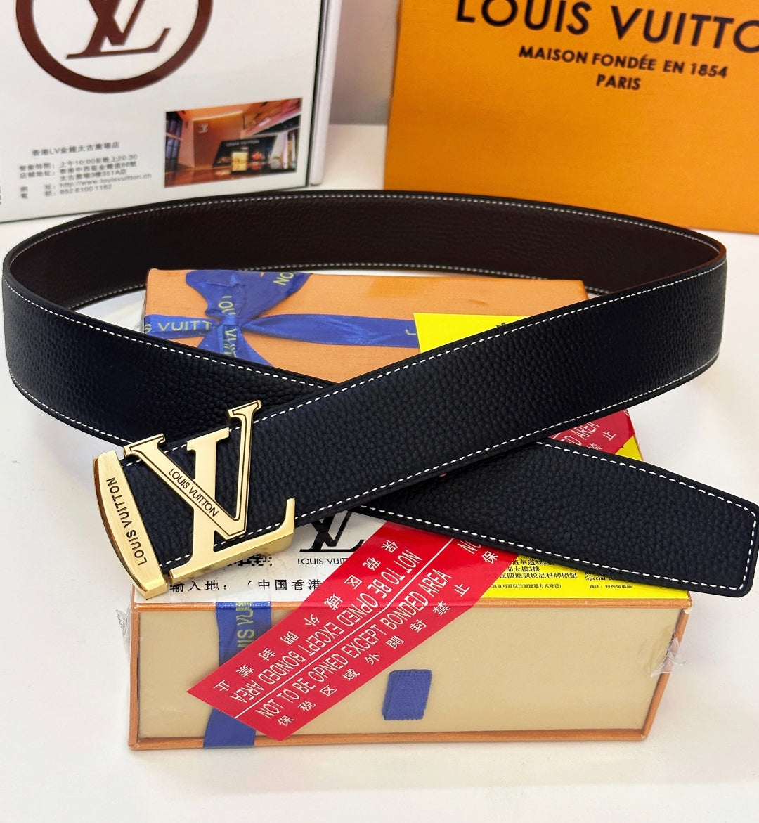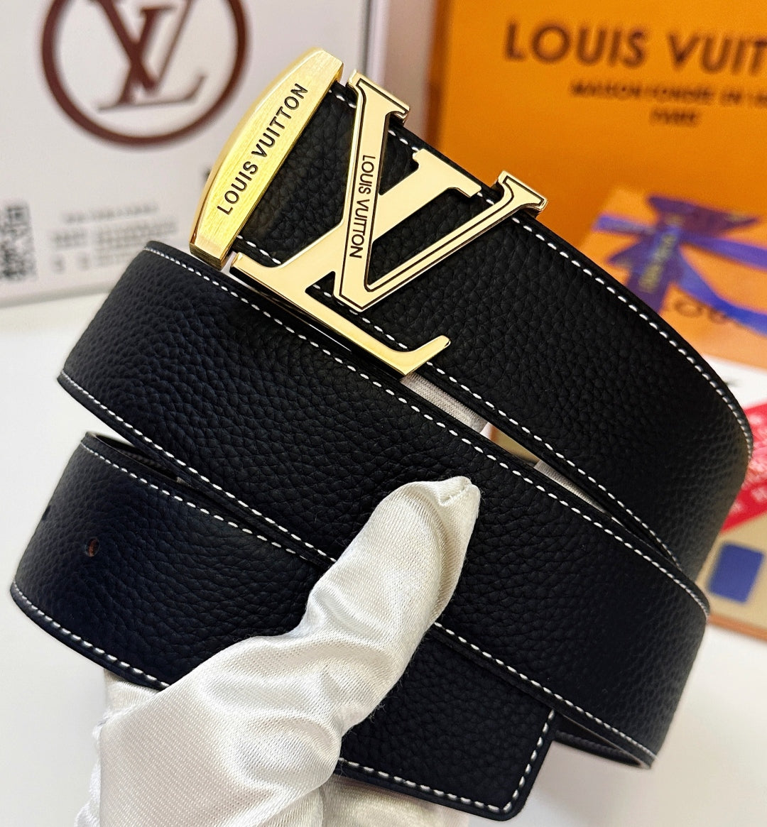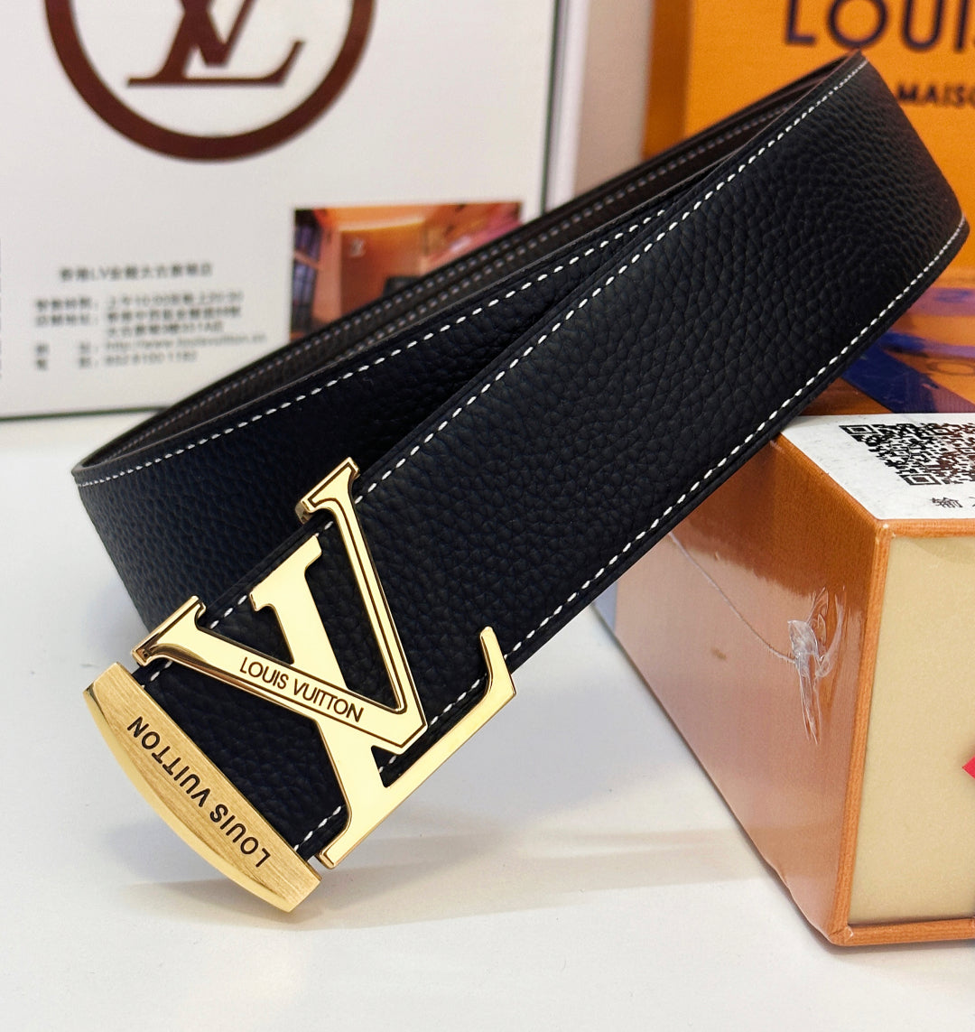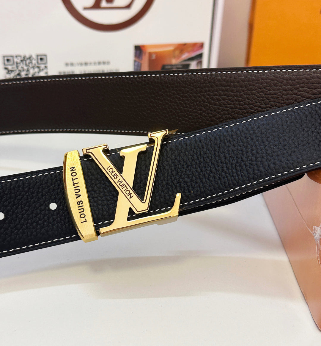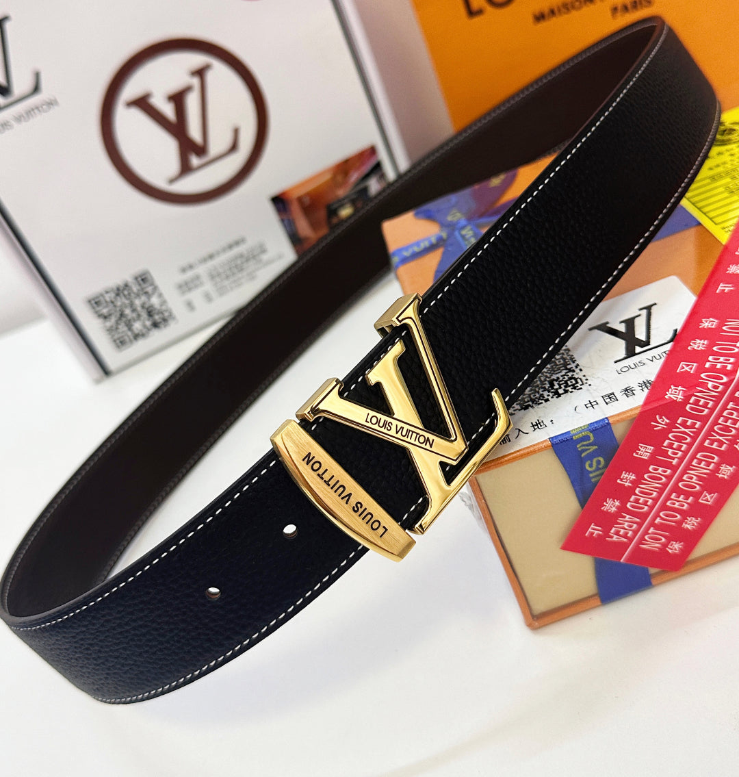 BELT 40MM REVERSIBLE IN BLACK CALFSKIN WITH HIDDEN GOLD BUCKLE DESIGN