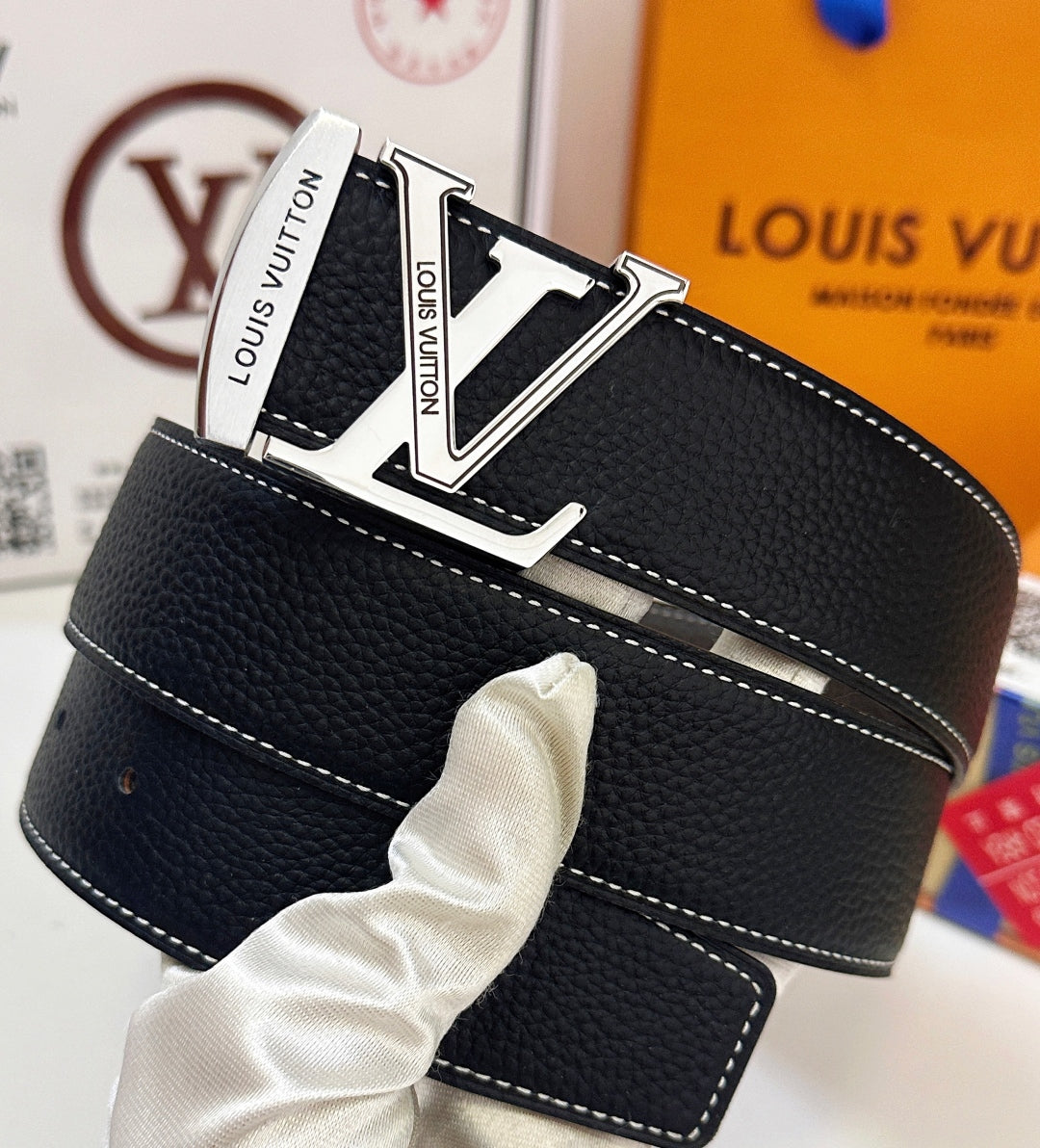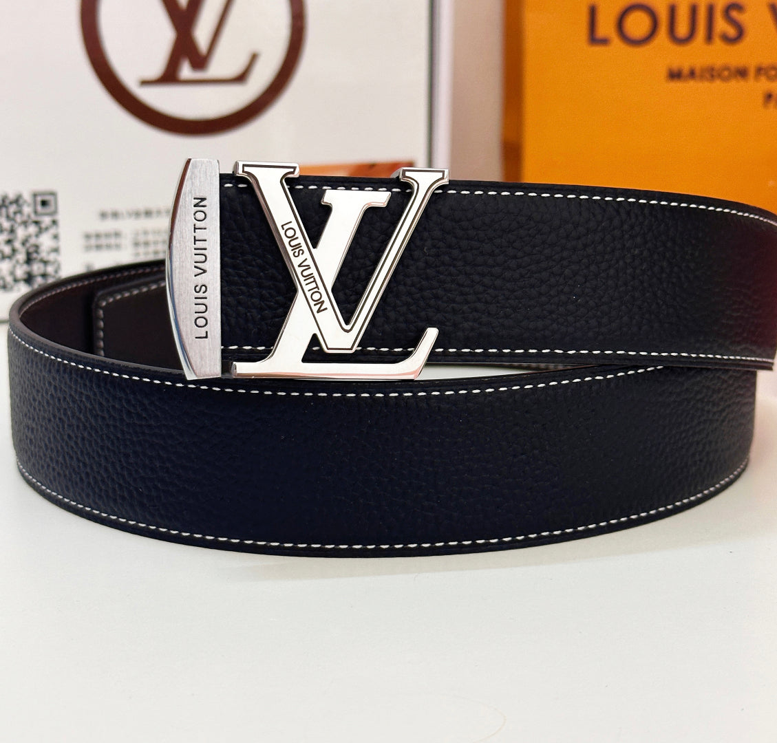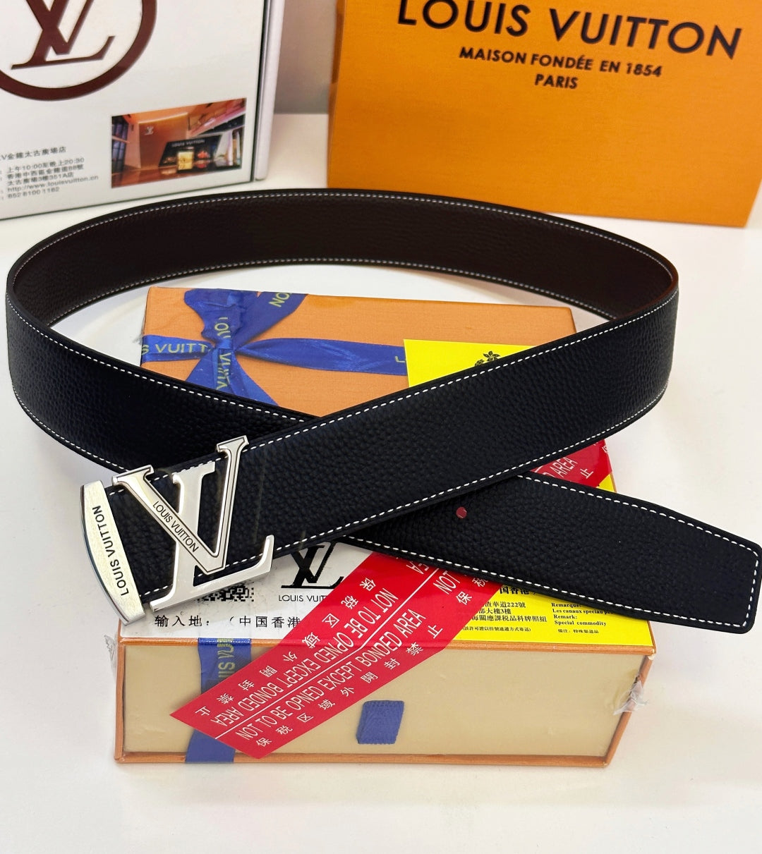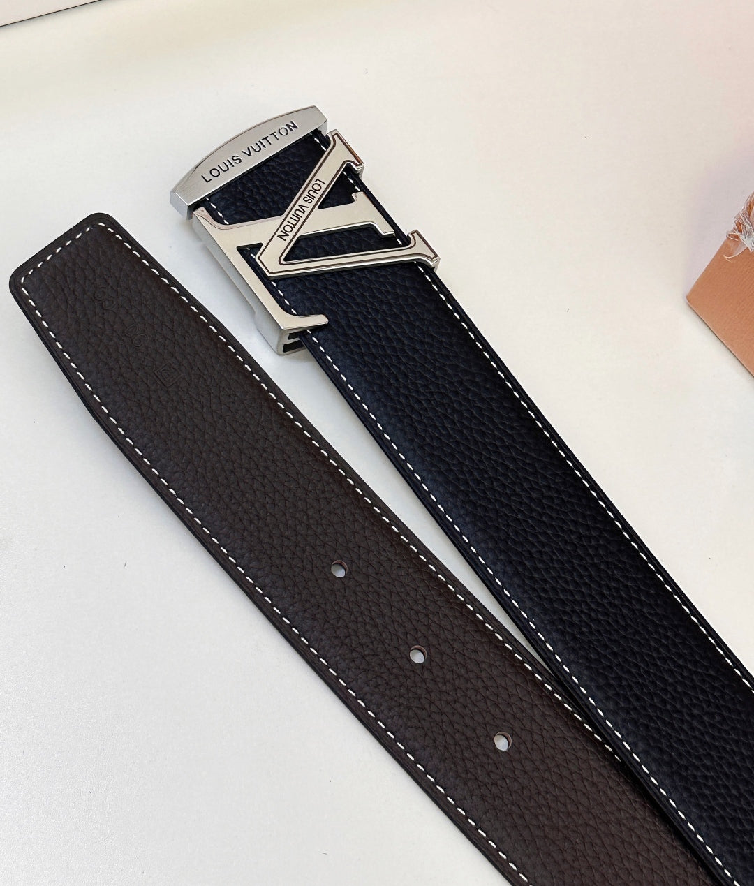 BELT 40MM REVERSIBLE IN BLACK CALFSKIN WITH HIDDEN SILVER BUCKLE DESIGN