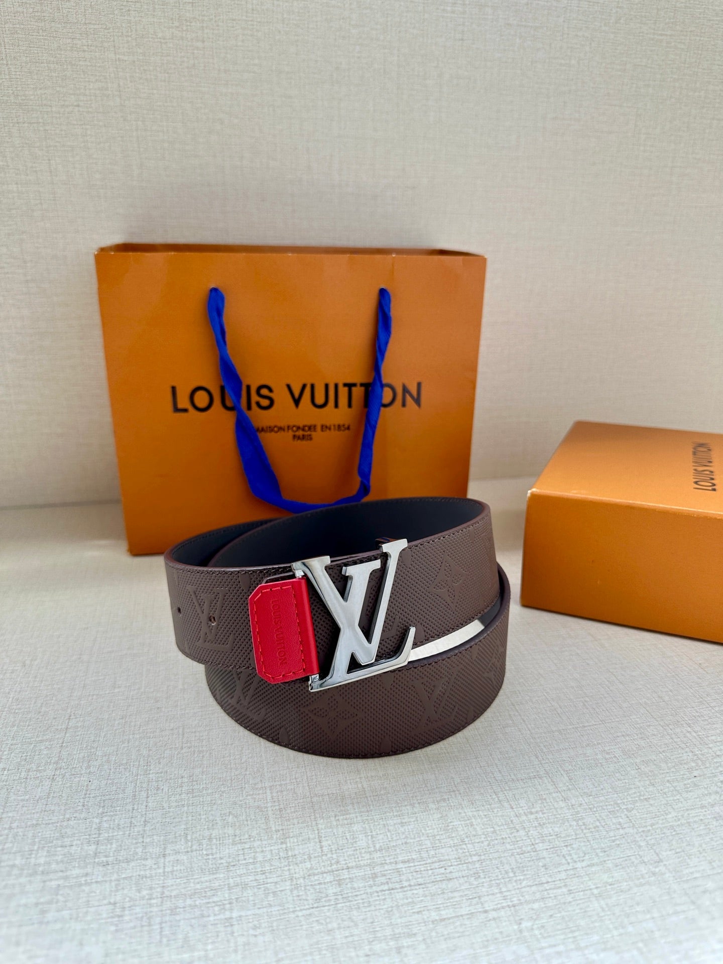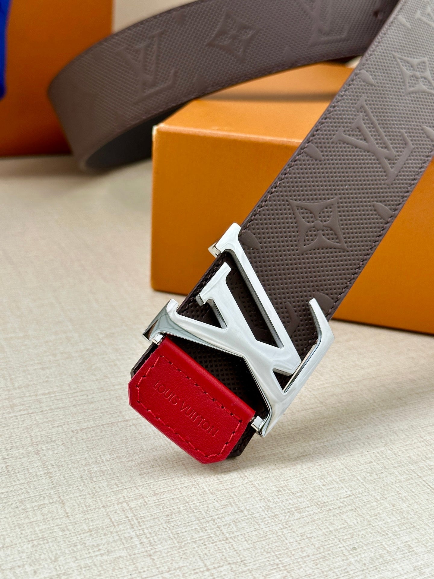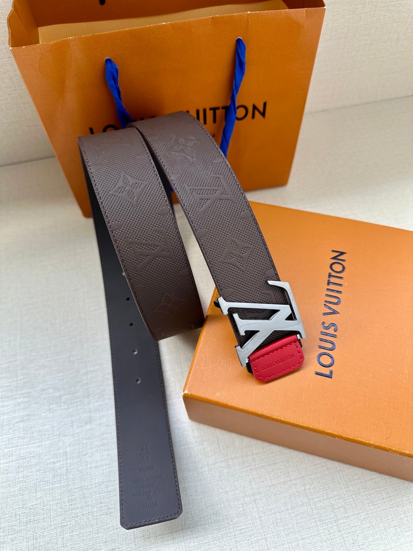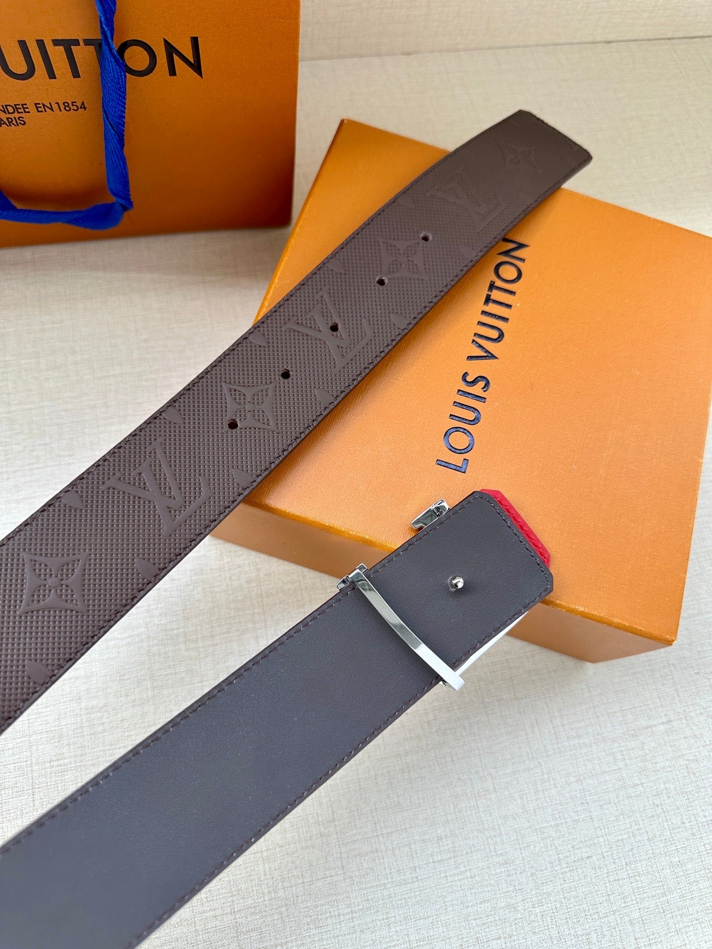 BELT 40MM REVERSIBLE IN BROWN BLACK RED MONOGRAM SHADOW CALFSKIN WITH SILVER LV BUCKLE