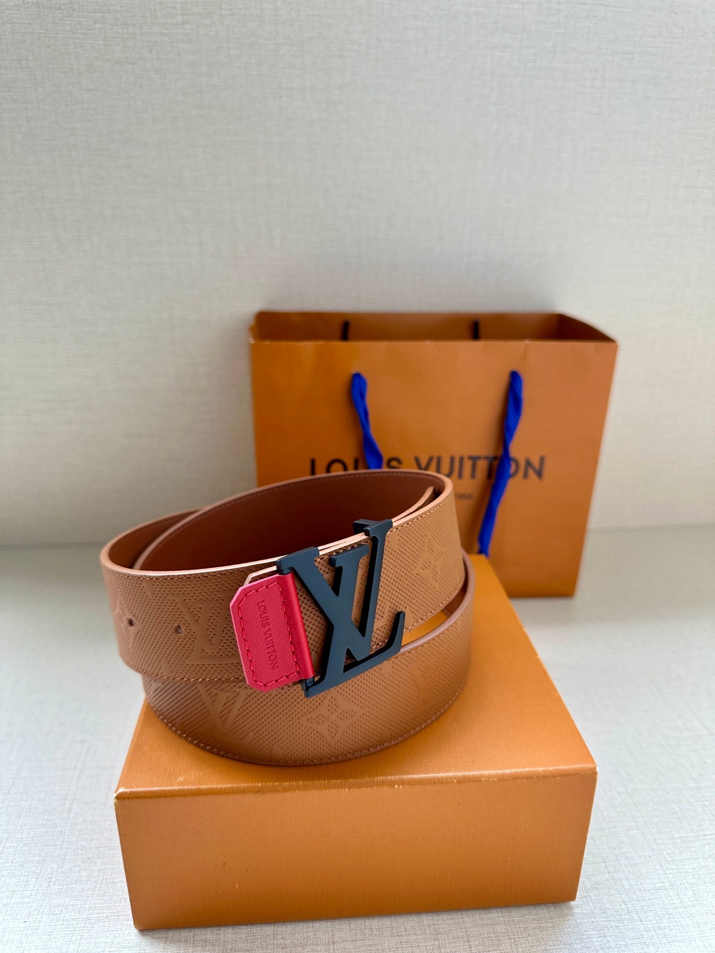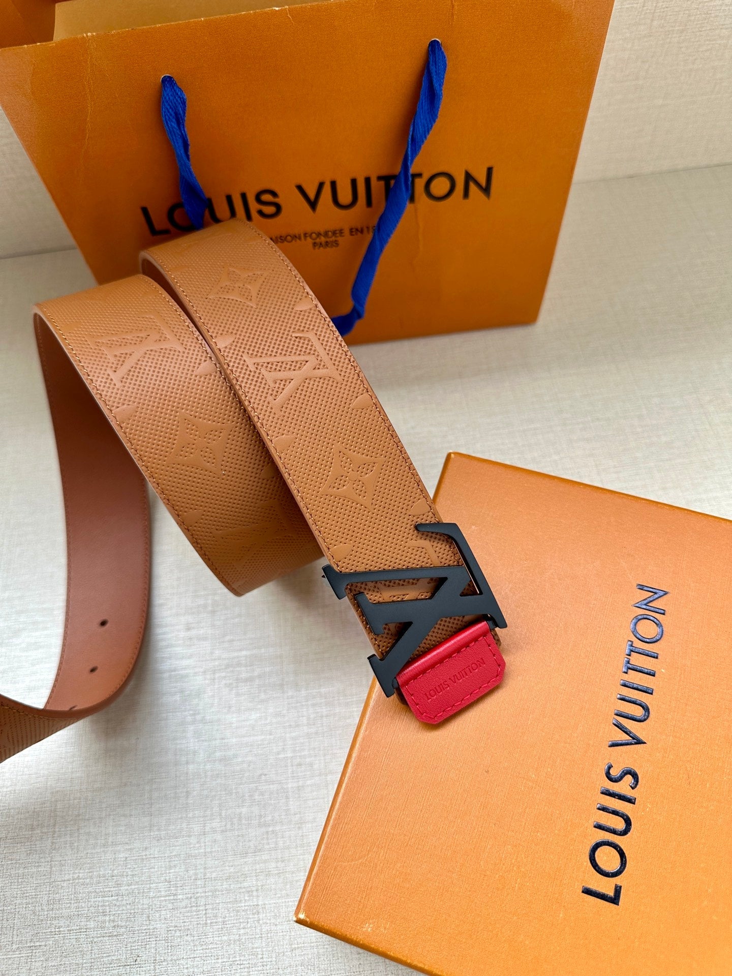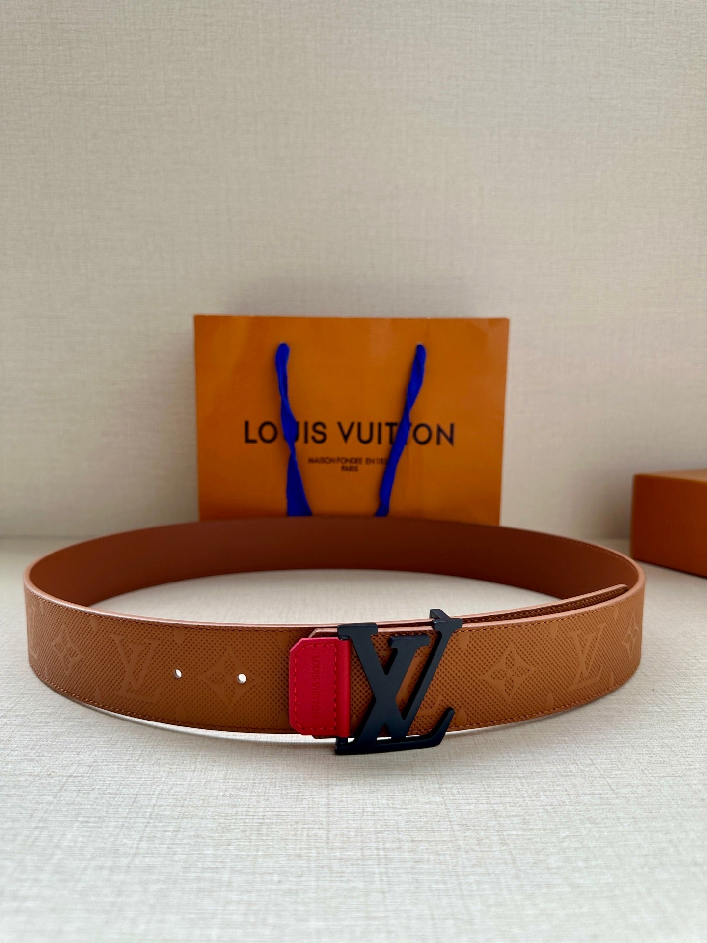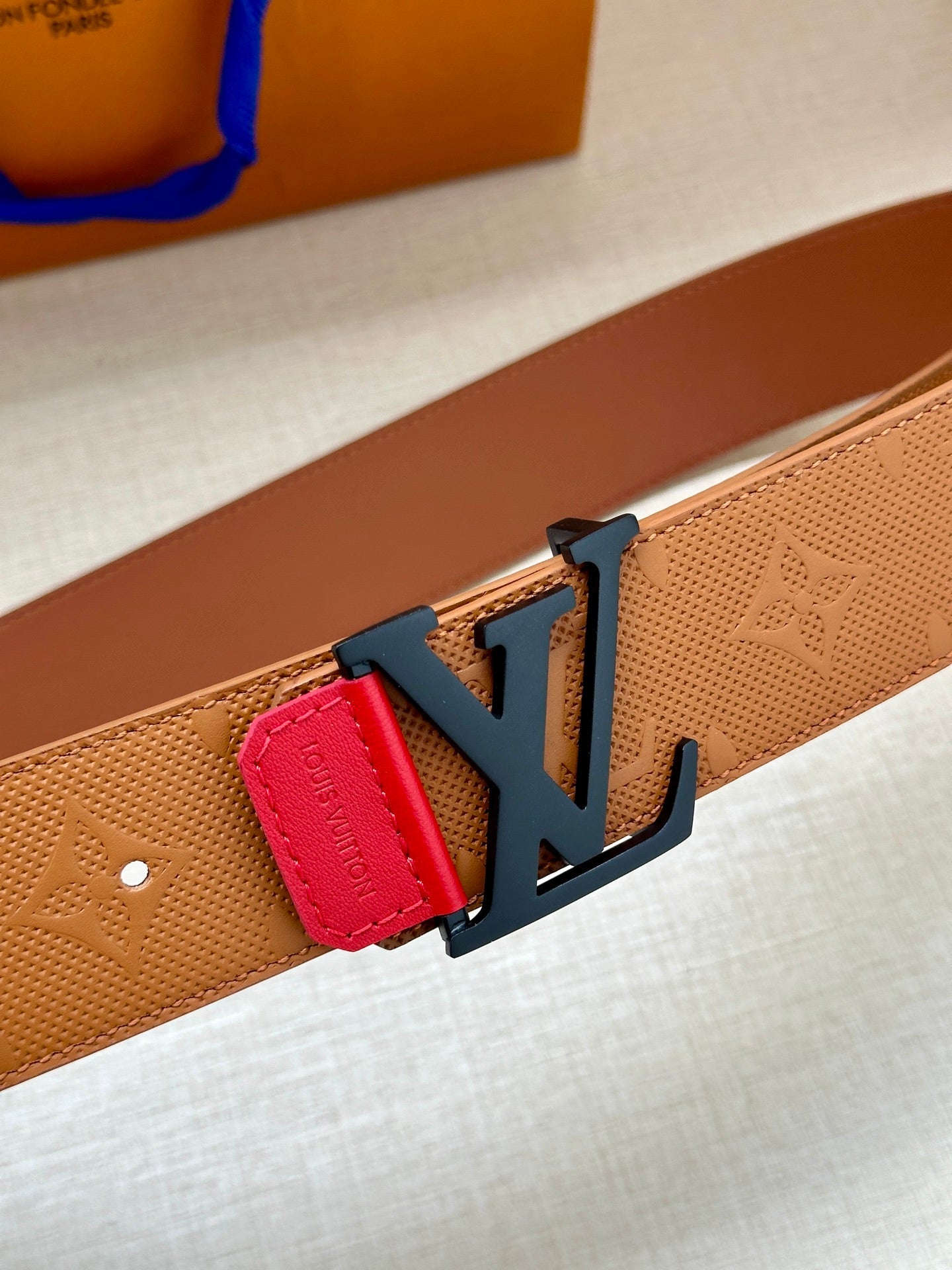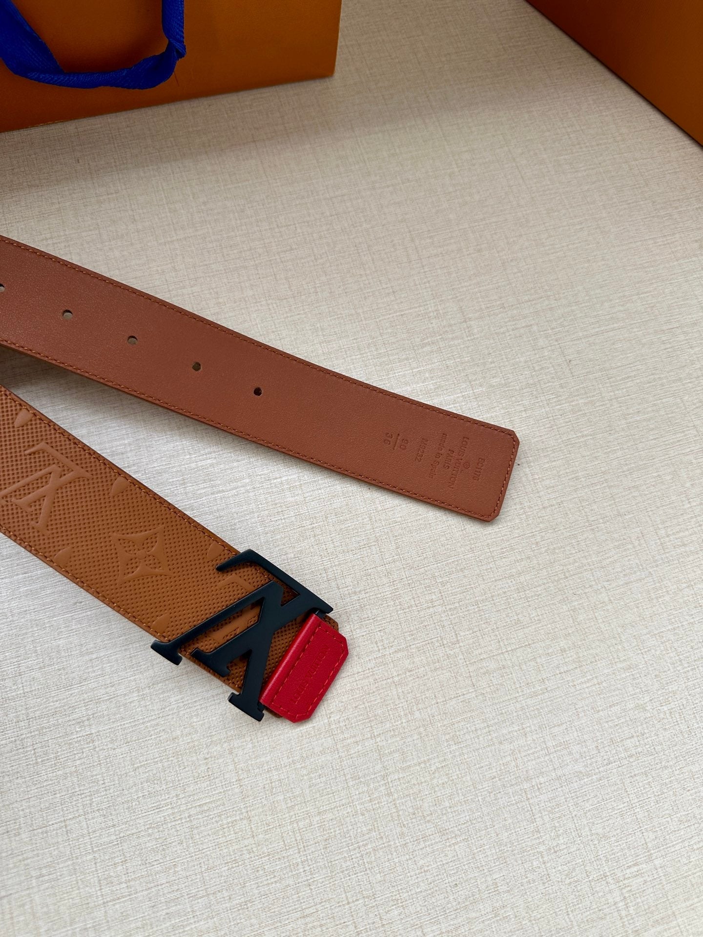 BELT 40MM REVERSIBLE IN BROWN RED MONOGRAM SHADOW CALFSKIN WITH BLACK BUCKLE