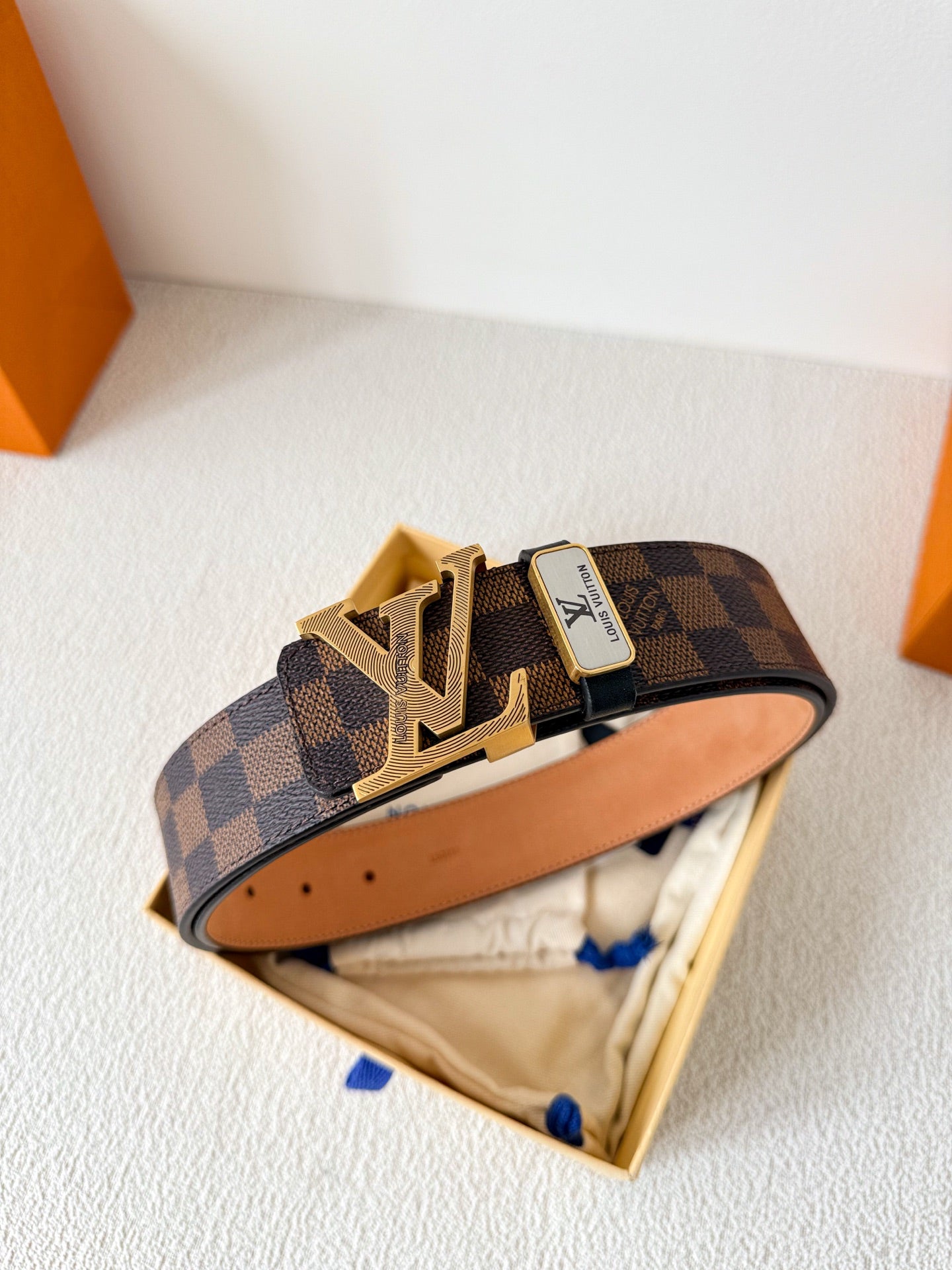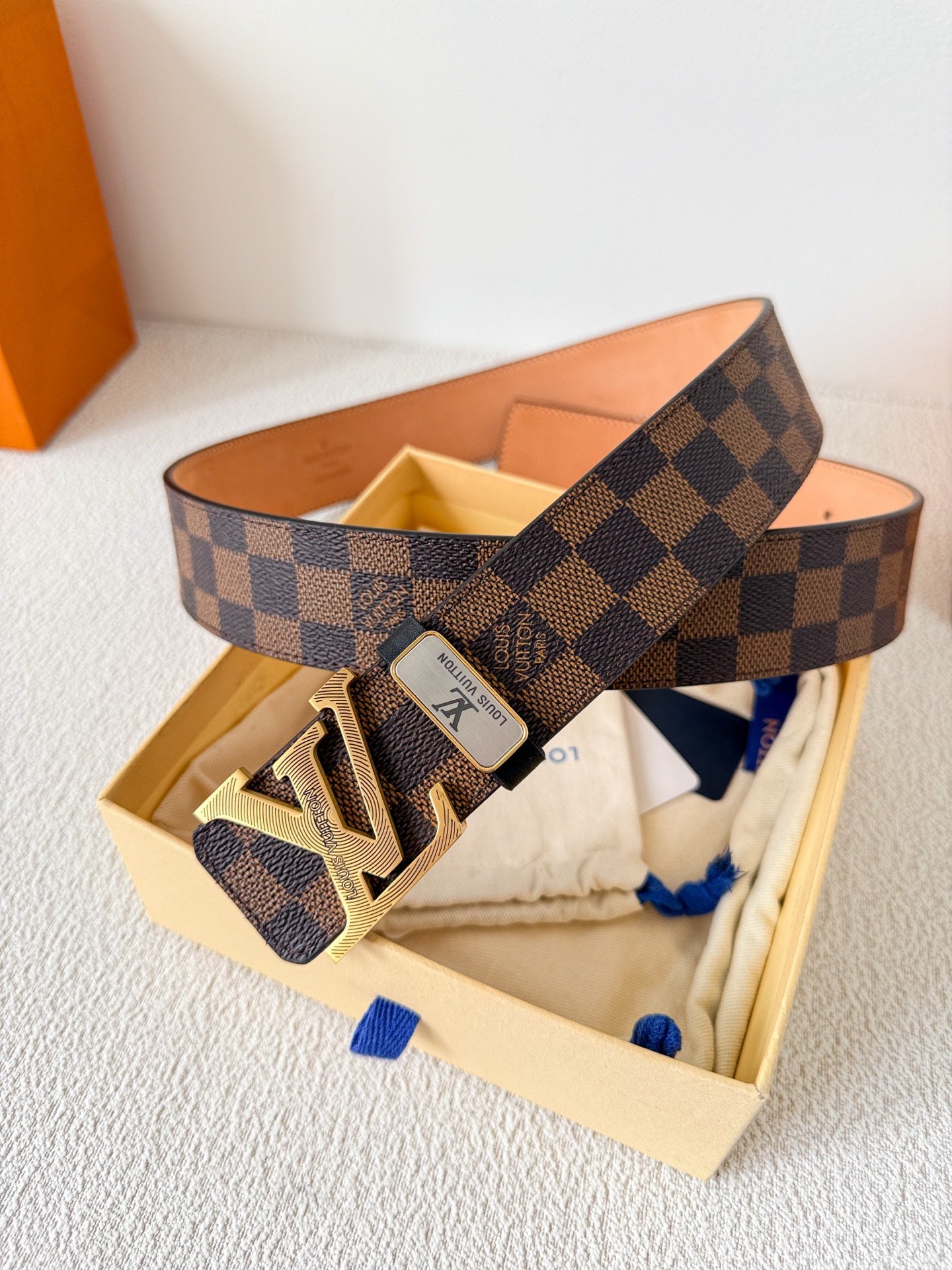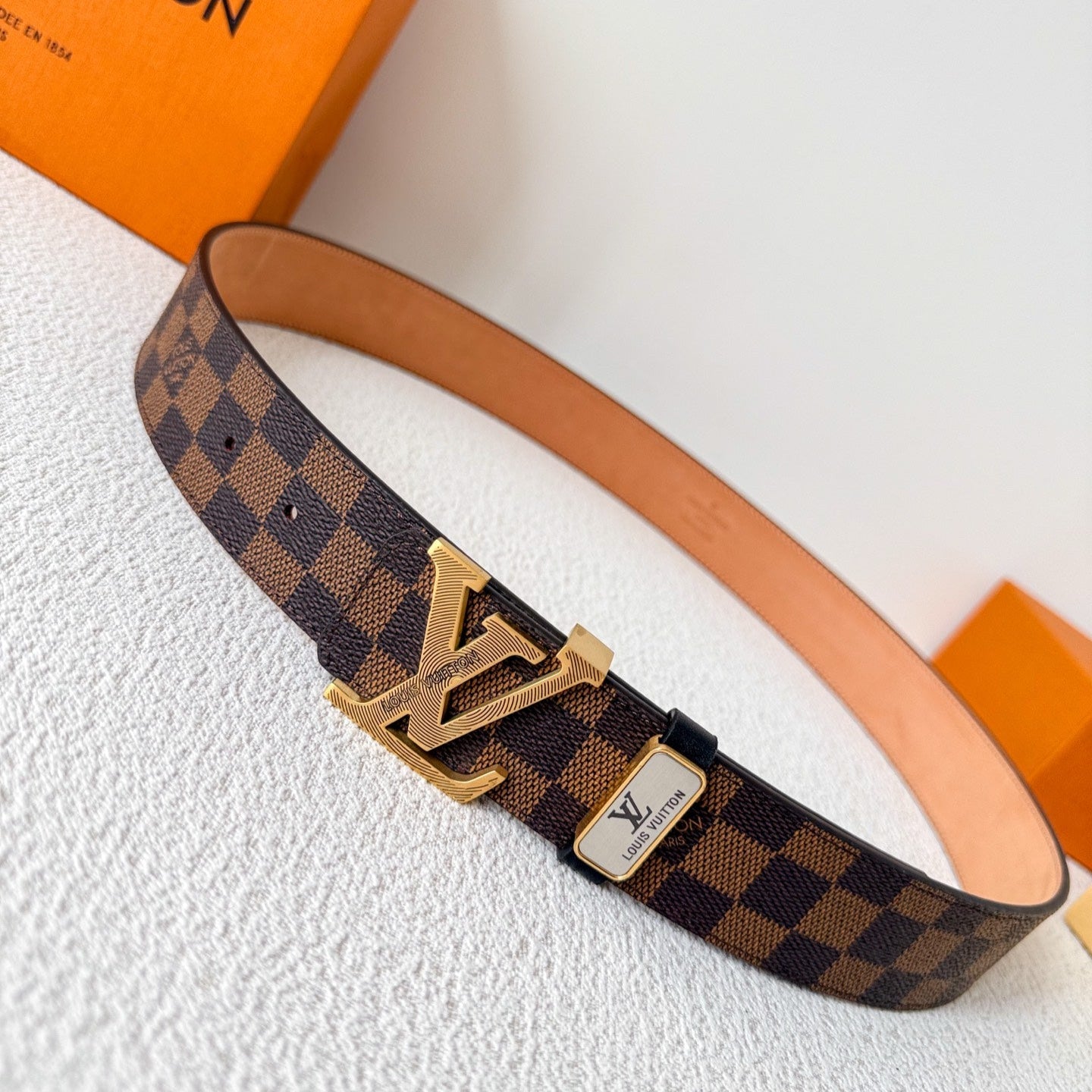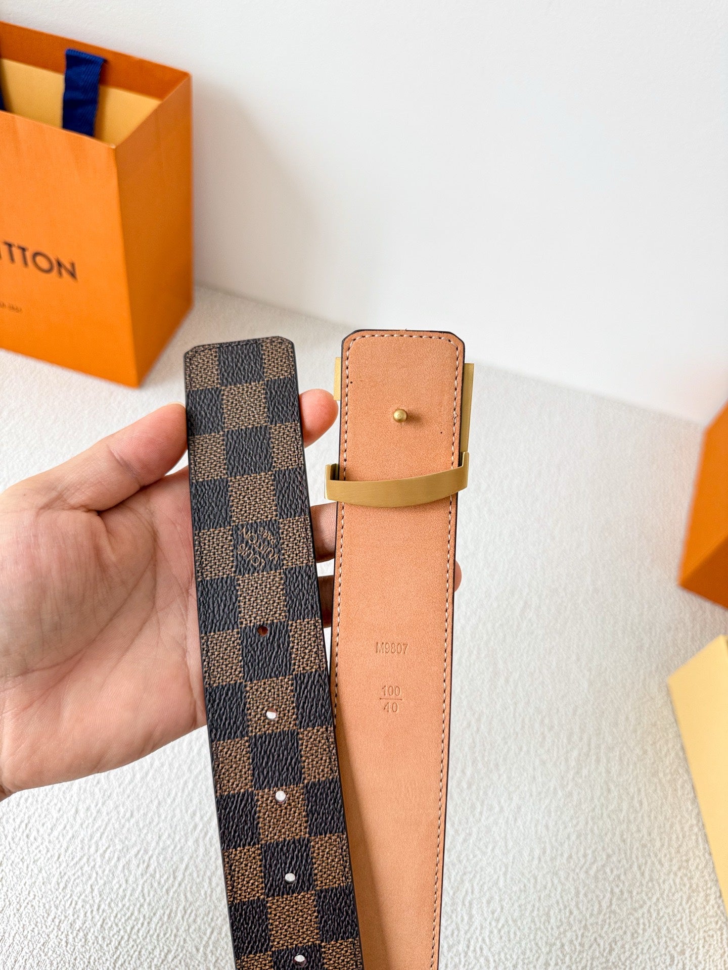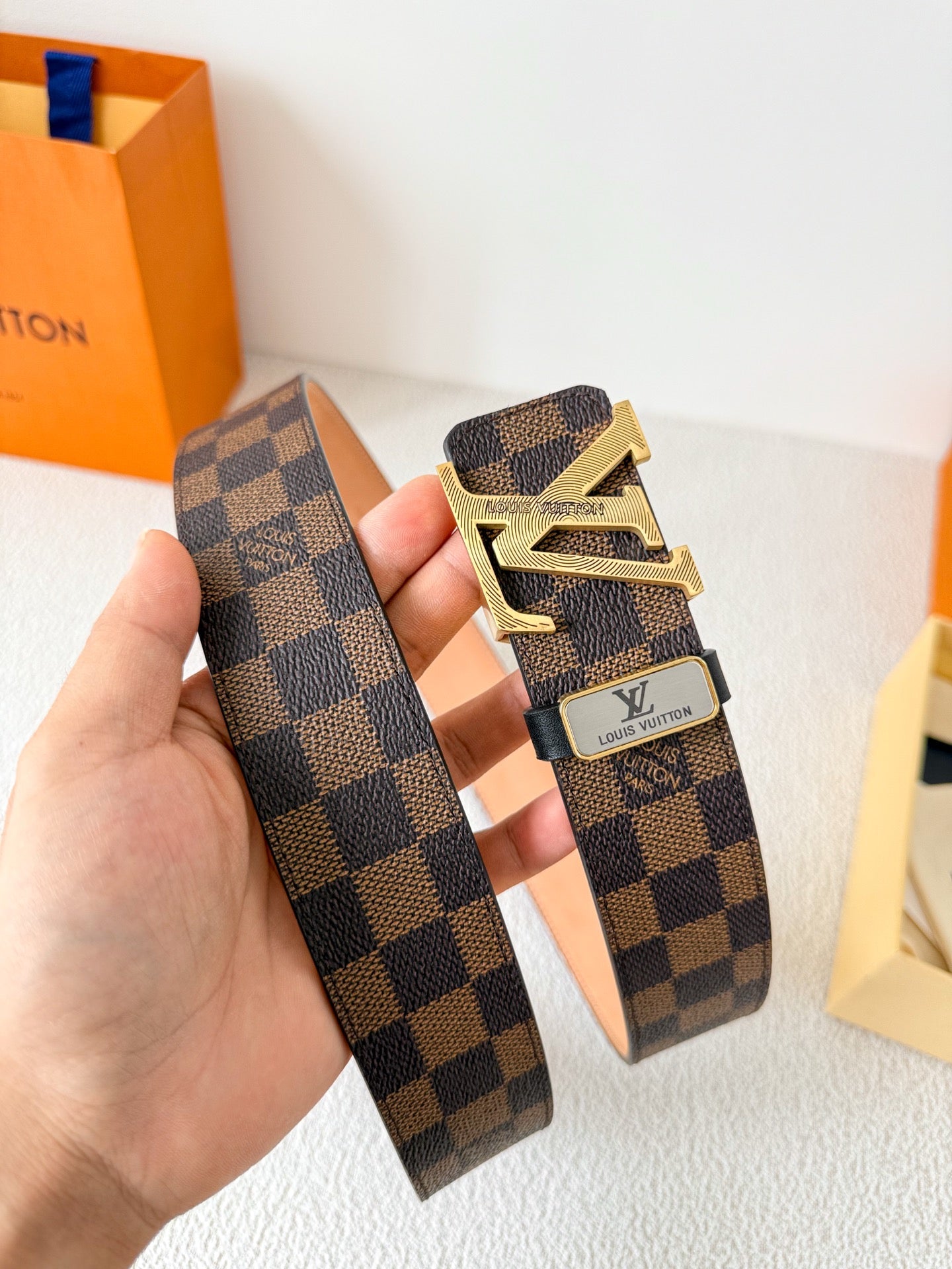 BELT SQUARE BUCKLE 38MM REVERSIBLE IN BLACK AND BROWN CALFSKIN GOLD PLATED BUCKLE