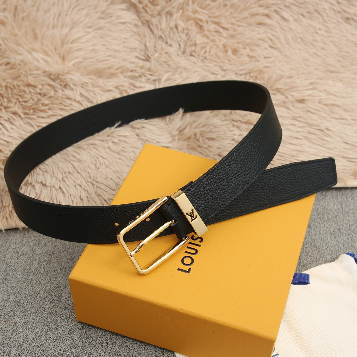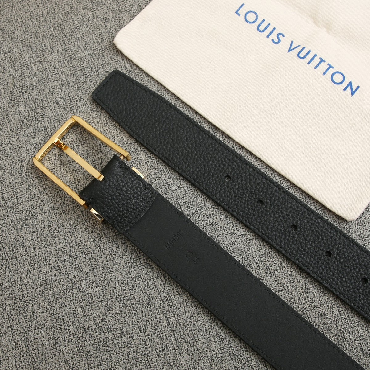 BELT VENDOME 35CM IN BLACK SMOOTH CALFSKIN WITH GOLD BUCKLE EMBOSSED LOGO